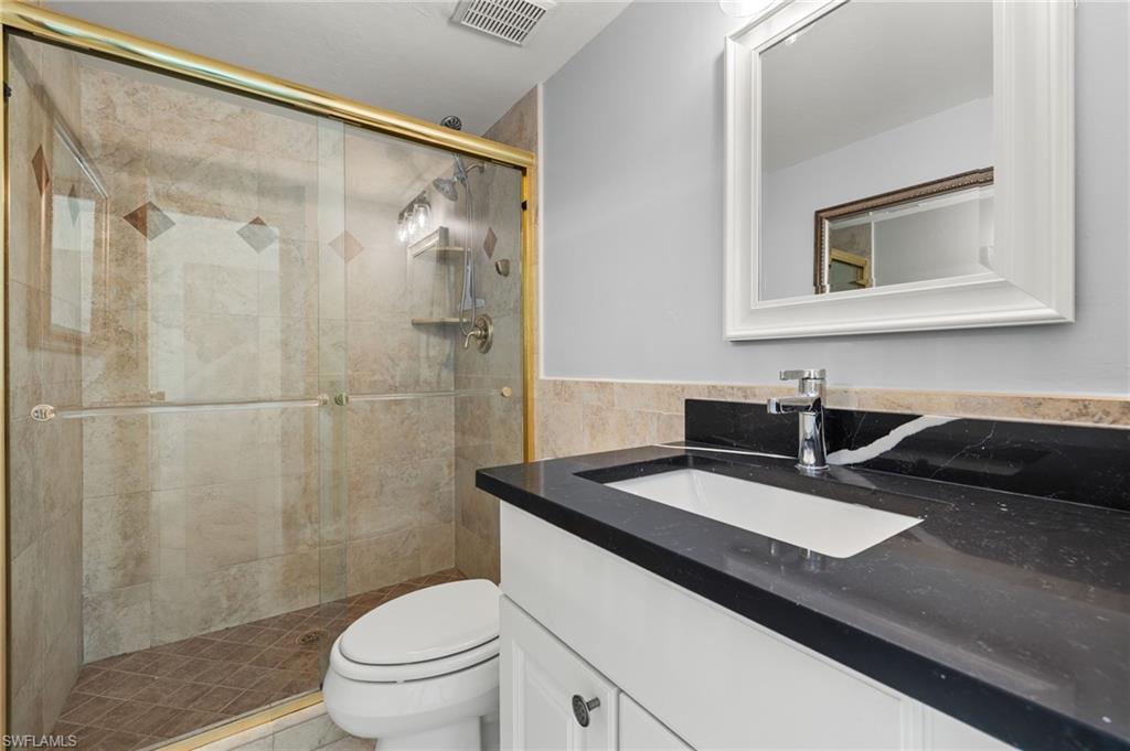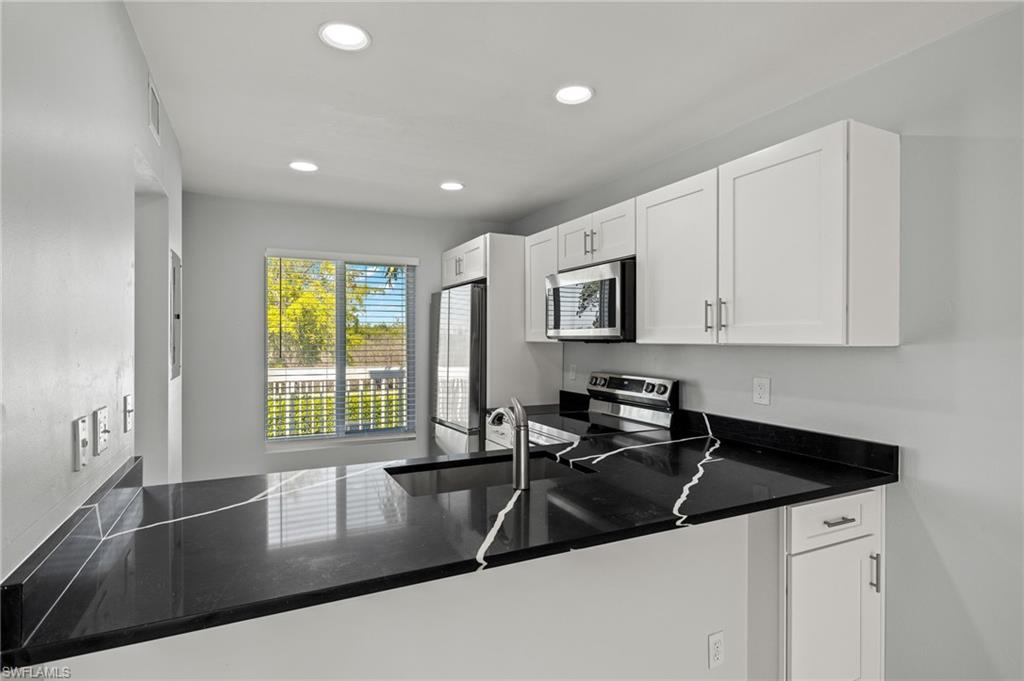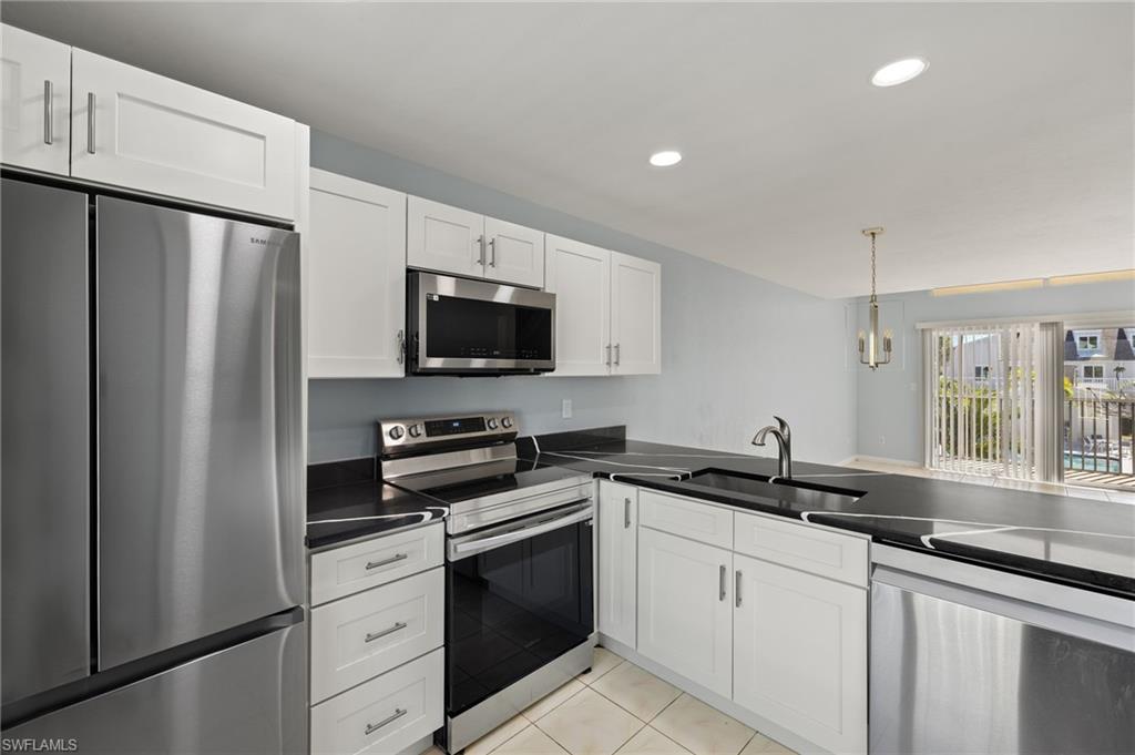 Discover the ultimate island lifestyle in this stunning two-story condo located in the tranquil Estuary of Marco community. This home boasts hurricane impact resistant windows, 3 bedrooms and 2.5 bathrooms; the master suite and second bedroom are conveniently located on the ground floor, while the third bedroom is privately situated upstairs, complete with two closets and a bathroom. The impressive volume ceilings and spacious living area create an open layout perfect for entertaining. The gorgeously remodeled kitchen features granite countertops, a breakfast bar, shaker-style cabinetry, and updated stainless steel appliances (2024). Unwind on the lanai with views of the community pool and cabana. A prime location nestled alongside scenic bay and mangroves, you're just minutes away from all the fantastic attractions that Marco Island has to offer. Don’t miss this opportunity to claim your slice of paradise, where every day feels like a vacation! Ready to move in.