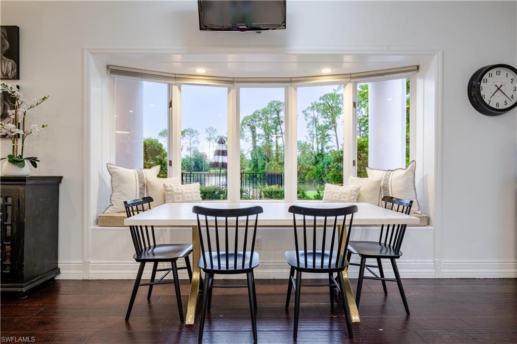 Welcome to an extraordinary residence...a masterfully renovated Classic House infused with modern elegance and Florida charm. Ideally positioned just minutes from the vibrant dining, shopping, and entertainment of North Naples, this home offers unrivaled convenience and sophistication. From its majestic facade, the expansive front porch and balcony provide seamless outdoor living space, matching the rear structures that overlook exquisite views of the pool, the lake, and a lush golf course. The interior boasts a sophisticated foyer with a dramatic staircase and mezzanine, setting the stage for effortless entertaining alongside an exquisitely decorated bar, a chic living room, and a luxurious yet welcoming dining room. Gourmet chefs will delight in the no-expense-spared kitchen flaunting high-end features such as B&B Custom Cabinetry, dual islands, a farm sink, White Carrara marble countertops, a Thermador range, Vent A Hood range hood, a Sub Zero integrated refrigerator, plus two under-counter refrigerator drawers and a beverage center, while preserving stunning original elements. Elevate to the master suite spanning 1,300 sq ft, where a reimagined master bath and a coveted closet await behind elegantly framed French doors that open to the front and rear balconies for panoramic vistas. On the third floor, guest quarters promise privacy and spacious accommodations. Experience timeless elegance and modern living in a location that offers everything at your doorstep. Indulge in this remarkable listing today!