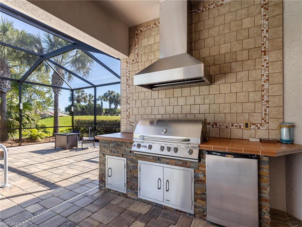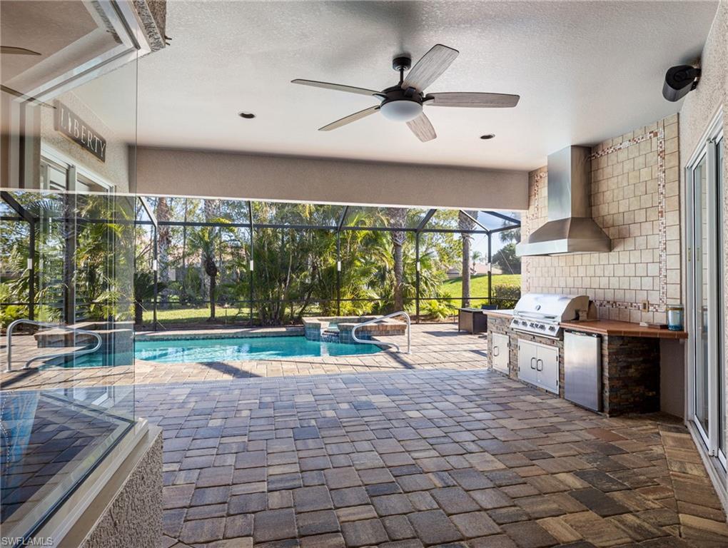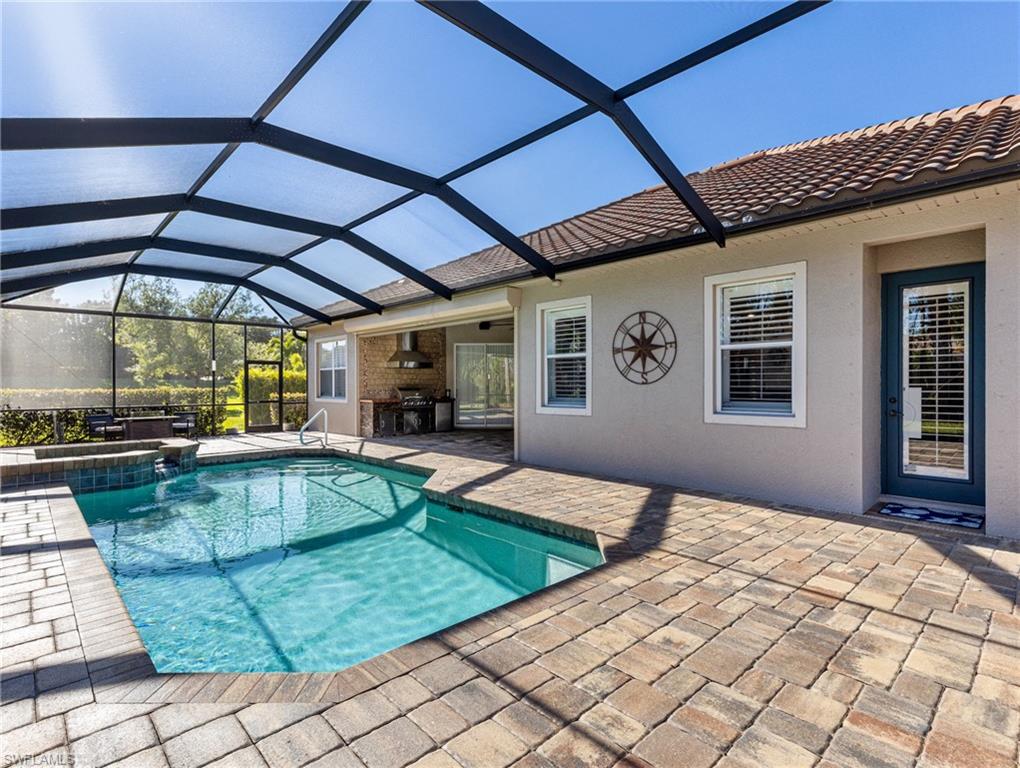 This immaculately kept Sawgrass model in the Estates section of Bella Terra sits on a premium homesite, on an exclusive cul-de-sac street. With nearly 3,000 square feet, this impressive layout features custom upgrades and stylish finishes throughout including Bamboo flooring, new kitchen appliances and wine fridge, plantation shutters, newer paint inside and out, upgraded landscaping and so much more. The outdoor kitchen is great for entertaining under the large, under truss covered area. You'll also appreciate having custom lanai lighting, an oversized pavered pool deck overlooking a sparkling pool, spa and and private greenspace backdrop. There are electric roll-down hurricane shutters on the lanai, also features an Aqua Link system along with a newer pool pump and heater adding to the outdoor enjoyment. Don't let this pristine Estate home get away! Bella Terra is nestled on 999 acres with half the community dedicated to lakes/preserves and home to a variety of native Florida wildlife. Features a Resort-style Clubhouse, 24 hour fitness center, activities for all ages, resort-style pool and spa, shaded children's play area, tennis courts, pickle ball, bocce ball, sand volleyball, multi-use sports fields, tranquil butterfly garden, excercise trails and more. Call Today!!