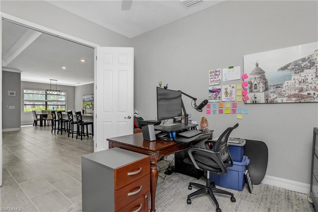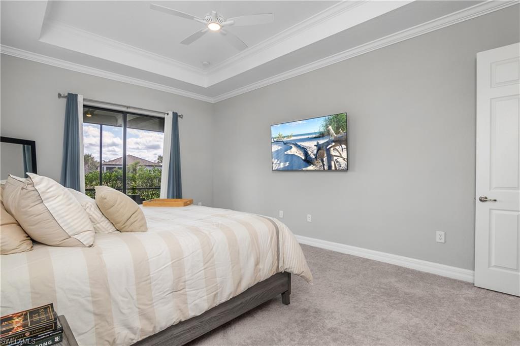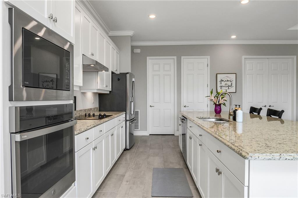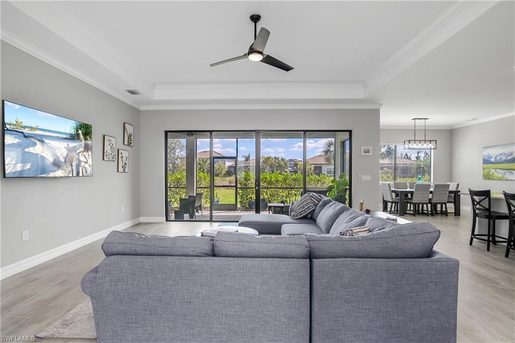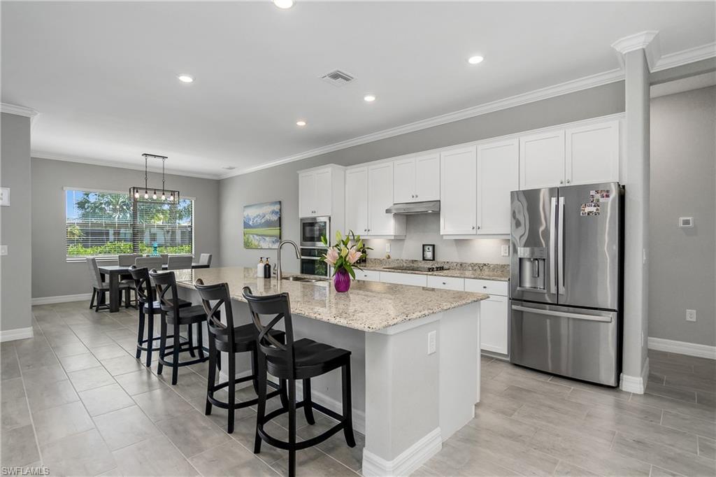 Welcome to this stunning Sunset Estate home, offering 3 bedrooms + den, 3 bathrooms, and 2,650 sqft of thoughtfully designed living space. With an open floor plan, luxurious upgrades, and elegant finishes throughout, this home is built for both entertaining and comfort. Step through the formal foyer and into the expansive great room, where soaring ceilings and an abundance of natural light create an inviting atmosphere. Beautiful tile flooring extends through all the main living areas, adding a touch of sophistication and easy maintenance. The gourmet kitchen is a chef’s dream, featuring a large island, built-in wall oven, cooktop with hood, pantry, and premium appliances. Just off the kitchen, the formal dining area provides a warm and welcoming space for meals while offering picturesque views of the backyard. Designed for ultimate privacy, the owner’s suite retreat is a true sanctuary. This elegant space boasts a tray ceiling, two walk-in closets, dual sinks, a spacious standing shower, and private access to the lanai. On the opposite side of the home, two generously sized guest bedrooms each enjoy their own full bath and ample storage, making them perfect for family or visitors. A cozy den provides a versatile space, ideal for a home office, library, or sitting room. Furniture is also negotiable for convivence. Step outside to the sprawling lanai, where you can unwind in your own private outdoor retreat. Whether enjoying morning coffee, dining al fresco, or simply soaking in the peaceful surroundings, this outdoor space enhances the home’s effortless indoor-outdoor lifestyle. Living in The Place at Corkscrew means experiencing an unparalleled resort-style lifestyle. Residents enjoy access to a resort-style pool complete with a thrilling 100-foot waterslide, an expansive spa, and a splash pad for kids. Socializing is easy with options like the Barefoot Bar & Grill, the Bourbon Bar, and a poolside martini bar, as well as a cozy firepit for evenings under the stars. For active residents, the state-of the-art fitness center includes a movement studio, and there are tennis, pickleball, and basketball courts, along with a sugar-sand volleyball court. A playground for children and a dog park for furry friends ensure fun for all ages.