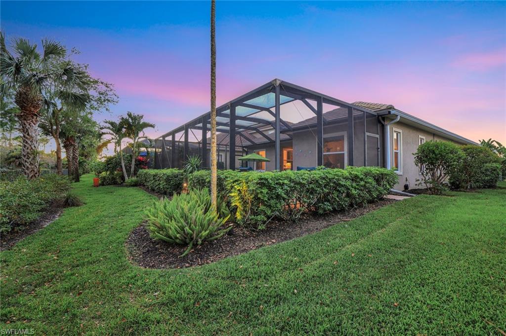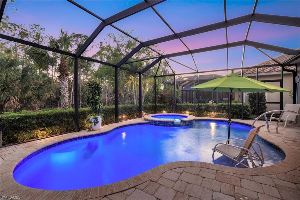 Beautiful one owner home perfectly situated in the sought-after gated community of Canopy. Freshly painted 3 bedroom plus den, 2 1/2 bath with private preserve view. Spacious kitchen with island, stainless appliances, quartz countertops, tile backsplash, under cabinet lighting, walk-in pantry. Primary bedroom with ensuite bathroom has double sinks, oversized shower. Tile floors throughout; tray ceilings. Updates include impact doors & windows (2024), HVAC (2022), garage door opener (2024). Salt system heated pool with sun shelf and spa, easily controlled using your cell. Extended screened lanai offers plenty of space for entertaining. Laundry room with sink. Two car garage with pull down stairs; great for extra storage!