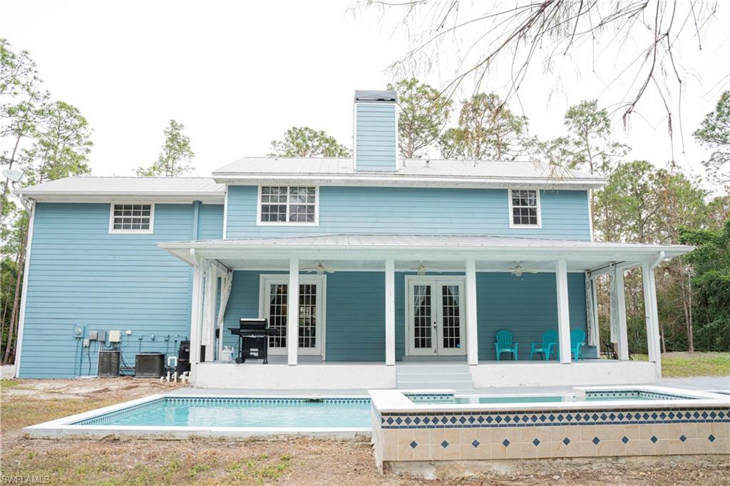 GREAT OPPORTUNITY with an assumable VA loan 2.875 interest rate so do not wait! Estate Pool home nestled among towering pines on 1.25 Acres, Dual Owner’s Suites and Stunning Upgrades! Step into the perfect blend of modern elegance and country charm with this sprawling estate home! This stunning 3,536 sq. ft. custom-built estate is more than just a house—it’s a lifestyle. Brand new 40x16 lap pool, 11x6 giant spa with swim lane to sun deck. Bocce ball court and horse shoes with a customized chicken coop and goat play pen. This home boasts 4 bedrooms and a spacious recreation room/den, 3.5 baths, and a 2-car attached garage, this pool home is a gem is designed for those who crave space, charm, and contemporary upgrades. Fully fenced land with a gated entrance, this stunning property offers privacy, space, and endless possibilities. Decorative shiplap wall coverings add timeless appeal, while large porches invite you to sit back and enjoy the beauty of country living. Inside, every space is oversized and thoughtfully designed. The home boasts four bedrooms, including two owner’s suites, ideal for multi-generational living or hosting long-term guests. The primary owner’s suite is a true retreat, featuring a modern farm-style luxury bath with a jetted soaking tub for ultimate relaxation. With three full baths and a half bath, convenience is at your fingertips. The loft area provides the perfect space for entertaining or guest overflow, while the large family dining area is designed for gathering and making memories. A cozy wood burning fireplace adds warmth and charm, making this home as inviting as it is spacious. The gourmet kitchen boasts a farmhouse sink, double oven, and stainless steel appliances. The outdoor space is equally impressive, featuring a sparkling 2023 built pool, a private oasis for relaxing and entertaining. There’s also plenty of room for horses, goats, and other animals, making this a dream property for those who love the country lifestyle with the beaches and entertaining amenities less than five minutes from this hidden gem. A massive 20' x 36' detached 720sq.ft. workshop/mancave is fully equipped with electricity and offers the ultimate space for tools, toys, with two overhead garage doors. With a perfect balance of modern amenities, farmhouse character, and wide-open spaces, this estate is truly one of a kind.With no HOA or restrictions, there's ample space to park your boat, RV, or other recreational vehicles. Best of all, this home sits in flood zone X, meaning no flood insurance is required. Ideally located just minutes from Bonita Springs Beach, top-rated private and public schools, award-winning restaurants, shopping, golf courses, theaters, and RSW Airport, this one-of-a-kind estate offers the perfect blend of privacy, convenience, and modern living. Don’t miss your chance to make this incredible home yours!