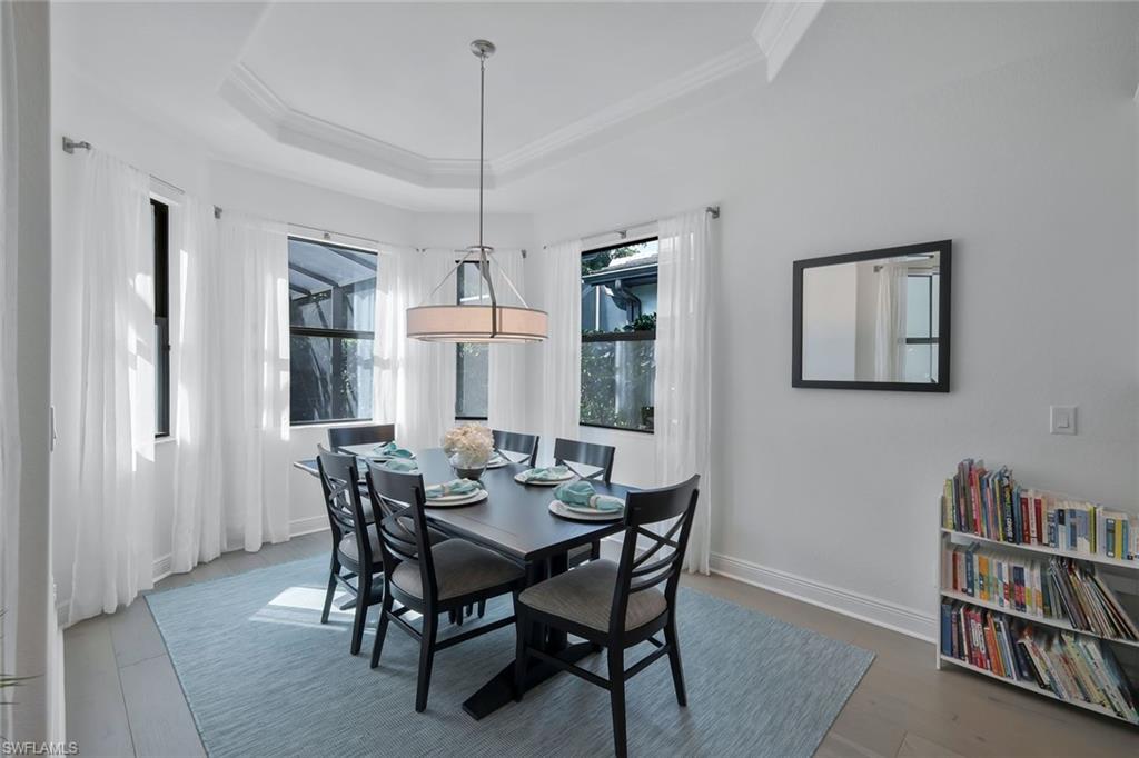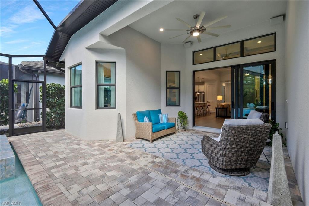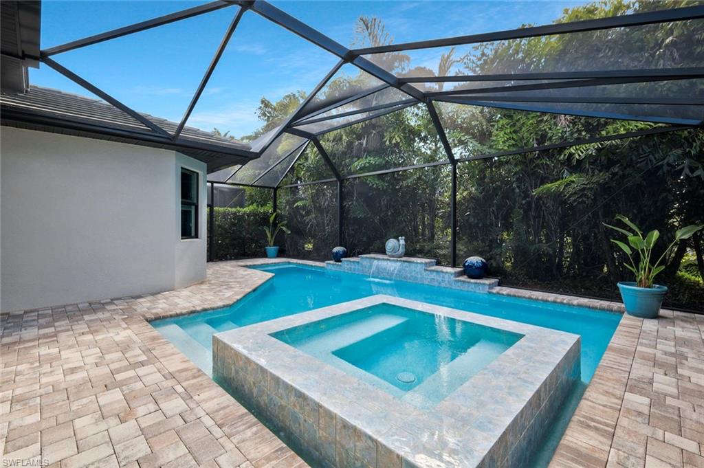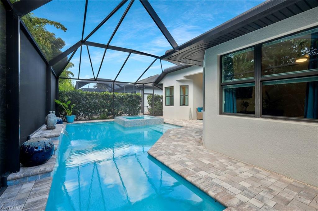 This stunning 3 bedroom plus den Serino model home built by Toll Brothers awaits in the prime location of North Naples. Conveniently located east of I-75 and Immokalee Rd. Palazzo at Naples is a gated boutique community with only 85 homes. This home features a columned entry ceiling with matching beams in the extended great room and hardwood floors throughout. The gourmet kitchen is a chef's dream with 42" cabinets topped with crown molding. It boasts an oversized island with cabinets on both sides, making for extra storage. A gorgeous farm style sink with a high quality faucet perfect for entertaining. Stainless steel appliances including a 36" gas cook top. The primary bath is a sanctuary of relaxation with a free standing tub, massive walk through shower, dual shower heads and exquisite tile. Enjoy the private outdoor area finished with a saltwater pool and spa. This home has so many great features including a drop zone in the laundry room and hurricane doors and windows throughout to name a few. Membership opportunities are available at neighboring Quail Creek and Longshore Lake. This natural gas community also features NO CDD ,low HOA fees and not in a flood zone ( Flood Zone X) adding to its appeal. Located just 6 miles to pristine beaches, 20 minutes to RSW airport, downtown 5th Ave's world class dining and shopping are just 25 minutes away. Don't miss the chance to call this one home!