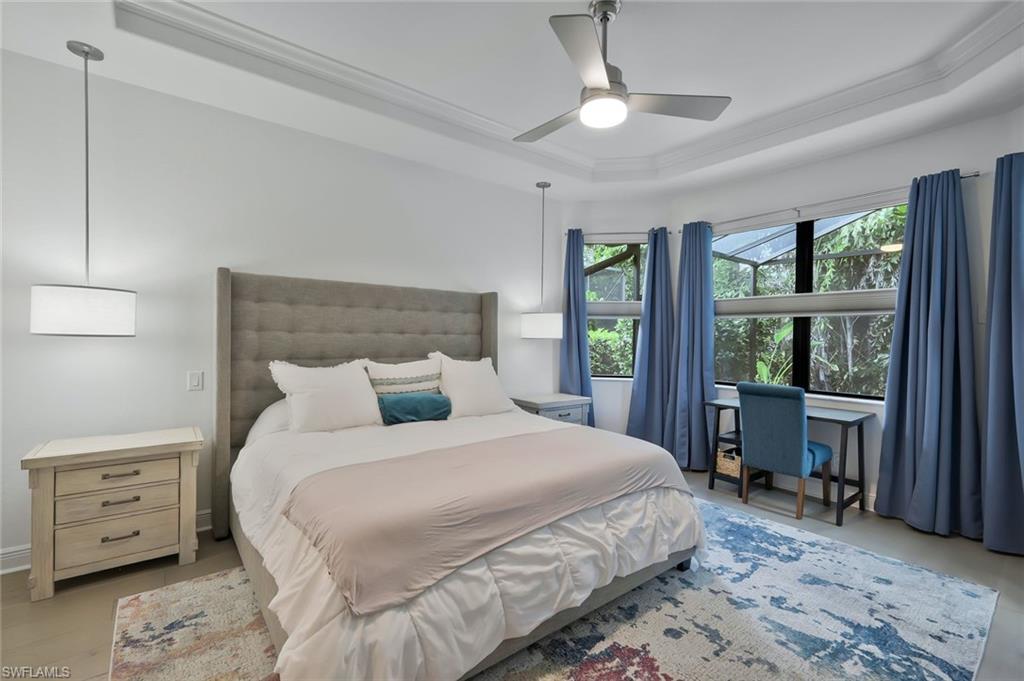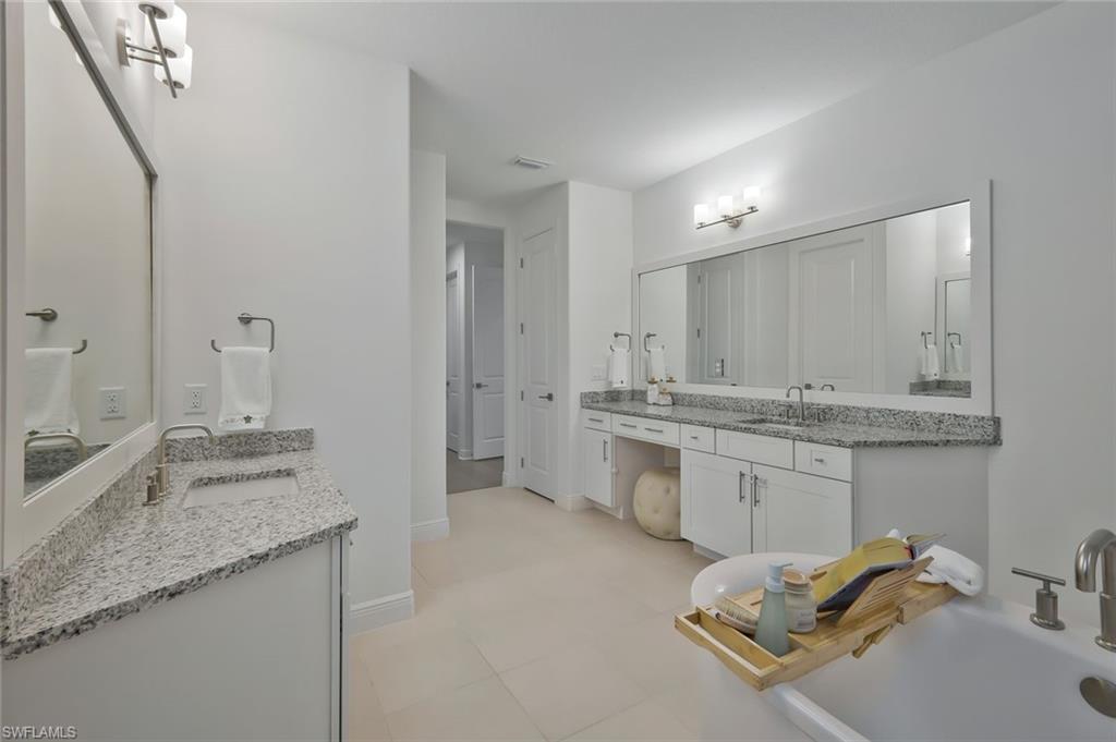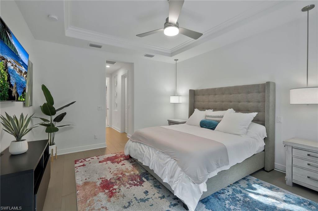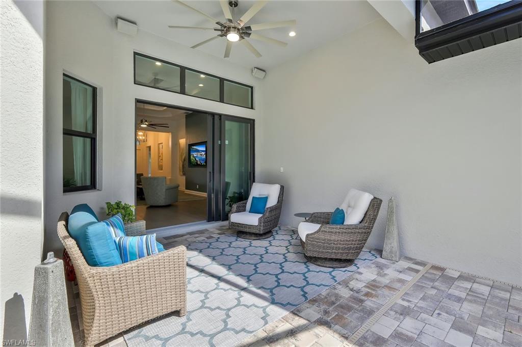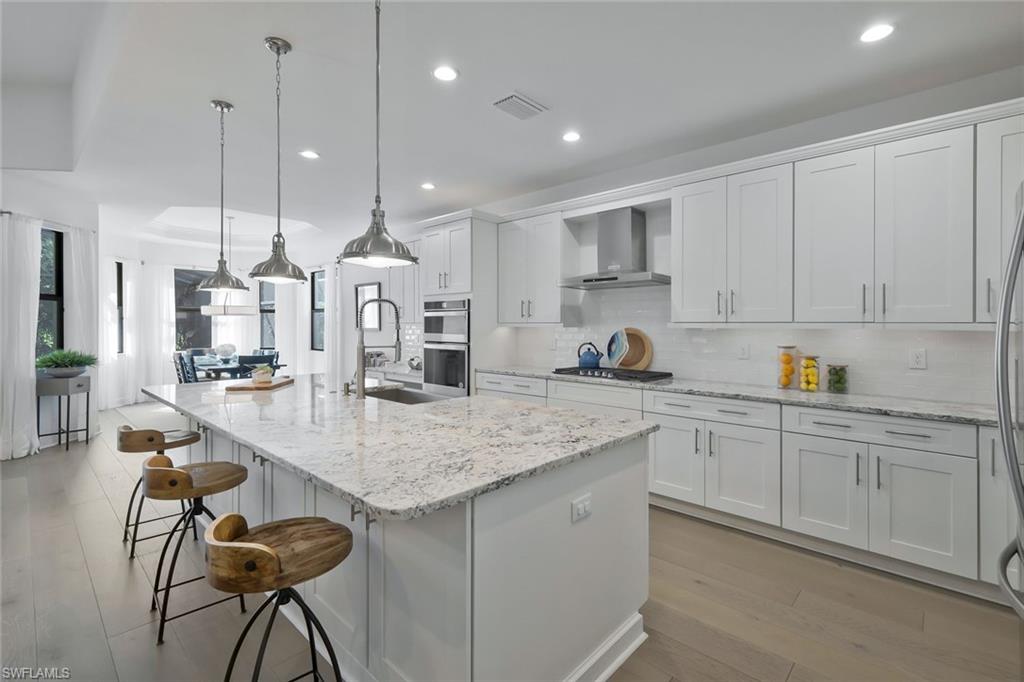 This stunning 3 bedroom plus den Serino model home built by Toll Brothers awaits in the prime location of North Naples. Conveniently located east of I-75 and Immokalee Rd. Palazzo at Naples is a gated boutique community with only 85 homes. This home features a columned entry ceiling with matching beams in the extended great room and hardwood floors throughout. The gourmet kitchen is a chef's dream with 42" cabinets topped with crown molding. It boasts an oversized island with cabinets on both sides, making for extra storage. A gorgeous farm style sink with a high quality faucet perfect for entertaining. Stainless steel appliances including a 36" gas cook top. The primary bath is a sanctuary of relaxation with a free standing tub, massive walk through shower, dual shower heads and exquisite tile. Enjoy the private outdoor area finished with a saltwater pool and spa. This home has so many great features including a drop zone in the laundry room and hurricane doors and windows throughout to name a few. Membership opportunities are available at neighboring Quail Creek and Longshore Lake. This natural gas community also features NO CDD ,low HOA fees and not in a flood zone ( Flood Zone X) adding to its appeal. Located just 6 miles to pristine beaches, 20 minutes to RSW airport, downtown 5th Ave's world class dining and shopping are just 25 minutes away. Don't miss the chance to call this one home!