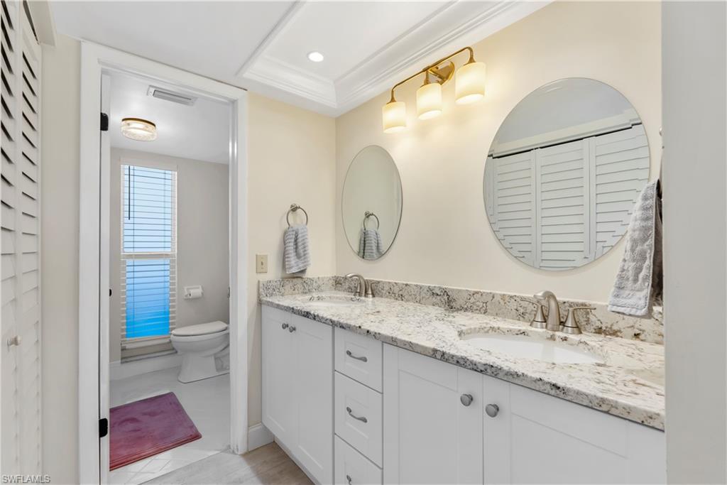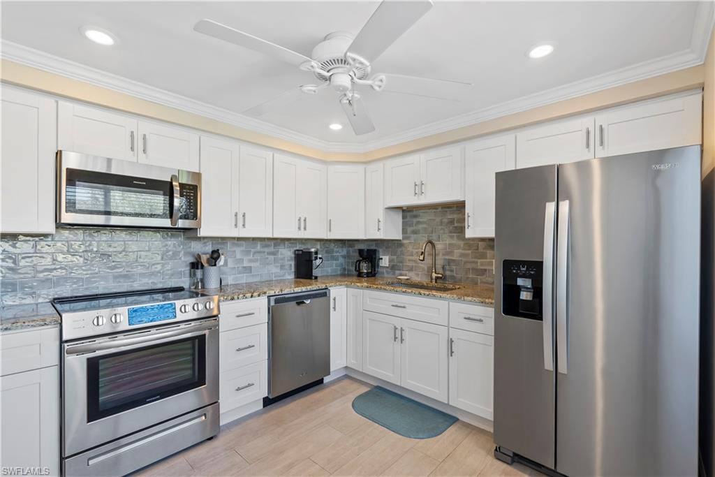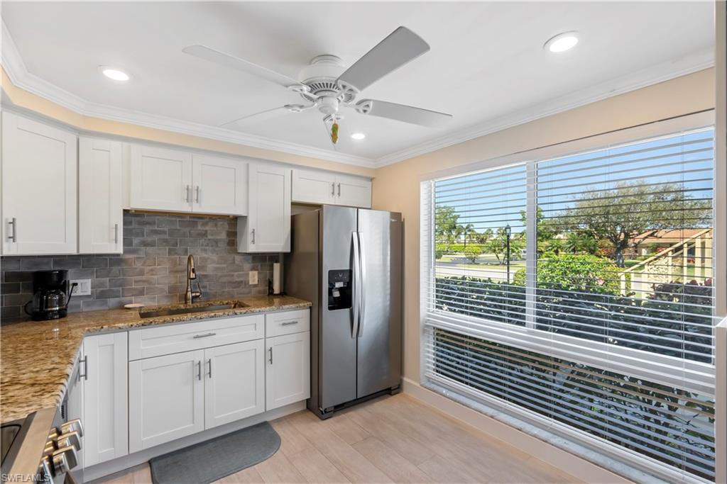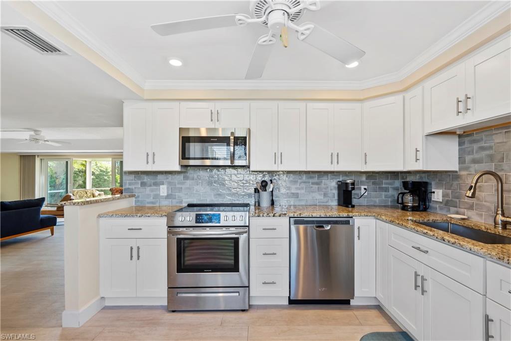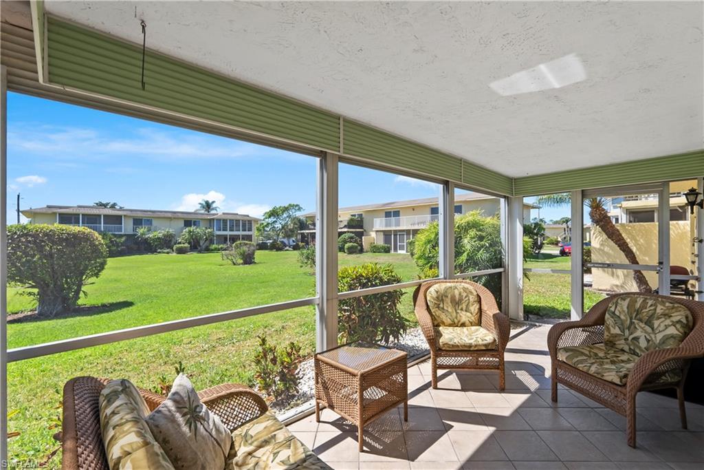 Welcome to your new home in paradise! Beautifully updated condo, being sold turn-key, located in Naples best kept secret community of The Glades Golf and Country Club! Located just 3 miles from downtown Naples, with it's world class shopping, restaurants and sugar sand beaches. This 2 bedroom, 2 bath condo has been tastefully updated with a new kitchen, baths, impact windows and doors, as well as porcelain wood look tile floors throughout! The beautiful kitchen features stainless steel appliances, white cabinetry, granite countertops, subway tile backsplash, and a large pantry closet. It is also filled with light from the large floor to ceiling window. The split bedrooms are both nicely sized and include on-suite full baths. The primary bedroom features sliders to a back patio. A large lanai overlooks a private and peaceful courtyard. A large outside storage closet is a great place to keep your beach chairs and umbrella. The Glades offers 36 holes of bundled golf with a par 70 and executive par 55 course. These courses are recognized as two of the best in all of Naples! In addition to golf, the Glades has 12 new lighted pickleball courts with an additional 3 instruction courts, 6 newly resurfaced hard-tru tennis courts, a resort style pool and with an additional 8 community pools, shuffle board, bocce, billiards, library, art studio, car wash area, and a full social calendar with numerous card groups, mahjong, bingo, trivia, bunco, Thirsty Thursdays with live music, dinner dances, arts and craft and group fitness classes. Condo fee includes unlimited golf greens fees for the owner, use of all amenities, cable TV/high speed wifi, water, sewer, trash/recycling, lawn maintenance and irrigation. If you are looking for your own little slice of paradise, in a very active, social and friendly community, this one is for you!