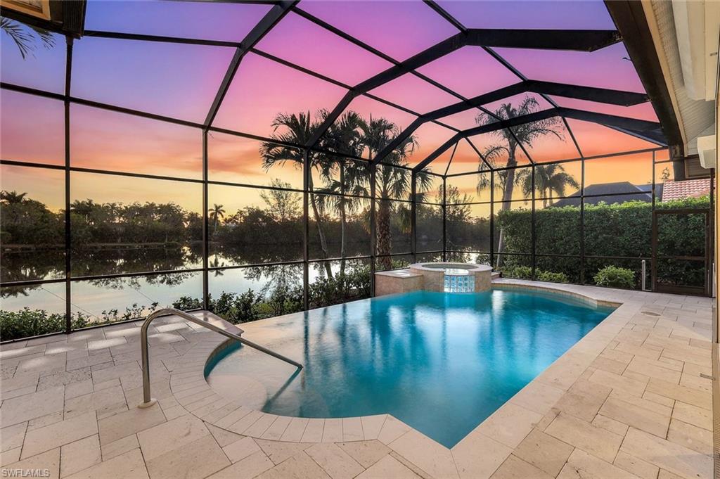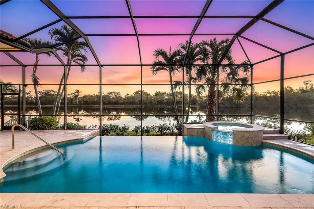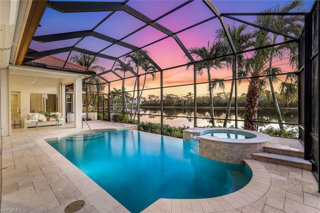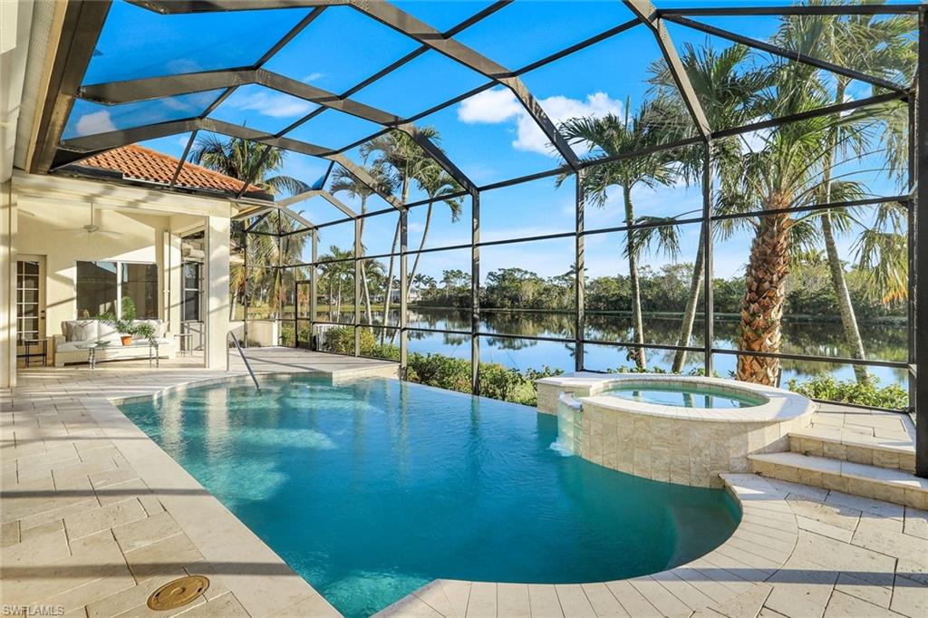 Welcome Home, It's Better by the Bay! Avoid the long wait list and secure your Windstar on Naples Bay Full Golf Membership shortly after closing. This updated and upgraded estate home is nestled in the prestigious Harrington Sound neighborhood of Windstar, offering a perfect blend of elegance and comfort. From the moment you arrive at the majestic driveway, you'll feel the warmth of "Welcome Home." This residence is thoughtfully designed for both daily living and entertaining, featuring expansive indoor and outdoor spaces. The home is anchored by one of the most spectacular views in all of Windstar: a custom infinity edge pool that cascades beautifully into a serene lake, bordered by a preserve area that will remain untouched. With soaring ceilings, exquisite hickory floors, and custom millwork, this home brims with coastal modern charm. The open floor plan seamlessly integrates breathtaking lake and nature views throughout. The south end of the home boasts a magnificent primary suite that opens to the custom pool and spa with stunning vistas. This suite includes a spacious sitting area, dual walk-in closets with custom cabinetry, and a luxurious primary bath. A well-appointed den and a half bath are also located on the south end. The formal dining and living rooms offer abundant space for large gatherings and celebrations. At the heart of the home is the great room, which features an updated kitchen with designer appliances, a wet bar with a wine cooler, a morning room, an informal dining area, and a cozy family room with a gas fireplace. On the north end, you'll find two inviting guest bedrooms, each with oversized closets and ensuite baths, one with direct lake views. The outdoor living areas provide over 1,500 square feet of enjoyment, including 500 square feet under roof for alfresco dining and lounging, nearly 950 square feet of screened lanai/pool area, and a 250 square foot lakeside 'tranquility' patio. This home comes with an array of special features, including a propane tank that powers the convenient gas fireplace and whole-house generator, an oversized garage, and professional landscaping. As a Windstar resident take advantage of the Keewaydin Queen’s nautical adventures (Sunset Cruises, Special Events and Private Charters) and enjoy the private beach club at Keewaydin Island. For additional “It’s Better by The Bay” experiences, you can join The Southpointe Yacht Club or The Windstar Club. With this property a Golf Membership can be purchased immediately after closing, allowing the buyer to bypass the estimated 7-year waiting list and become a member on the day of closing (contingent on the Club’s application process). Experience the serene and stylish lifestyle offered by this exquisite estate home in Windstar—your oasis awaits! “Welcome Home - It’s Better by The Bay!”