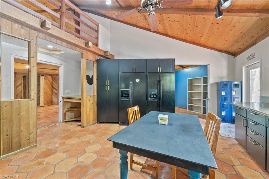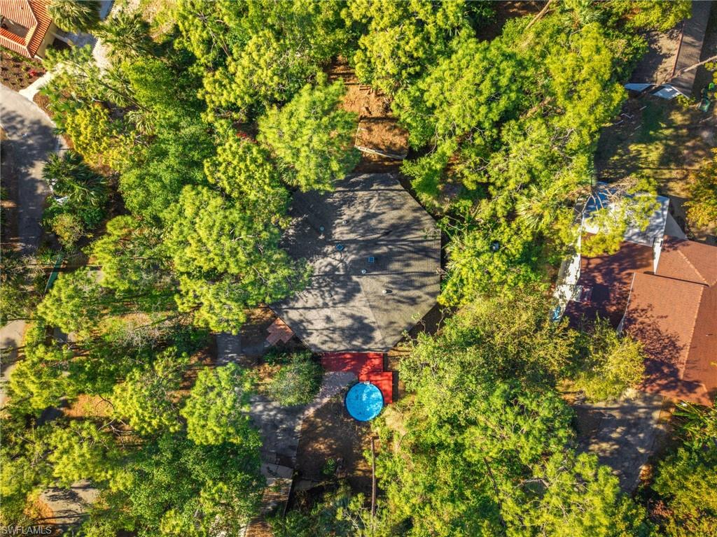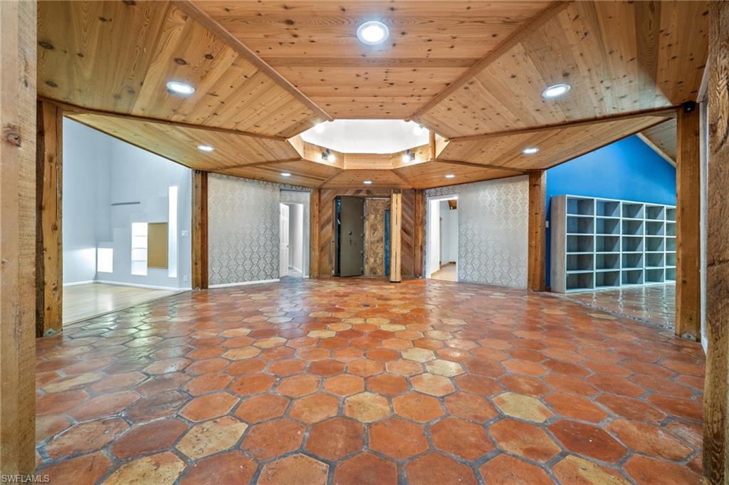 Calling all Artists, Collectors and Visionaries… You found it! Definitely not a boring cookie cutter home. Mid Century Modern meets rustic lodge architecture. Discover the charm of this exceptional Hogan Dwelling, perfectly nestled on a tranquil 2.5 acre wooded lot. This distinctive octagonal home offers endless possibilities with its thoughtful design and harmonious connection to nature. Set back on private lot with circular asphalt drive and constructed with reinforced steel rebar and block, this residence boasts a newer low-pitch roof and hurricane roll-down shutters. Once you step inside, you'll find beautiful cypress and cedar wood throughout, complemented by mexican tile flooring, tongue and groove ceiling with exposed wooden beams and skylights for additional ambiance. Spacious chefs kitchen includes double refrigerators and a butlers bar. Flowing floor plan with large dining area perfect for entertaining and also the central hub of the home. A very unique 250 ft walk-in steel vault/safe room is perfect for displaying art, collectibles or even utilizing it as a media room or theater. A focal tree branch and wood staircase leads to the second-floor loft which offers additional space and living options. Lots of space to add additional bedrooms. Entire home complimented with reverse osmosis water filtration system, tankless hot water heater and newer A/C. Relax on the open wooden deck with above ground pool overlooking the private wooded lot with plenty of room to build or expand. Bonus 24X40 steel outbuilding offering endless options. Perfect for a car collection, boat or other toys. Conveniently located near I-75, excellent schools, shopping and close proximity to The Paradise Sports Complex. *Special Renovation Financing Available!
