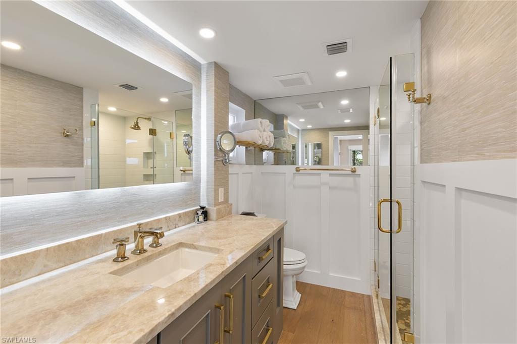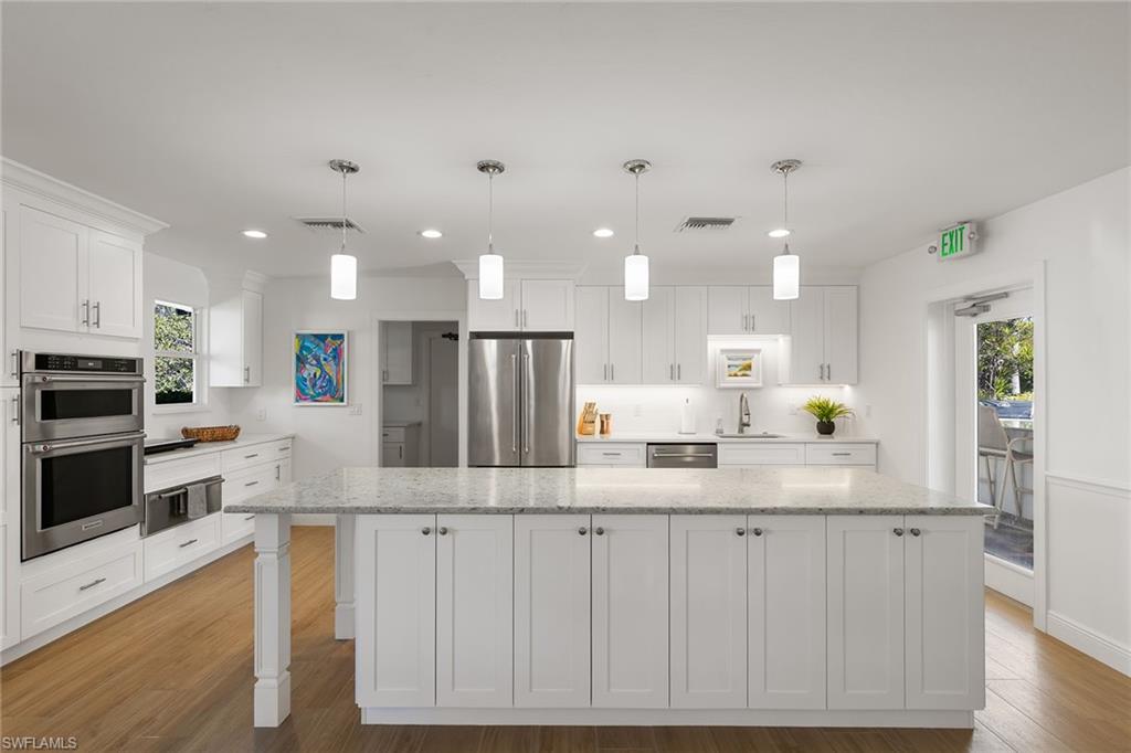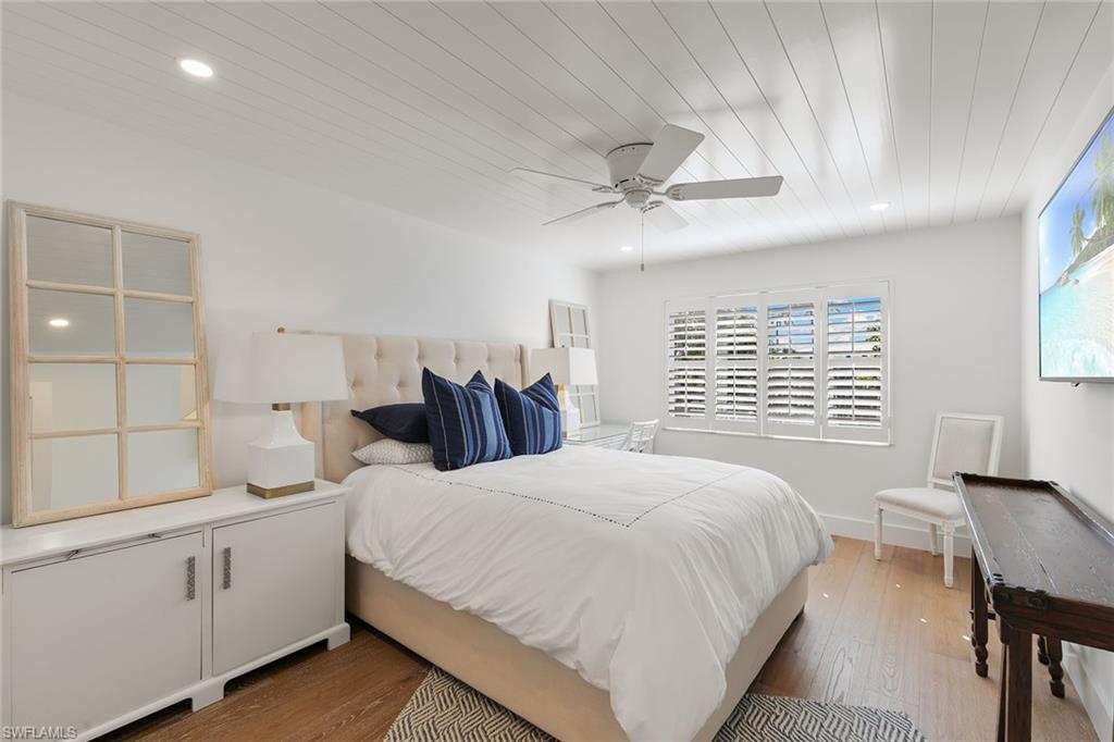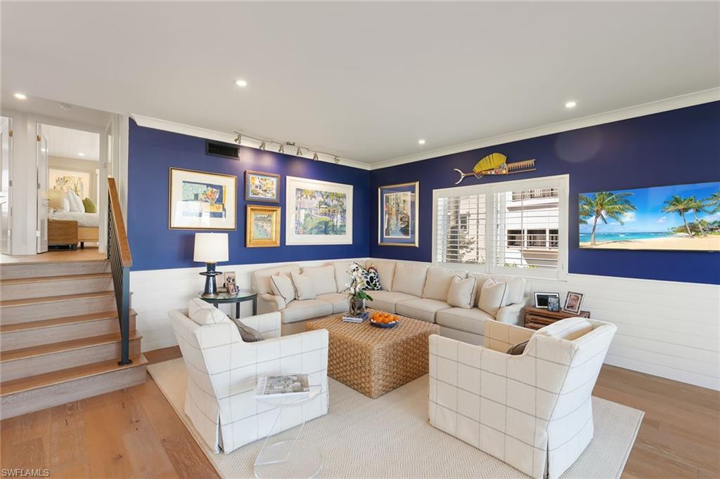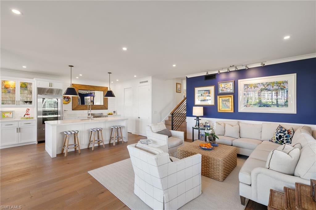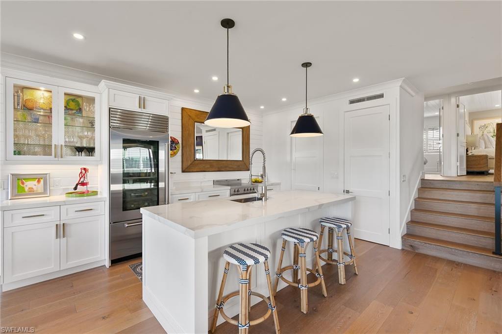 This condominium is south of Doctors Pass and just 60 steps to the beach! The newly renovated two-bedroom, two-bath condominium has an open floor plan, floor-to-ceiling wall of sliding windows, wood floors, tall ceilings and a one-car enclosed garage. The kitchen has a pantry, Sub-Zero refrigerator, dishwasher drawers, wine refrigerator, range and large stainless-steel sink with disposal. Primary bedroom has a king bed, walk-in closet, and two additional closets plus en-suite bath with walk-in shower. The guest room has a queen bed with en-suite guest bath with shower and tub. In-unit laundry makes it a great place to live. Rare opportunity to own two connecting condominiums because 2201 Gulf Shore Blvd. N unit E1 is also for sale. Both are completely remodeled first-floor condominiums with a hotel-style door between the two units that can be locked so you have two 1,500-square-foot two-bedroom, two-bath condominiums or opened up, so you have one 3,000-square-foot condominium with four bedrooms and four baths. Interior of units has never had damage from hurricanes! Remodeled clubhouse, complete with full kitchen, has a beautiful pool with outdoor grilling area, ice machine, plus boat slips for rent. Famous Fifth Ave South is only 2.3 miles away.