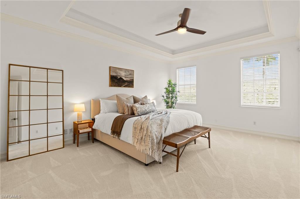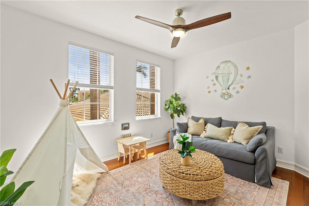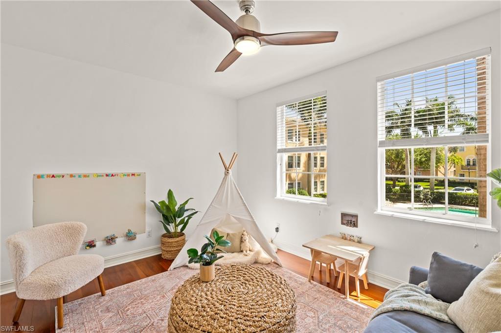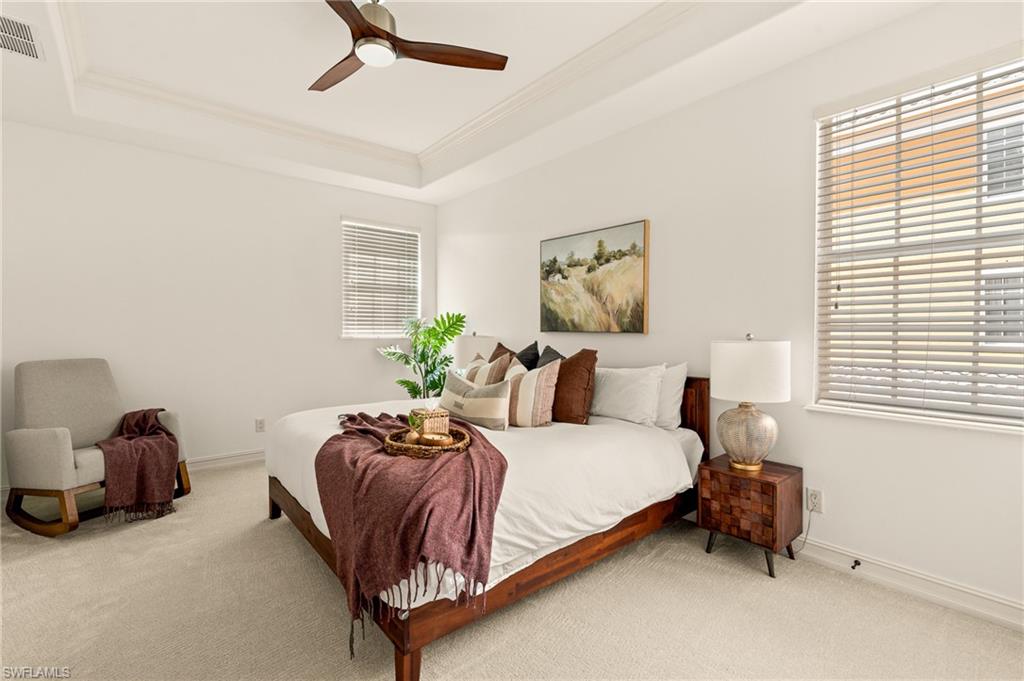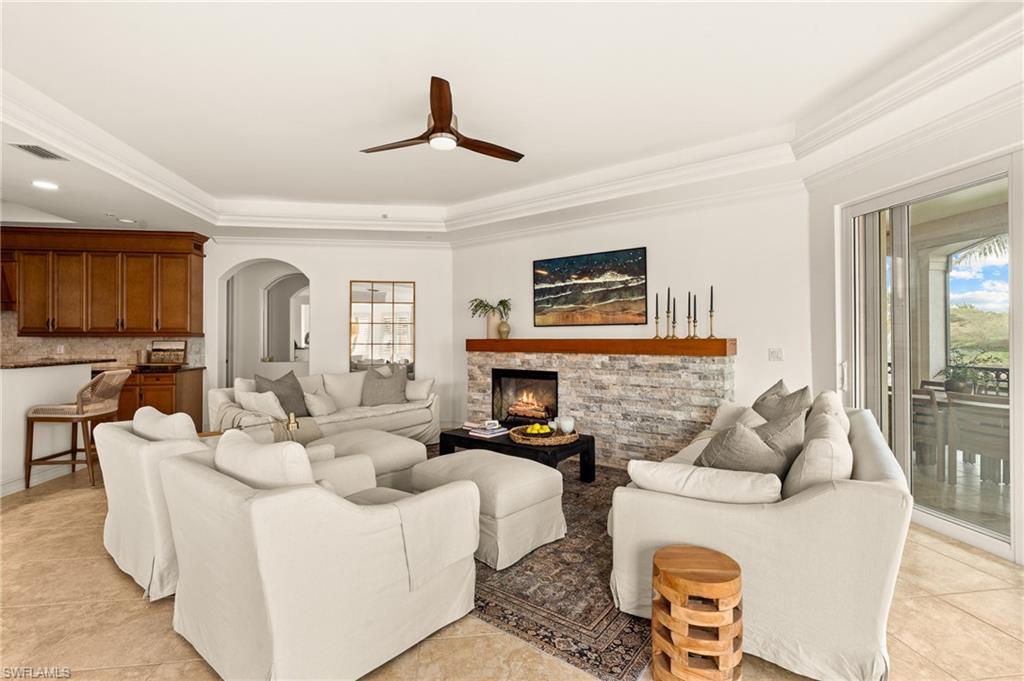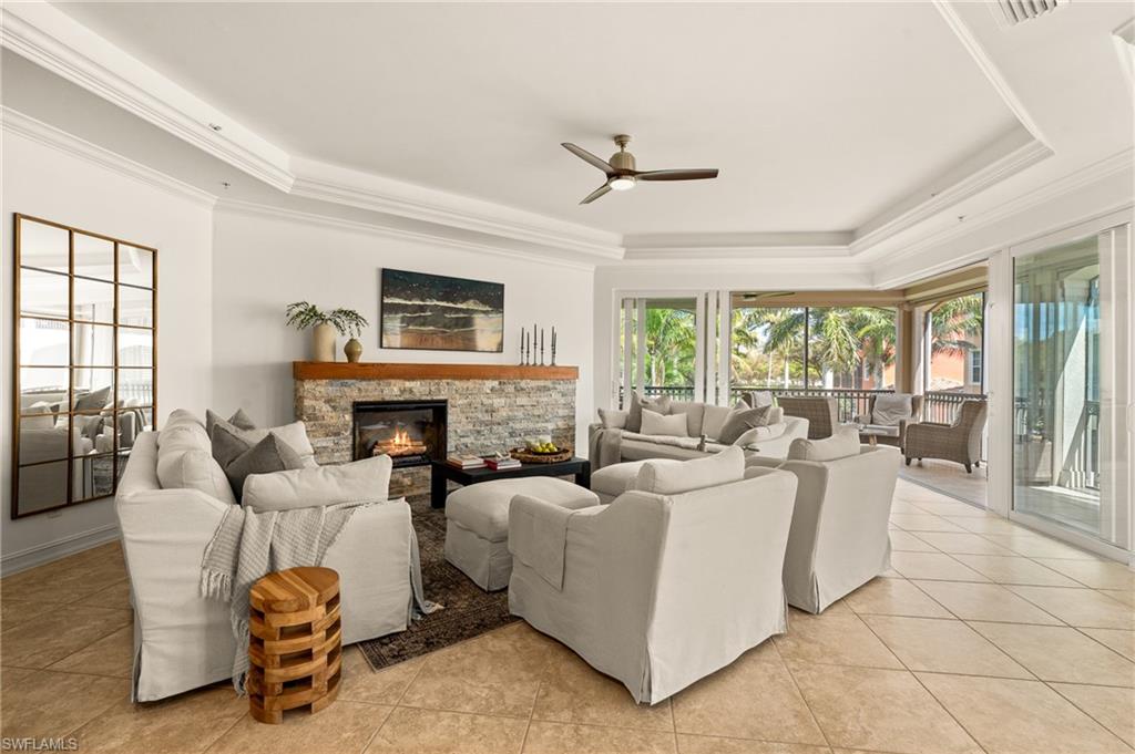 Barefoot Elegance at Miromar Lakes Discover the perfect blend of luxury and comfort in this beautifully remodeled sanctuary, nestled within the sought-after Vivaldi community of Miromar Lakes. This professionally designed 2nd-floor residence offers 3 bedrooms + a den with a pull-out, ensuring ample space for relaxation and entertainment. Bathed in natural light from its desirable southeast exposure, the expansive 1,100-square-foot lanai is an outdoor oasis, complete with a built-in kitchen, barbecue, spacious dining area, and cozy conversation nook—ideal for enjoying breathtaking sunrises and serene cross breezes. The lanai overlooks a tranquil lagoon, the private Vivaldi pool, and the clubhouse, creating a picturesque setting. Inside, an open-concept great room features a stunning stone accent wall with a Dimplex fireplace and a framed TV, serving as a sophisticated focal point. Each bedroom boasts an en-suite bath, offering ultimate luxury and privacy for you and your guests. Experience resort-style living with a leisurely stroll along the pristine sandy beach to the spa and fitness center, main clubhouse pool, tennis and pickleball courts, and on-site restaurants. Recent Upgrades: • Full interior repainting and new carpeting • Outdoor barbecue installation • Elegant feature wall with Dimplex fireplace & Frame TV • New KitchenAid microwave oven (2024), dishwasher, washer, and dryer (2024) • New water heater Investment Potential: Seasonal rental income of up to $15,000 per month. Priced to sell! - Don’t miss this rare opportunity to own this exquisite retreat in Miromar Lakes—where barefoot luxury meets resort living!