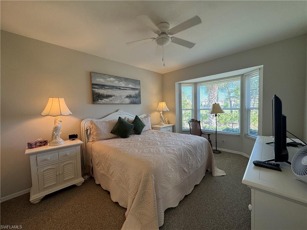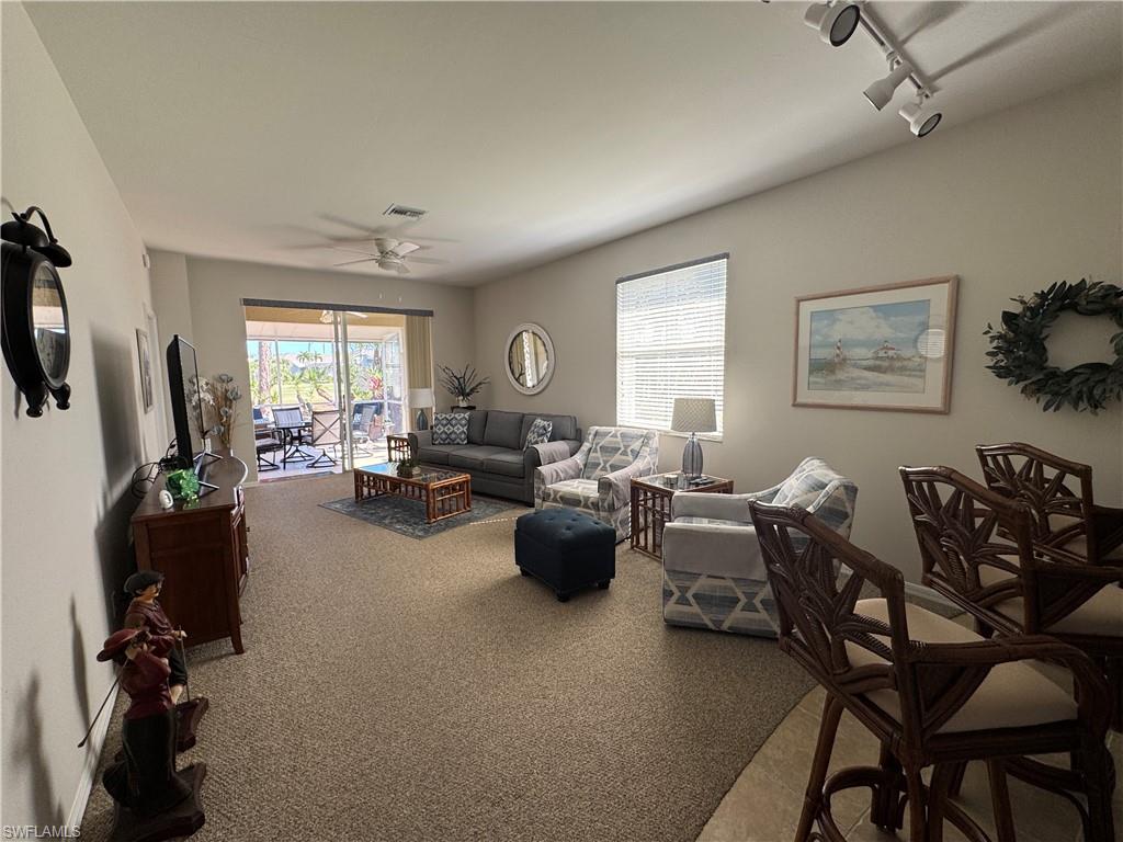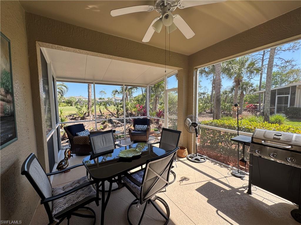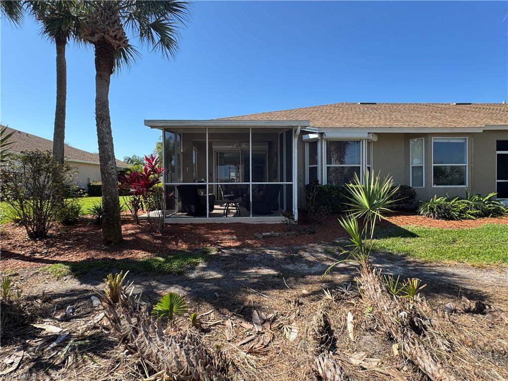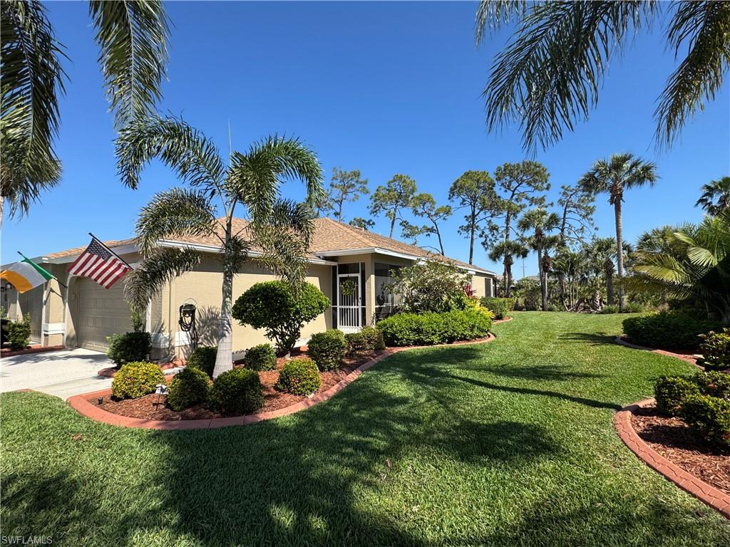 Location Location. The sought after end unit has 2 car attached garage and is being sold TURN KEY. This 2+ bedroom 2 bath Villa is in move in condition, ready for your winter escape or year-round living. Open floor plan offers nice breakfast area with view of front Lani. Kitchen has hard surface counter tops and additional bar top seating. Home has both electric and manual hurricane shutters Enjoy the views of the 13th fairway and preserve from the extended Lani offering lots of room for great outdoor BBQ's. Master Bedroom has 3/4 bath and walk in closets and offers great views of the golf course. Low association fees cover exterior insurance, internet and cable, reserves for pressure washing, painting, roof replacement and exterior pest control. Stoneybrook amenities include Fitness Center, 3 Community pools & Hot tub, Tennis and Pickleball Courts, Basketball and Volleyball courts, Baseball Field and Bocce Ball and also a large playground for kids. Stoneybrook is an awesome development is a perfect location for shopping, dining, hospitals, and easy to and from the airport. Close to Hertz Arena and walking distance to lots of amenities. Stoney Brook Golf is a public golf course where you pay when you play at a reduced rate from the public and attached to the club house is Duffy's Restaurant with awesome food and drink specials and huge area for outdoor seating with view of the driving range. All this within walking distance. Come take a look.