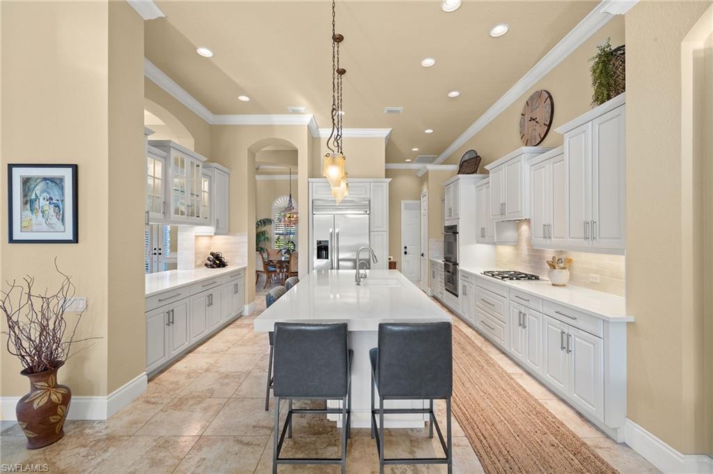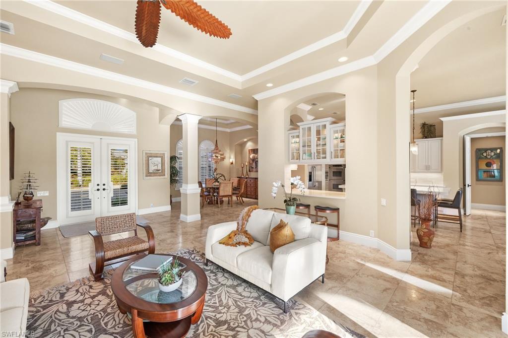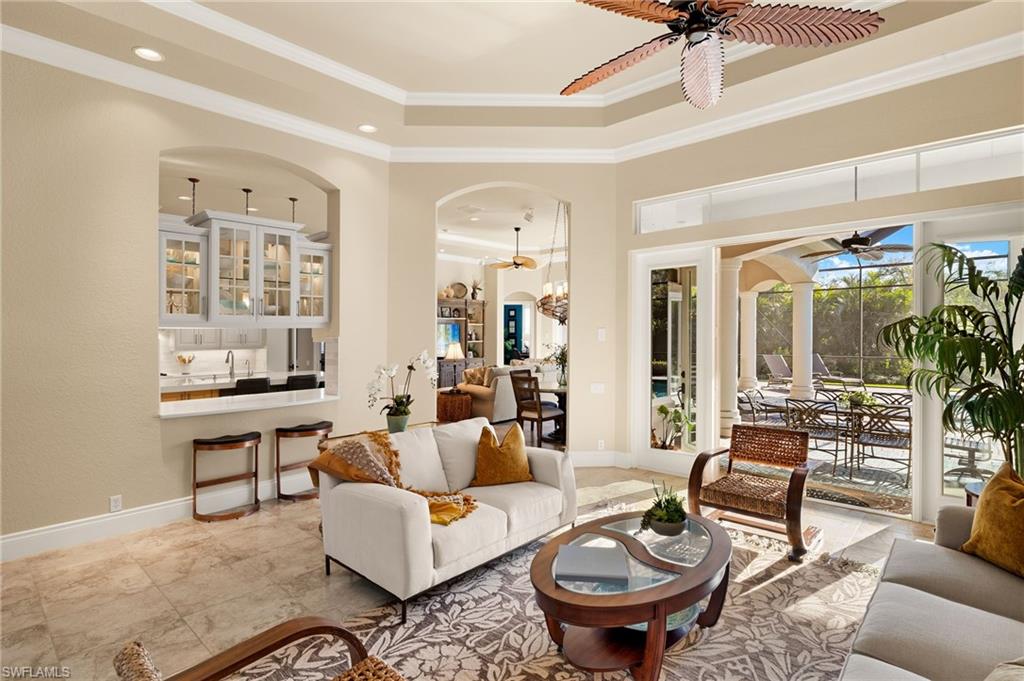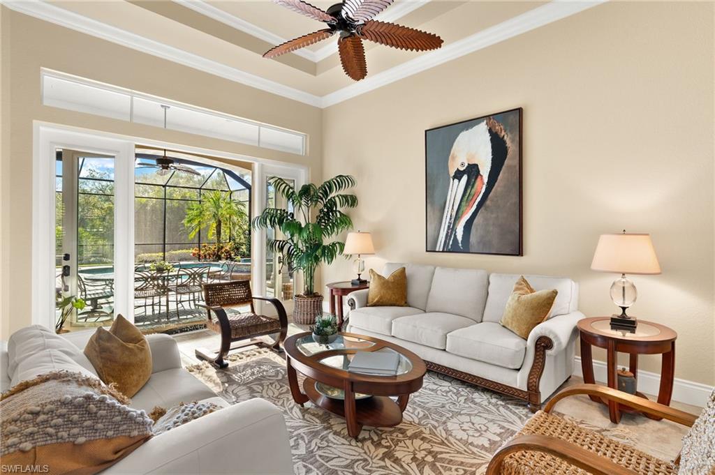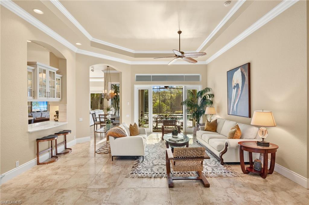 Incredible opportunity to own this meticulously kept and completely move-in-ready Arthur Rutenberg custom estate home, WITH A FULL PREMIER GOLF MEMBERSHIP AVAILABLE, bypassing the waitlist—to the private 18-hole Pete and PB Dye designed golf course. Upon entering the elegant double glass front doors, you are greeted with soaring tray ceilings coupled with double-tiered crown molding and stunning Eastern preserve views, offering complete privacy on the expansive lanai with saltwater pool and spa. This home offers three large bedrooms plus a sizable den and three full bathrooms. It is loaded with spectacular upgrades and features, including an oversized circular driveway with a side-load three-car garage, impact glass doors and windows, a whole-house generator, an outdoor fireplace, an elegant, renovated chef's kitchen with natural gas, 20-inch neutral tile, and an exceptional custom garage with storage racks, built-in cabinets, and epoxy-coated flooring. West Bay offers something for everyone and every lifestyle, including a private beach club with full-service dining options, championship golf, a resort-style pool with restaurant, active tennis and pickleball programs, bocce courts, a private dog park, and state-of-the-art fitness facilities. West Bay’s River Park is located on the Estero River and features a fishing pier, boat launch with Gulf access, boat storage, kayaks/canoes, picnic areas, a basketball court, a playground, and a walking trail. The community of West Bay is ideally located west of 41 and surrounded by numerous dining, shopping, and entertainment options. Do not miss your chance to purchase this beautiful home immersed in an incredible lifestyle!