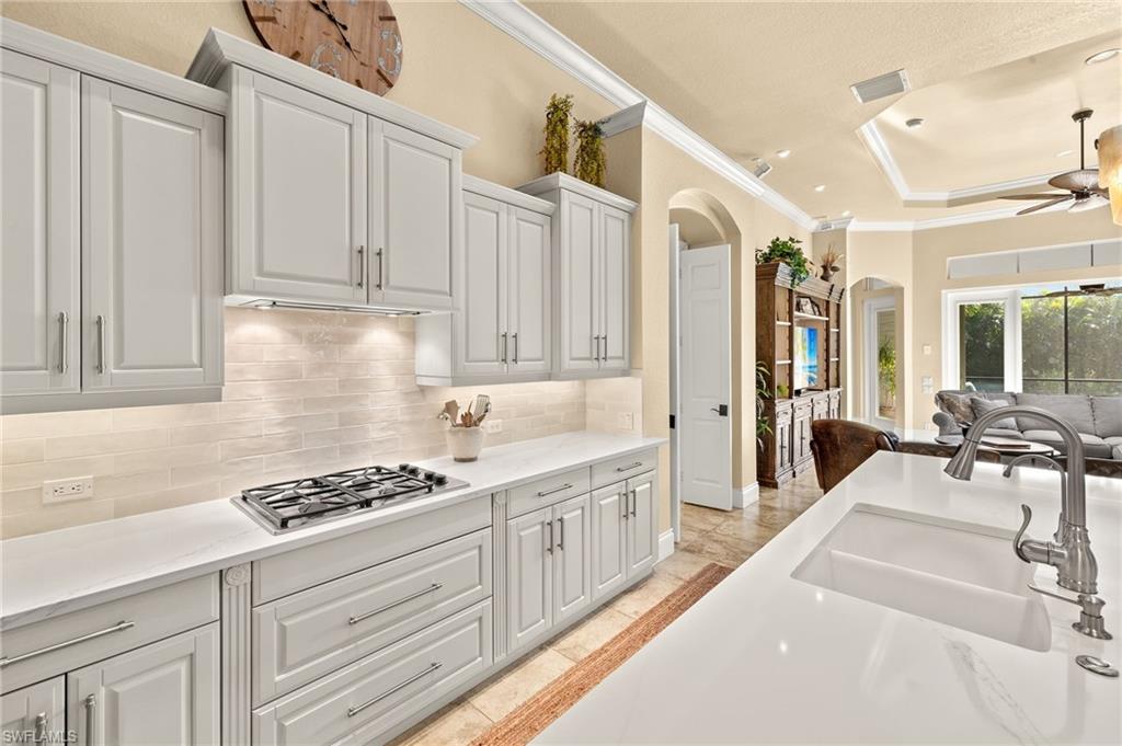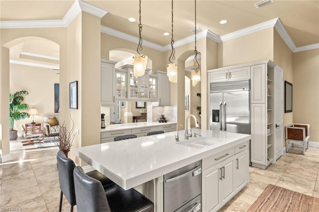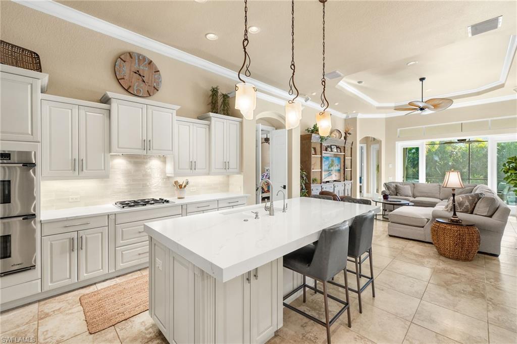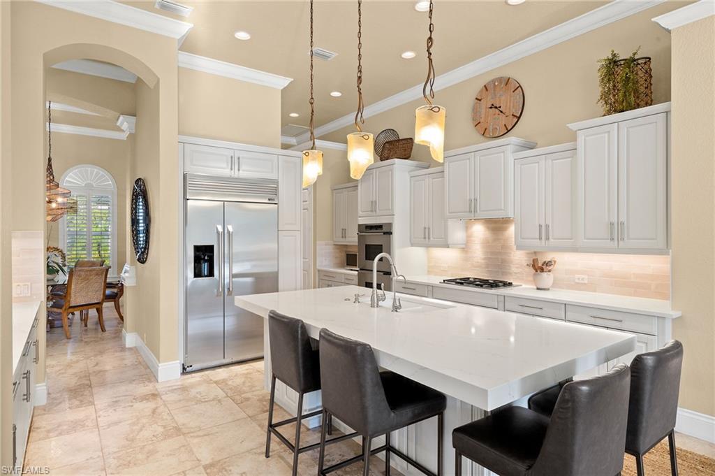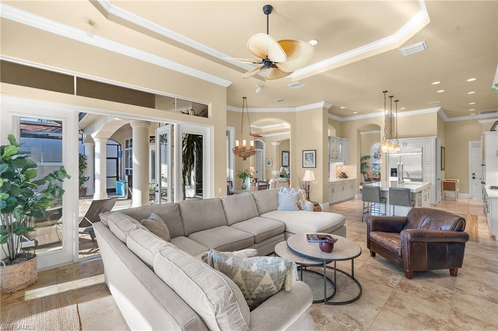 Incredible opportunity to own this meticulously kept and completely move-in-ready Arthur Rutenberg custom estate home, WITH A FULL PREMIER GOLF MEMBERSHIP AVAILABLE, bypassing the waitlist—to the private 18-hole Pete and PB Dye designed golf course. Upon entering the elegant double glass front doors, you are greeted with soaring tray ceilings coupled with double-tiered crown molding and stunning Eastern preserve views, offering complete privacy on the expansive lanai with saltwater pool and spa. This home offers three large bedrooms plus a sizable den and three full bathrooms. It is loaded with spectacular upgrades and features, including an oversized circular driveway with a side-load three-car garage, impact glass doors and windows, a whole-house generator, an outdoor fireplace, an elegant, renovated chef's kitchen with natural gas, 20-inch neutral tile, and an exceptional custom garage with storage racks, built-in cabinets, and epoxy-coated flooring. West Bay offers something for everyone and every lifestyle, including a private beach club with full-service dining options, championship golf, a resort-style pool with restaurant, active tennis and pickleball programs, bocce courts, a private dog park, and state-of-the-art fitness facilities. West Bay’s River Park is located on the Estero River and features a fishing pier, boat launch with Gulf access, boat storage, kayaks/canoes, picnic areas, a basketball court, a playground, and a walking trail. The community of West Bay is ideally located west of 41 and surrounded by numerous dining, shopping, and entertainment options. Do not miss your chance to purchase this beautiful home immersed in an incredible lifestyle!