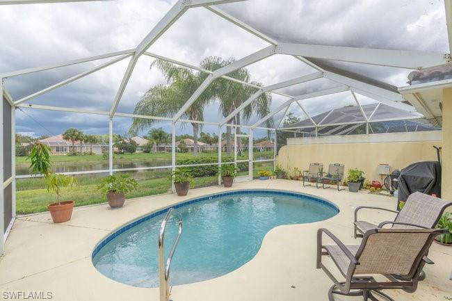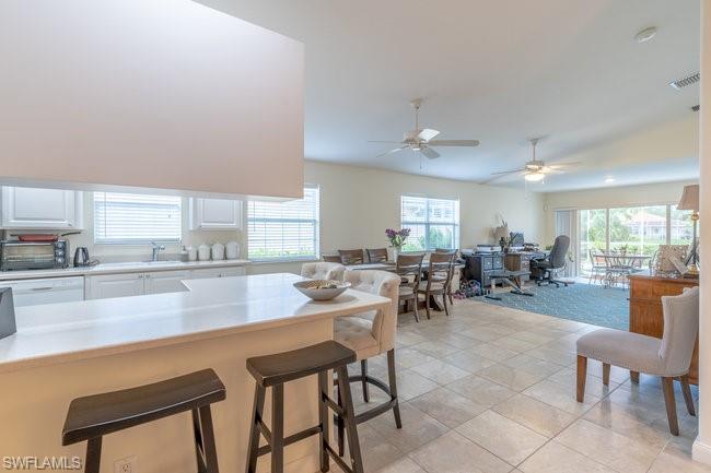 TENANT HAS MOVED OUT SO NOW BEING DEEP CLEANED THEN BEING PUT ON TO FINALLY SHOW !!!! THEN THE Rarely available for sale is an extended model, Capri villa located in the gated resort community of VeronaWalk. Seated towards the end of a long court, this two bedroom with den/two bath, original poured concrete, DiVosta home has additional under air living space, as compared to others. This well maintained, open concept unit with vaulted ceiling offers a split bedroom floorplan allowing for privacy when entertaining overnight guests. A centrally located white kitchen has an abundance of cabinetry and counter space. Flooring is a mix of neutral tile and carpet. The full laundry room with wash sink has even more storage and a large pantry closet. Upon exiting a bank of sliding glass doors you step onto your screen enclosed patio with inviting kidney shaped pool. A deep lawn borders a long waterway that glides past the back of the property. There are miles of connecting bridges and walkways to bicycle, dog walk or just stroll past the many lakes. Sports such as pickle ball, tennis, a fitness center, two pools and much more is available. The town center has for your convenience, a full service restaurant, ice cream shoppe, hair salon, gas pumps and post office all within walking distance.