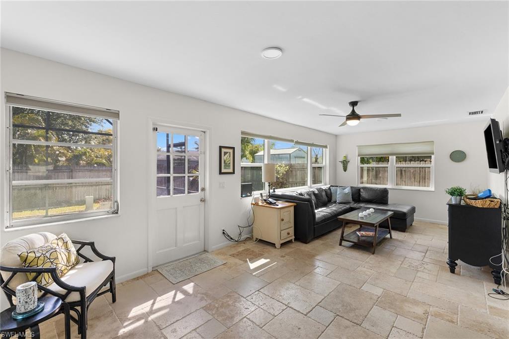 Welcome to your turnkey coastal retreat in the heart of Bonita Springs! This two-bedroom, two-bath gem blends classic Florida charm with modern updates, featuring a stylish metal roof, an updated kitchen and baths, travertine flooring throughout, impact windows and an inviting open floor plan for relaxed living. Love the beach? You’re just a short drive from the soft sands of the beautiful Southwest Florida Gulf. Craving a local vibe? Visit or bike to Wolf Moon Bakery, The Sugar Shack and Bonita’s best breweries. Whether you’re sipping a latte, catching live music or enjoying a craft brew, this home puts you at the center of it all. With cozy cottage vibes, lush tropical landscaping, an x-zone lot, and a laid-back, beachy feel, this home is a rare find in one of Southwest Florida’s sought-after locations. Vacation mode starts the moment you walk through the door. Your slice of paradise awaits. Schedule your private tour today.