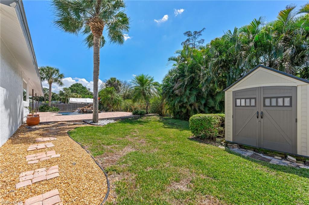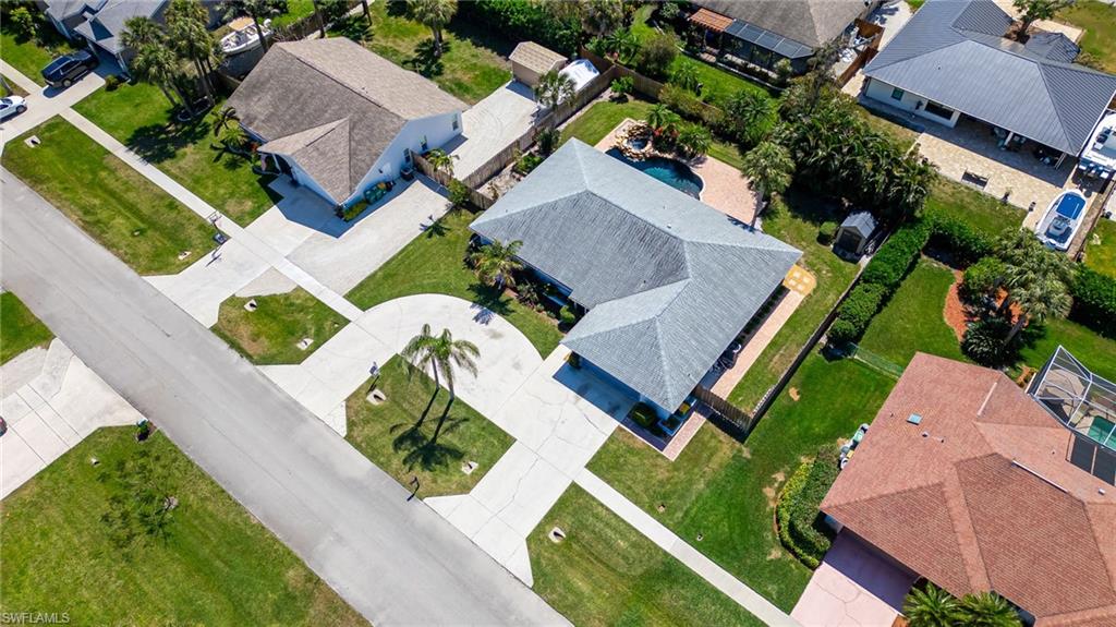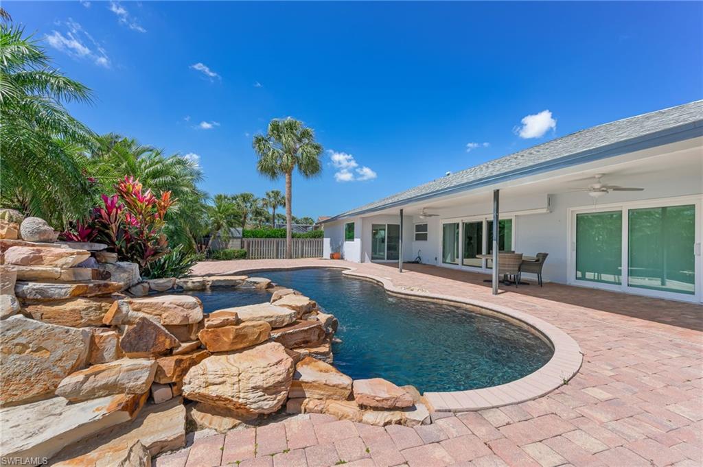 Lowest priced per sq. ft. pool home in the neighborhood—already beautifully updated! No flooding, no insurance claims, and direct Gulf access make this 4-bedroom, pool home with southern exposure a rare find. Set on one of the community’s largest lots (100’ x 125’, over ¼ acre), this residence offers space, privacy, and upgrades throughout. A circular driveway accommodates up to 10 cars, while the fully fenced backyard—with custom shadowbox fencing—ensures safety for children and pets. Enjoy your own fruit trees (orange, avocado, grape vines) and a thriving vegetable garden. The resort-style pool and spa feature a cascading waterfall and dual-pump system, all easily managed through the Aqualink control system. Inside, the home impresses with travertine tile flooring, 5” baseboards, and a bright kitchen with a picture window, custom wood cabinetry, and quartz countertops. The primary suite includes hardwood floors, modern fixtures, dimmable lighting, and a custom closet. Major updates bring peace of mind: impact windows and sliders (2022), roof (2017), plumbing (2012), and electrical panel (2020). For just $450/year, homeowners can join the Coconut River Estates Civic Association, unlocking incredible amenities: • Private boat ramp & kayak launch • Heated community pool • Dog park • Pickleball, tennis, basketball & shuffleboard courts • Playground & pavilion for gatherings • Optional on-site boat storage at a nominal fee All of this, just 5 minutes to shopping and dining, 10 minutes to the beach, and within three of Collier County’s top-rated schools.