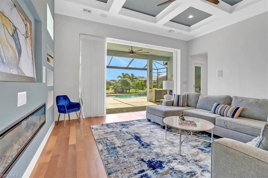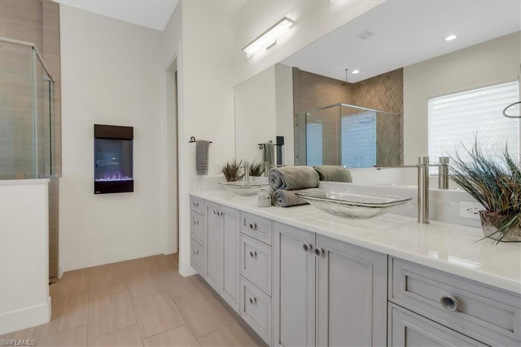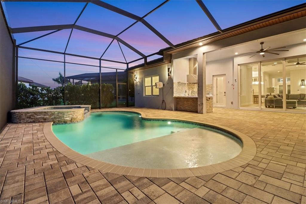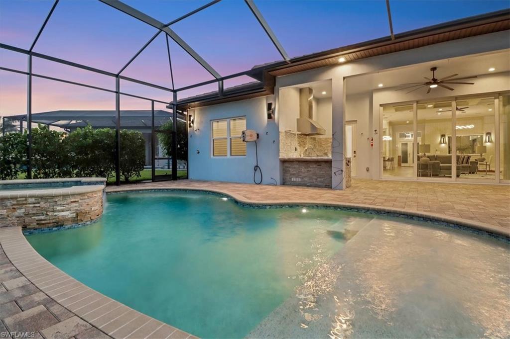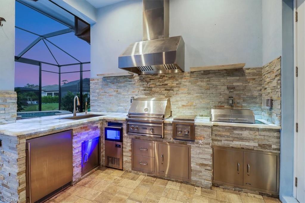 Discover the ultimate in luxury living with this exceptional custom-built residence, a true hidden gem in the prestigious Sapphire Cove community. Thoughtfully designed with every premium upgrade the builder had to offer, this home effortlessly combines elegance, comfort, and cutting-edge design. Step inside to find a spacious open floor plan featuring 3 bedrooms and 3.5 designer bathrooms, complemented by soaring 12-foot ceilings and expansive 10-foot pocketing sliding glass doors that blur the lines between indoor and outdoor living. Natural light floods the interiors, showcasing meticulous craftsmanship and bespoke finishes throughout. Enjoy breathtaking lake views from your private pool and spa, or entertain in style with a resort-inspired outdoor kitchen, complete with glowing quartzite countertops and built-in features designed for elevated alfresco living. Inside, no detail has been overlooked, from the chef’s kitchen outfitted with Wolf and Sub-Zero appliances, to custom cabinetry, designer lighting, and integrated speakers that bring ambiance to every room. The climate-controlled 3-car garage offers generous space for your luxury car collection, hobbies, or storage—designed with the same attention to detail as the rest of the home. This residence is a masterclass in sophistication and craftsmanship. A must-see for discerning buyers seeking timeless elegance and contemporary luxury in one of Naples' most sought-after communities.