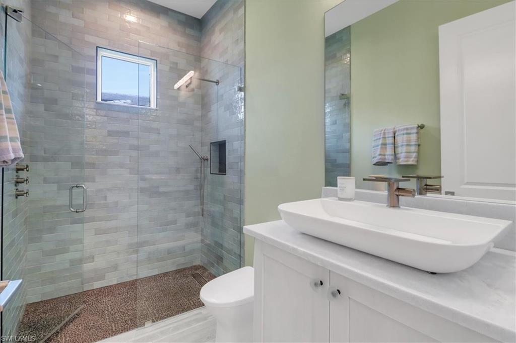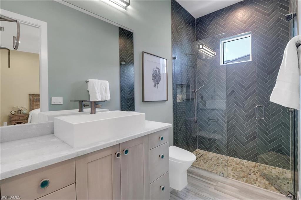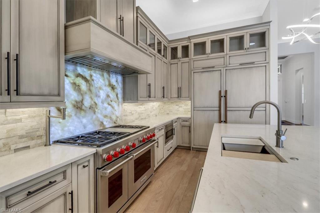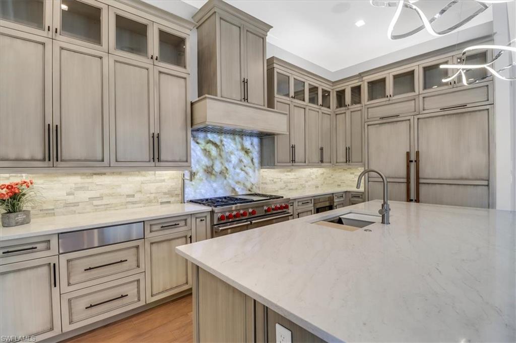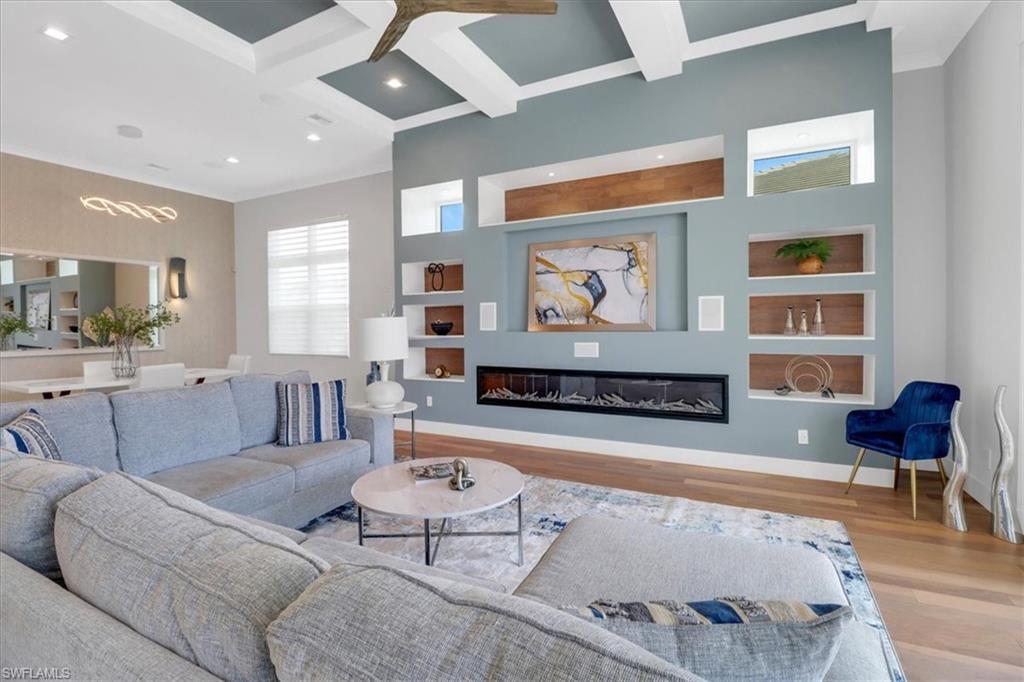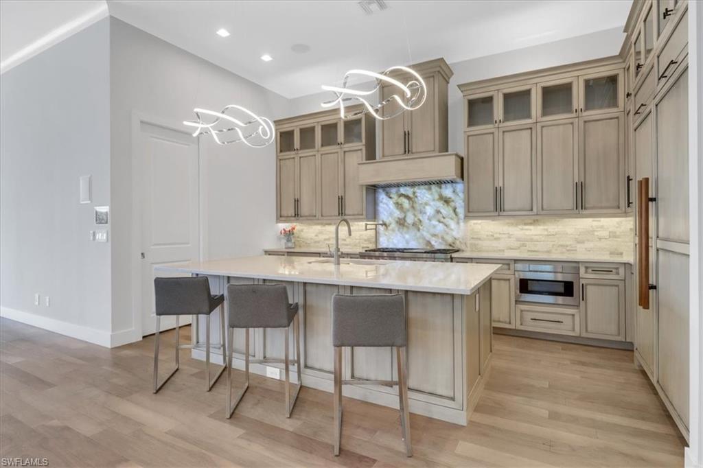 Discover the ultimate in luxury living with this exceptional custom-built residence, a true hidden gem in the prestigious Sapphire Cove community. Thoughtfully designed with every premium upgrade the builder had to offer, this home effortlessly combines elegance, comfort, and cutting-edge design. Step inside to find a spacious open floor plan featuring 3 bedrooms and 3.5 designer bathrooms, complemented by soaring 12-foot ceilings and expansive 10-foot pocketing sliding glass doors that blur the lines between indoor and outdoor living. Natural light floods the interiors, showcasing meticulous craftsmanship and bespoke finishes throughout. Enjoy breathtaking lake views from your private pool and spa, or entertain in style with a resort-inspired outdoor kitchen, complete with glowing quartzite countertops and built-in features designed for elevated alfresco living. Inside, no detail has been overlooked, from the chef’s kitchen outfitted with Wolf and Sub-Zero appliances, to custom cabinetry, designer lighting, and integrated speakers that bring ambiance to every room. The climate-controlled 3-car garage offers generous space for your luxury car collection, hobbies, or storage—designed with the same attention to detail as the rest of the home. This residence is a masterclass in sophistication and craftsmanship. A must-see for discerning buyers seeking timeless elegance and contemporary luxury in one of Naples' most sought-after communities.