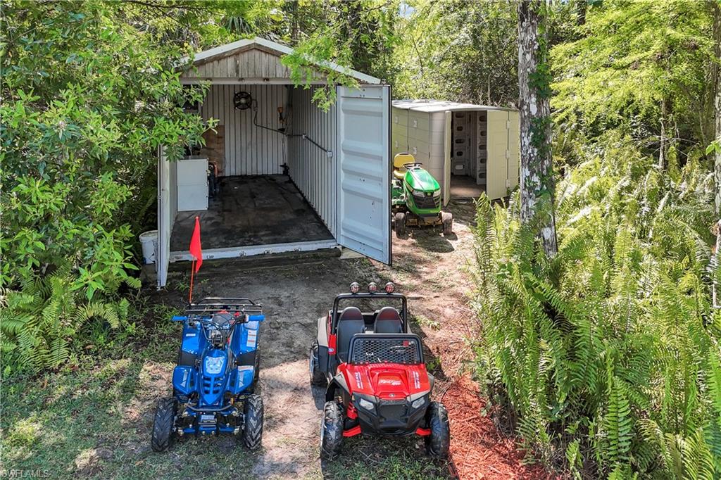 Spectacular property met with a spectacular price reduction, even more attractive and now irresistible! Prepare to make memories for a lifetime, in this wonderful property including 4 Bedrooms, 4 Wheeler Path, 3 Car Garage, 2 Fire Pits, Pool and Dog Kennel. Looking for charming “Country Living” at its best, with city convenience & access? This exceptional property in Golden Gate Estates is safely on a side street, but conveniently only 3 blocks to the new Vanderbilt Beach Rd. Extension, coming right to 16th St. NE for easy access! Nestled on a spacious 2.73 Acres, this 4 Bedroom Pool Home has large 3 car garage, bright White Kitchen & 2018 Flat Tile (Not Shingle!) Roof. Enter through the new white fence with entry code box and sliding gate, to see long driveway and multiple parking spaces, as well as RV Pad, complete with electrical, water and data hookups. Bring your RV, Trailer, Boat or other recreational vehicle for easy hookup. Relax swimming in Medallion pool with wrap around deck and new umbrellas; charming screened and open poolside brick paver porch has retractable awnings. Enjoy great family time together at either your Poolside Fire Pit with S’mores, or your giant back yard Bonfire fire pit, both complete with adirondack chairs and wood piles. There’s a “He Shed” for Equipment, John Deere Riding Mower and Portable Generator included, with easy hook up on the electrical panel in garage. There’s a “She Shed,” for clothes and things, or anything needing storage. There’s a “Kid’s Shed,” with Kid’s 4 Wheeler + Kid’s Jeep included. There’s even a full size Four-Wheeler, to Ride the awesome 4 Wheeler Trail in the back yard! It’s also a great walking and meditation path, but crazy fun on 4 wheeler. New Whole House Reverse Osmosis System with 500 Gallon Tank. Inside Doggie Door leads to fenced porch leads to Outside Fenced Dog Kennel, even a dog house in there. New Grey Gutters, Porcelain Plank Tile throughout Main Areas, No Carpet. Main bath has soaking tub, frameless walk-in shower, dual sinks and extra large walk-in closet with white built-in closet shelving and storage. Irrigation around the Perimeter of Home, all the way to the back behind the pool. Water Line Extended out to Garden Beds; Spigot added + Multiple Garden Beds have Built in Irrigation. Mature Magnificent Cypress Trees (No Messy Pine Needles). Citrus & Fruit Tress including Lemon, Orange, Mango trees. Coconut Trees, Banana Trees, Barbados Cherry Bush. Specialties including Rainbow Eucalyptus Tree. A Boulder Succulent Garden with Bougainvillea Highlights, Quadruple Christmas Palms, Birds of Paradise, Fern Wall, Clusia Border Hedge, and all with NO HOA fees or rules. Picture yourself here, in this private estate living in tune with, and a part of nature, just minutes away from dining, shopping, retail. With the new Vanderbilt Beach Rd. Extension, quicker access to everything Naples is famous for, including its sugar sand beaches, art, shopping and city life.