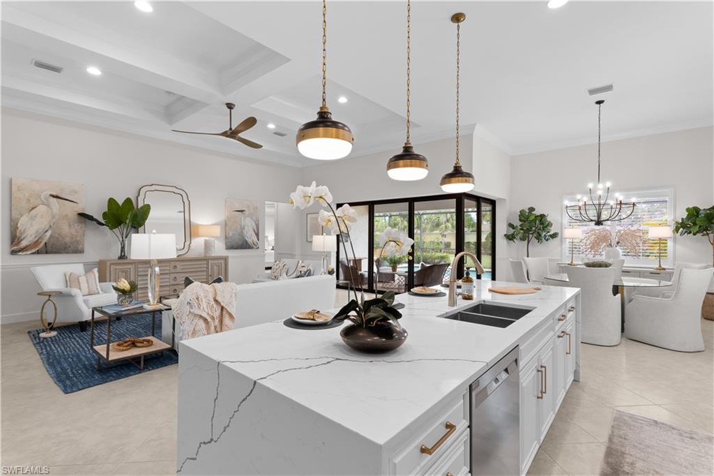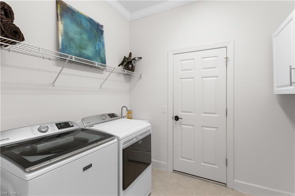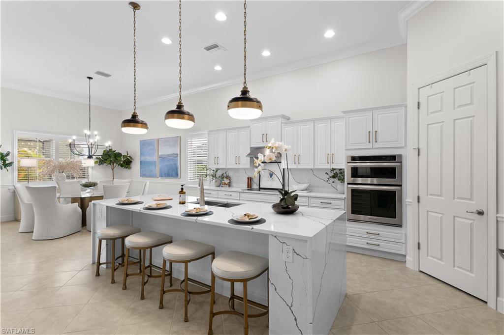 Welcome to this stunning, light-filled "Dartmouth" floorplan home, featuring 3 bedrooms, a den, 3 bathrooms, and a spacious 3-car garage. Nestled on an oversized, private lot, this home offers a wide-open Great Room layout that’s perfect for entertaining and everyday living. As you step inside, you’ll be greeted by a bright and airy atmosphere, highlighted by zero-corner pocketing sliding glass doors that seamlessly connect the indoor and outdoor living spaces. The sliding doors lead to the expansive lanai, where you'll find a heated pool and spa – your personal oasis. The chef’s kitchen is a dream, complete with white cabinets, brand-new Kitchenaid French door refrigerator, induction cooktop, wall oven, convection microwave, and new quartz countertops with a full backsplash and waterfall island. The large eat-in kitchen area offers the perfect spot to gather and enjoy meals with family and friends. Retreat to the luxurious primary suite, which boasts a tray ceiling, an updated bath featuring new floor and shower tiles, a frameless shower enclosure, quartz countertops, and a spacious walk-in closet with built-in cabinetry. Additional upgrades and features of this home include a brand-new Maytag washer and dryer, diagonal tile flooring throughout the common areas, luxury laminate in the bedrooms and den, freshly painted interior, and custom plantation shutters on all windows. The lanai offers electric motorized roll-down hurricane screens, and the home is equipped with hurricane impact windows in the front bedroom, along with easy-to-install hurricane screens for the side and rear windows. The garage is finished with cabinetry, overhead racks, and a pristine floor. A whole-house water softener/filter adds extra convenience. The Quarry is an exceptional lakefront community with something for everyone. Enjoy boating, golf, tennis, pickleball, bocce, a tiki bar, restaurant, poolside food and drink service, a fitness center, and social activities. The recently renovated $18M Lake Lodge & Beach Club offers over 500 acres of navigable lakes, boat slips available for lease, and a private 18-hole golf course (memberships are optional). Don’t miss the chance to experience a lifestyle like no other in The Quarry – schedule your private showing today!