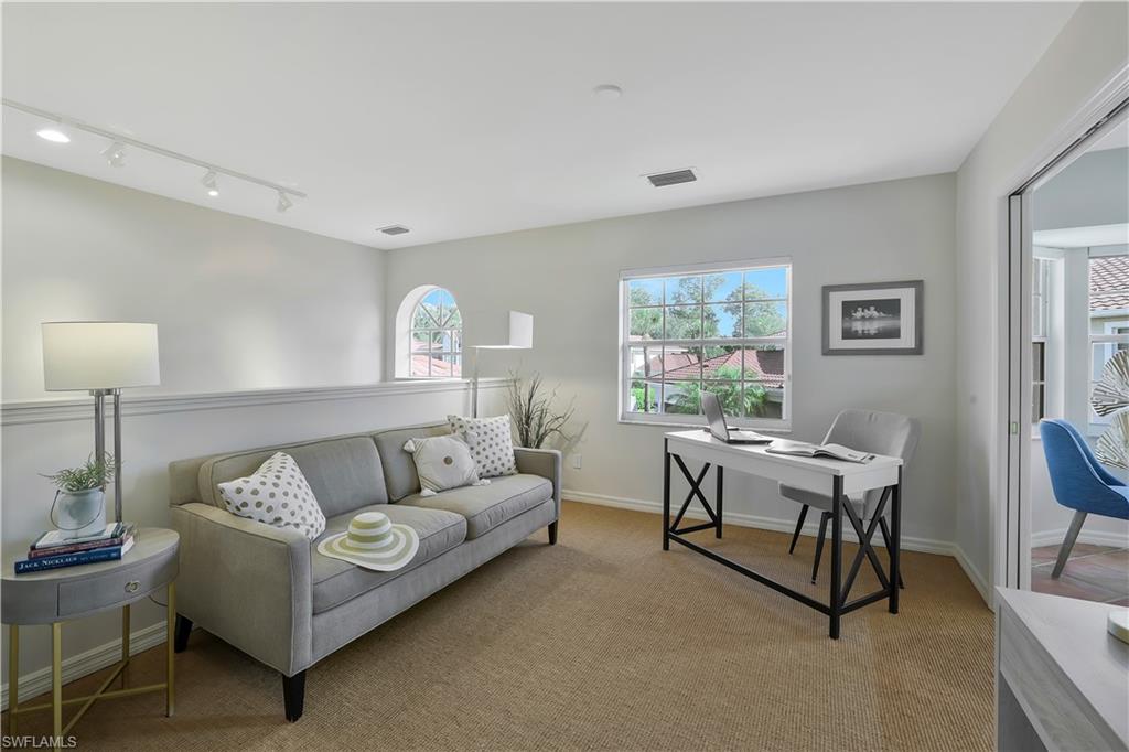 Nestled in the sought-after Clubside Reserve within the prestigious Vineyards community, this charming second-floor condo offers a lifestyle of unparalleled ease. Residents are just a short stroll away from the Vineyards Country Club, where leisure and luxury abound. This lovely condo boasts picturesque views of the serene lake and its mesmerizing fountain, providing a tranquil backdrop for your daily living. The condo features three generously sized bedrooms, complemented by a versatile den that serves as an ideal home office or relaxation space. With three full bathrooms, convenience and privacy are assured for all occupants. Step out onto the lanai, secured with electric hurricane shutters that offer peace of mind during the summer season. The outdoor space invites you to unwind and savor the beauty of your surroundings. Experience the perfect blend of comfort, luxury, and convenience in this comfortable second floor condo at Clubside Reserve. The condo has just been painted throughout with some newer lights and fans added. Clubside is midway between Vanderbilt Beach Rd and Pine Ridge, making it effortless to access the local neighborhood shops, restaurants and health care facilities as well as all that Naples and Southwest Florida has to offer. Welcome home!