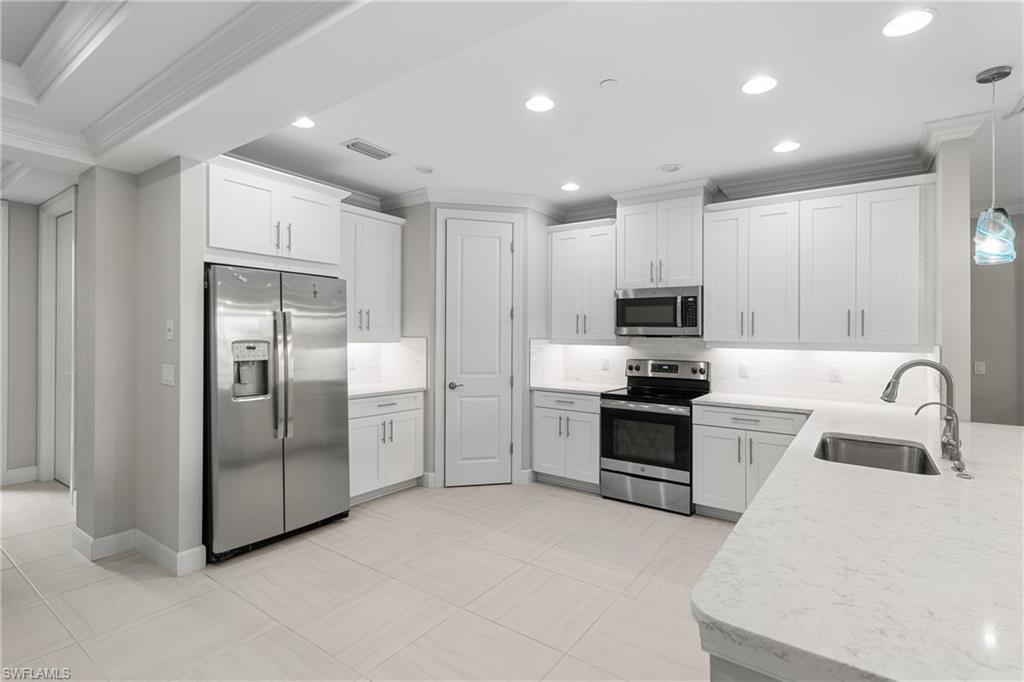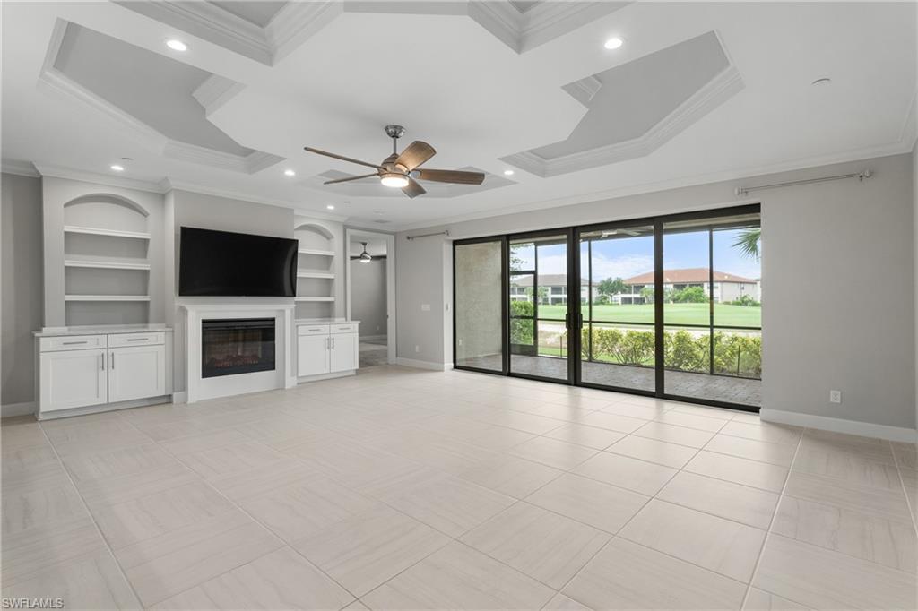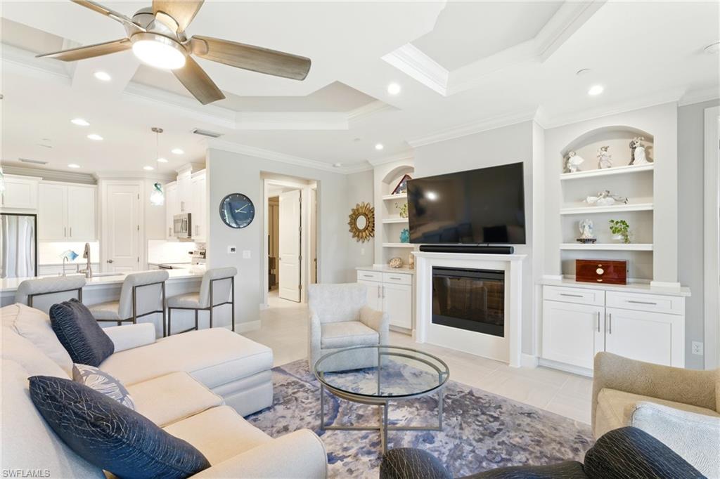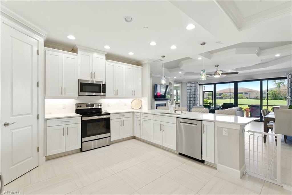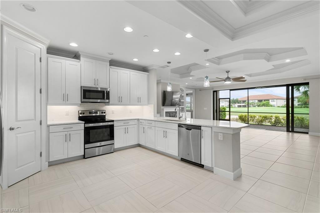 $5K REDUCTION & MOTIVATED SELLER! Searching for a newer, modern-style coach home with an included golf membership? Discover this exceptional 2 bed / 2 bath first-floor coach home in Esplanade Golf & Country Club, complete with a FULL GOLF MEMBERSHIP that activates the day you close! Built just 5 years ago, this home offers a contemporary style and convenience today’s buyers are looking for along with over 1,700 square feet of beautifully maintained open living space. Take in stunning western views of the 15th green from the spacious screened lanai, complete with roll-down sunshades for added comfort. Inside, the home features elegant crown molding, 24-inch tile flooring, a cozy fireplace, high-impact windows and doors, tray ceilings, and upgraded glass shower doors in the guest bath. The kitchen is a true highlight with quartz countertops, upgraded white cabinetry, stylish hanging lights over the island, a sleek one-piece sink, and a generous pantry for extra storage. The master suite is both spacious and serene, offering a large closet, dual sinks, and a walk-in shower. The second bedroom is comparable in size to the master, comfortably accommodating two queen-size beds. It features generous closet space and its own private bathroom. Additional upgrades include all-new faucets and showerheads, a new lanai fan, and a total home water filtration system with an extra filter under the kitchen sink for clean, healthy drinking water. This home also provides excellent rental income—renters are granted golf course access with a paid transfer fee. It's located on a lively and welcoming street with access to two community pools and gas grills, perfect for social gatherings. Entering Esplanade, you will notice why Esplanade Golf & CC was awarded this year's Outstanding Landscaping Award for the front entrance by the National Association of Landscape Professionals. As a resident, you’ll enjoy Esplanade’s world-class amenities, including a championship golf course, state-of-the-art clubhouse, resort-style pool with food/drink service, cabanas, tennis and pickleball courts, walking and biking trails, a dog park, fitness center, full-service salon and spa, wellness center, tiki bar, and more. Ideally situated in North Naples, Esplanade Golf & Country Club offers easy access to I-75, the airport, top-rated restaurants, great shopping, and the breathtaking beaches of the Gulf Coast. Known for its vibrant and active social scene, this community delivers the perfect blend of luxury, recreation, and lifestyle. Don’t miss the opportunity to make this exceptional home yours and start living the Esplanade dream!