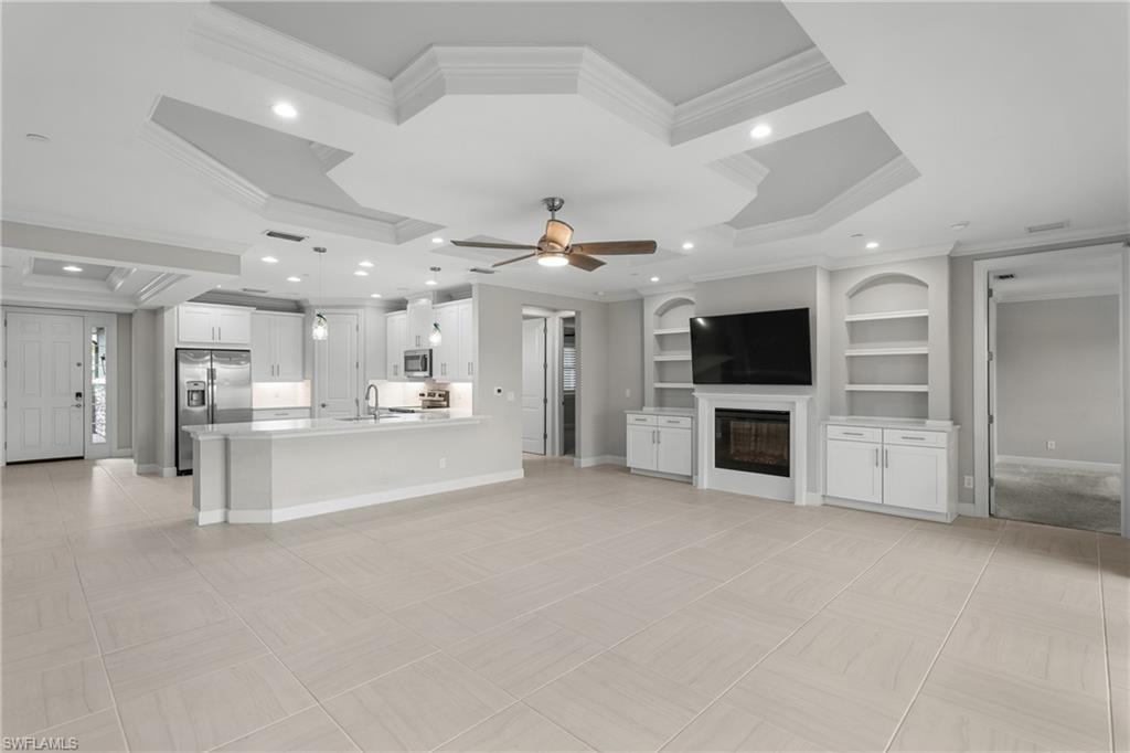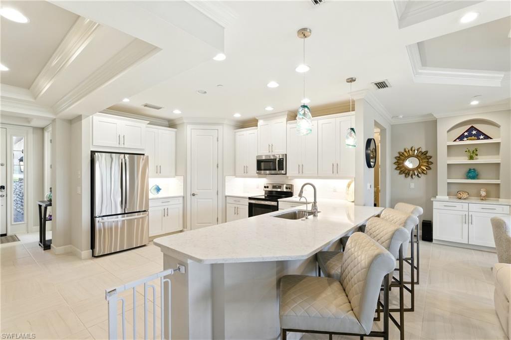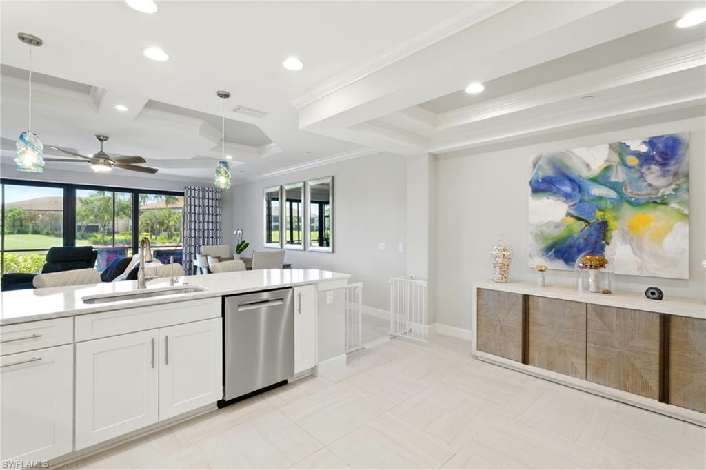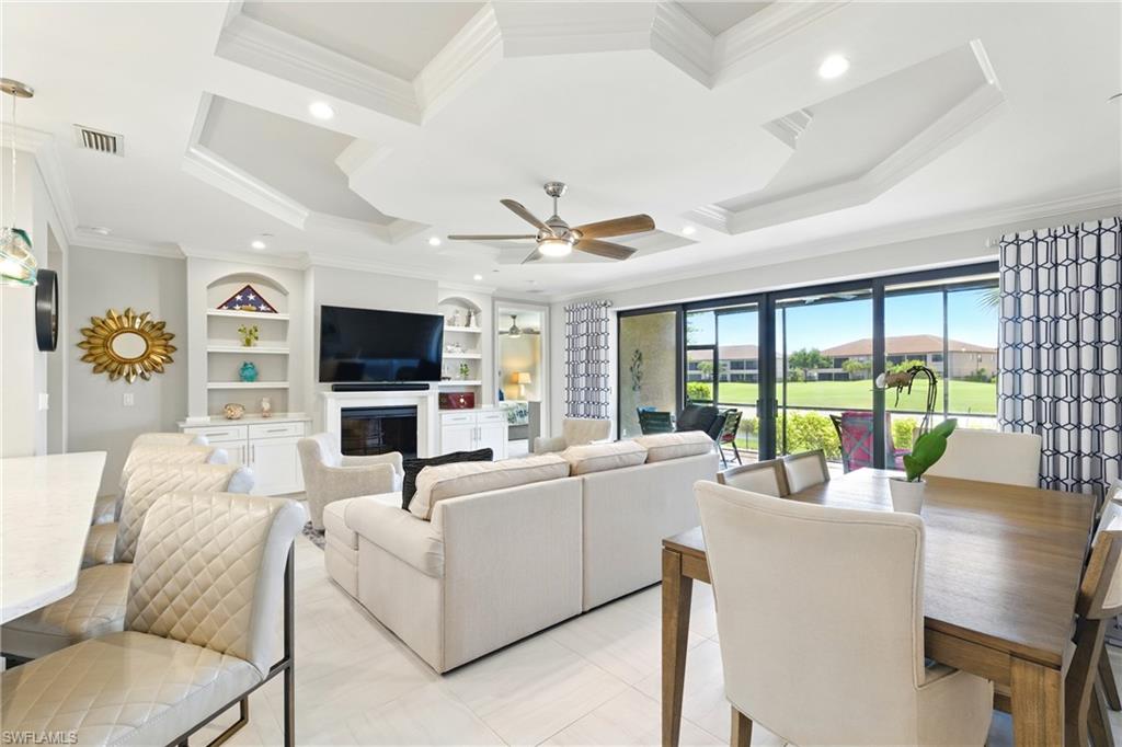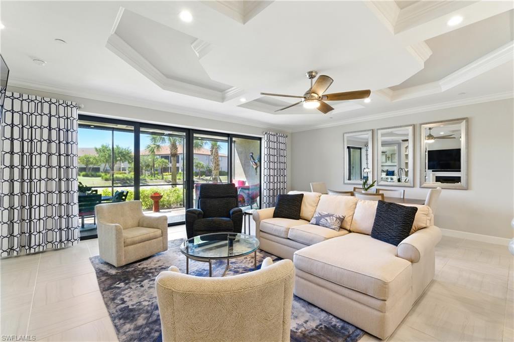 $5K REDUCTION & MOTIVATED SELLER! Searching for a newer, modern-style coach home with an included golf membership? Discover this exceptional 2 bed / 2 bath first-floor coach home in Esplanade Golf & Country Club, complete with a FULL GOLF MEMBERSHIP that activates the day you close! Built just 5 years ago, this home offers a contemporary style and convenience today’s buyers are looking for along with over 1,700 square feet of beautifully maintained open living space. Take in stunning western views of the 15th green from the spacious screened lanai, complete with roll-down sunshades for added comfort. Inside, the home features elegant crown molding, 24-inch tile flooring, a cozy fireplace, high-impact windows and doors, tray ceilings, and upgraded glass shower doors in the guest bath. The kitchen is a true highlight with quartz countertops, upgraded white cabinetry, stylish hanging lights over the island, a sleek one-piece sink, and a generous pantry for extra storage. The master suite is both spacious and serene, offering a large closet, dual sinks, and a walk-in shower. The second bedroom is comparable in size to the master, comfortably accommodating two queen-size beds. It features generous closet space and its own private bathroom. Additional upgrades include all-new faucets and showerheads, a new lanai fan, and a total home water filtration system with an extra filter under the kitchen sink for clean, healthy drinking water. This home also provides excellent rental income—renters are granted golf course access with a paid transfer fee. It's located on a lively and welcoming street with access to two community pools and gas grills, perfect for social gatherings. Entering Esplanade, you will notice why Esplanade Golf & CC was awarded this year's Outstanding Landscaping Award for the front entrance by the National Association of Landscape Professionals. As a resident, you’ll enjoy Esplanade’s world-class amenities, including a championship golf course, state-of-the-art clubhouse, resort-style pool with food/drink service, cabanas, tennis and pickleball courts, walking and biking trails, a dog park, fitness center, full-service salon and spa, wellness center, tiki bar, and more. Ideally situated in North Naples, Esplanade Golf & Country Club offers easy access to I-75, the airport, top-rated restaurants, great shopping, and the breathtaking beaches of the Gulf Coast. Known for its vibrant and active social scene, this community delivers the perfect blend of luxury, recreation, and lifestyle. Don’t miss the opportunity to make this exceptional home yours and start living the Esplanade dream!