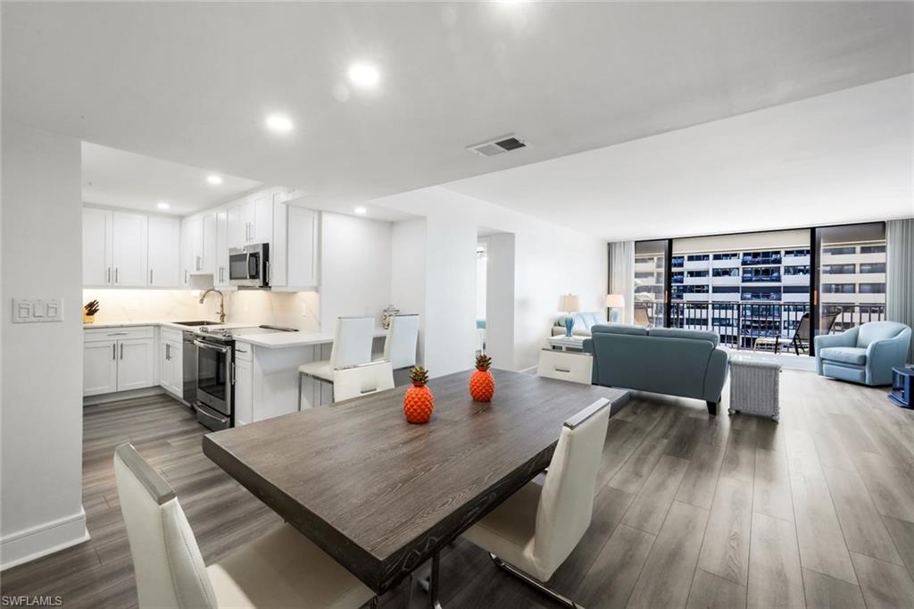 Upon entering, you are greeted by a welcoming atmosphere, where the salty breezes and toes in the sand beach access creates an instant sense of relaxation. The living area, bathed in natural light streaming through sliding glass doors to your private balcony allowing you to bask in breathtaking sunsets with Southwestern exposure. Modern design elements are seamlessly integrated throughout the interior, offering a stylish and contemporary living space waiting for you to add your personal finishing touches. A fully equipped kitchen invites culinary creativity, offering modern appliances and ample storage space for all your beachside dining essentials. The primary suite offers a peaceful sanctuary accented by quartz counters, a marble surround, & dual sinks. Discover the perfect blend of beachside living and easy access to everything Naples offers. Gulfside is perfectly positioned on the picturesque sugar sand beaches of the Gulf while walking distance to waterfront dining, and boutique shopping at the Village on Venetian Bay. The Waterside Shops, including Saks and other luxury venues, are only 1.5 mile away, while superb shopping and restaurants on Naples' 5th Avenue are just a 10-minute drive. Don't wait to enjoy your very own slice of paradise!