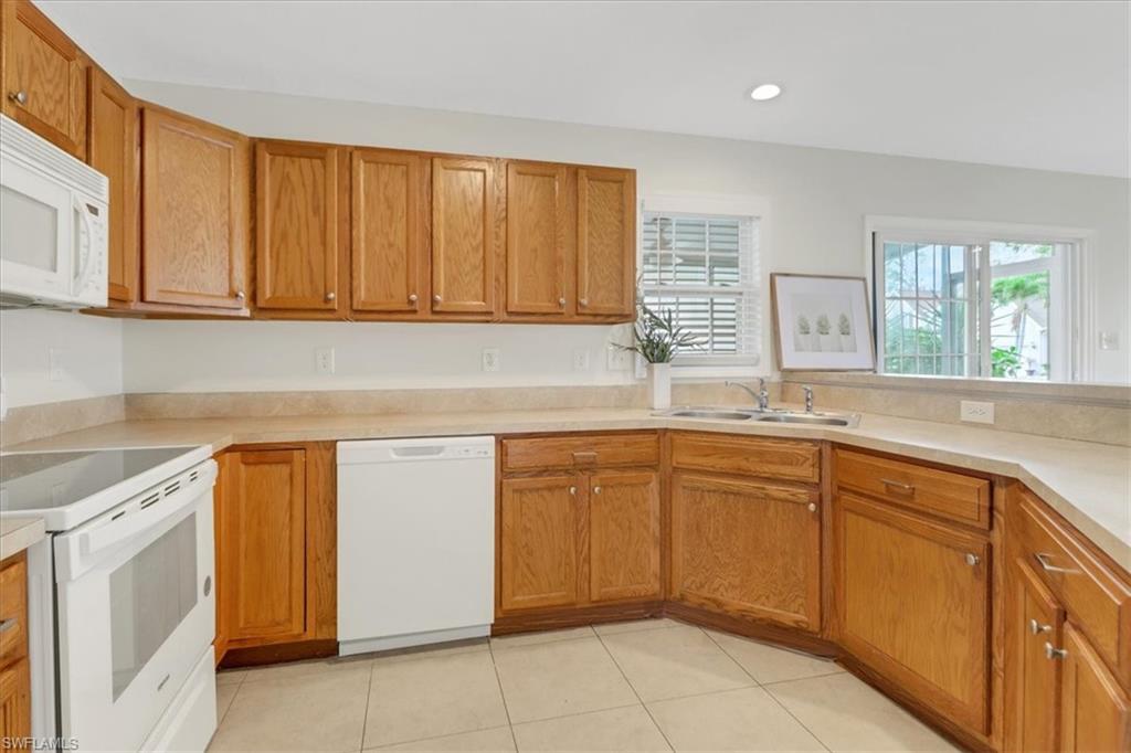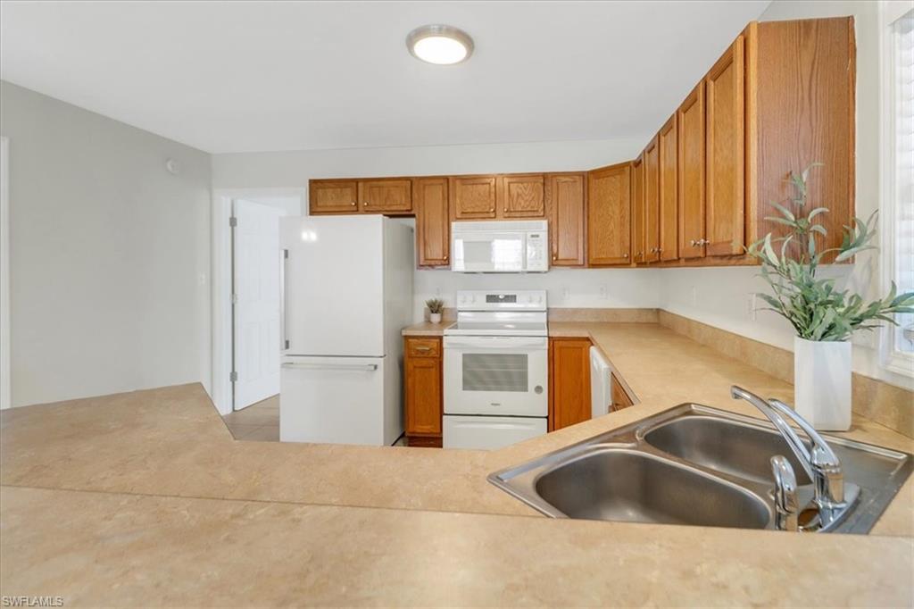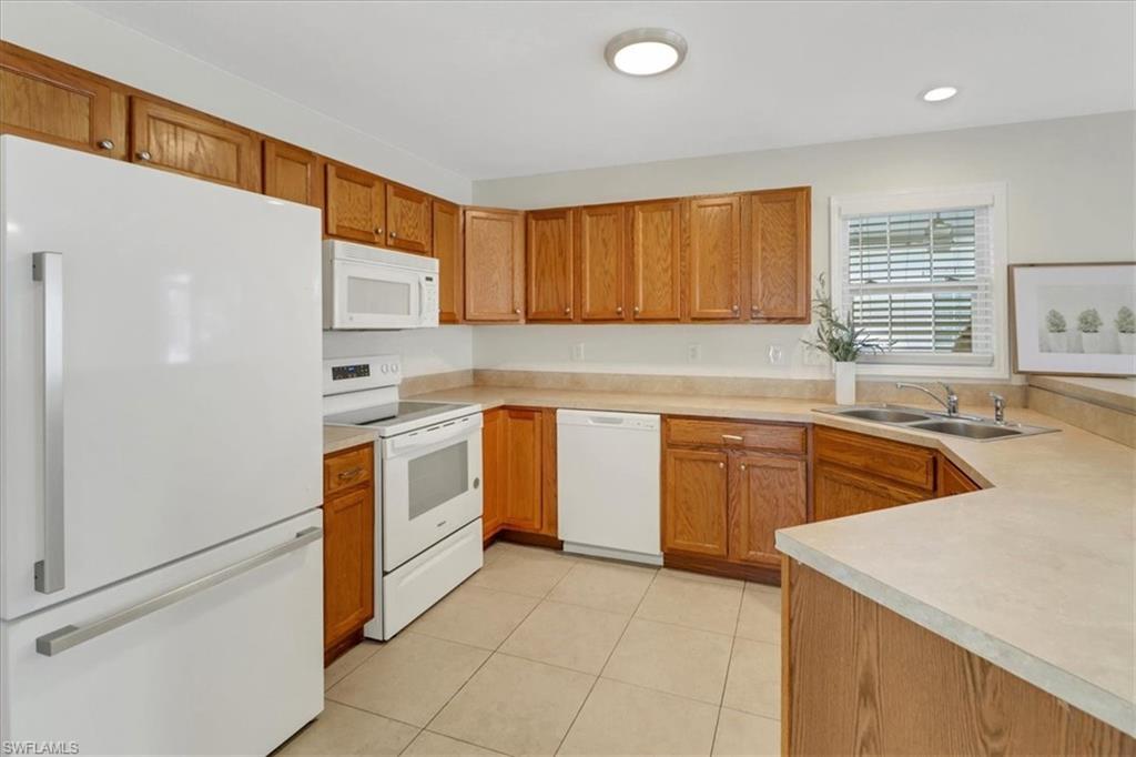 Nature lovers' welcome home to your own private oasis nestled in the charming community of Leawood Lakes! Lots of natural light flows through this spacious 2 bedroom/2 bathroom single family home. The home has a neutral palette of tiled floor throughout and fresh paint to go with any color scheme. A brand new roof (2025) and gutters as well as brand new appliances including washer & dryer is a huge plus! A screened in lanai offers a place to relax and barbeque leading to the private fenced in backyard offering a beautiful view of the water, trees and bird life. Serenity now! Leawood Lakes also has low HOA fees that include a community pool, irrigation and lawncare. The community is centrally located in Naples and close to Fifth Avenue, beaches, restaurants, shopping and more!