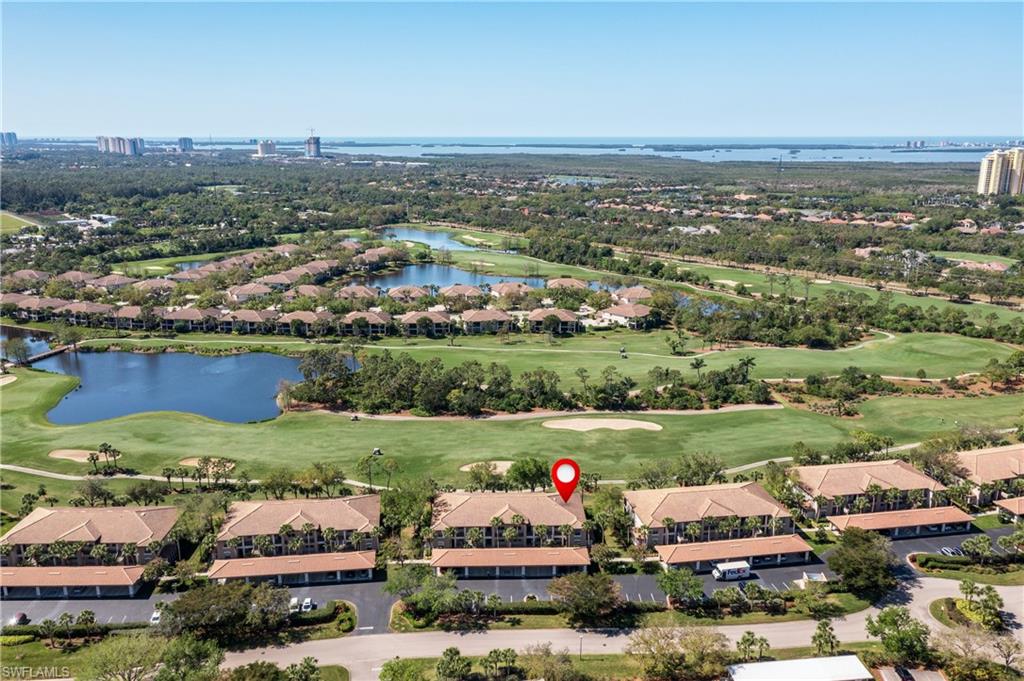 A beautiful unit with a gorgeous view of golf course and lake. This unit is steps from one of the 6 community pools. Enjoy spectacular sunset views from your lanai. The interior layout is just perfect for a winter get-away. Pelican Sound offers something for everyone, 27 holes of golf, award-winning club house for resort style dining or open air lounge with golf course view, updated racquet center for tennis, pickle ball. River Club pool complex offers a fabulous pool, bocce, children's play area and more. Local shopping is just minutes away - fabulous restaurants, shops, and entertainment. And, our airport is minutes away.