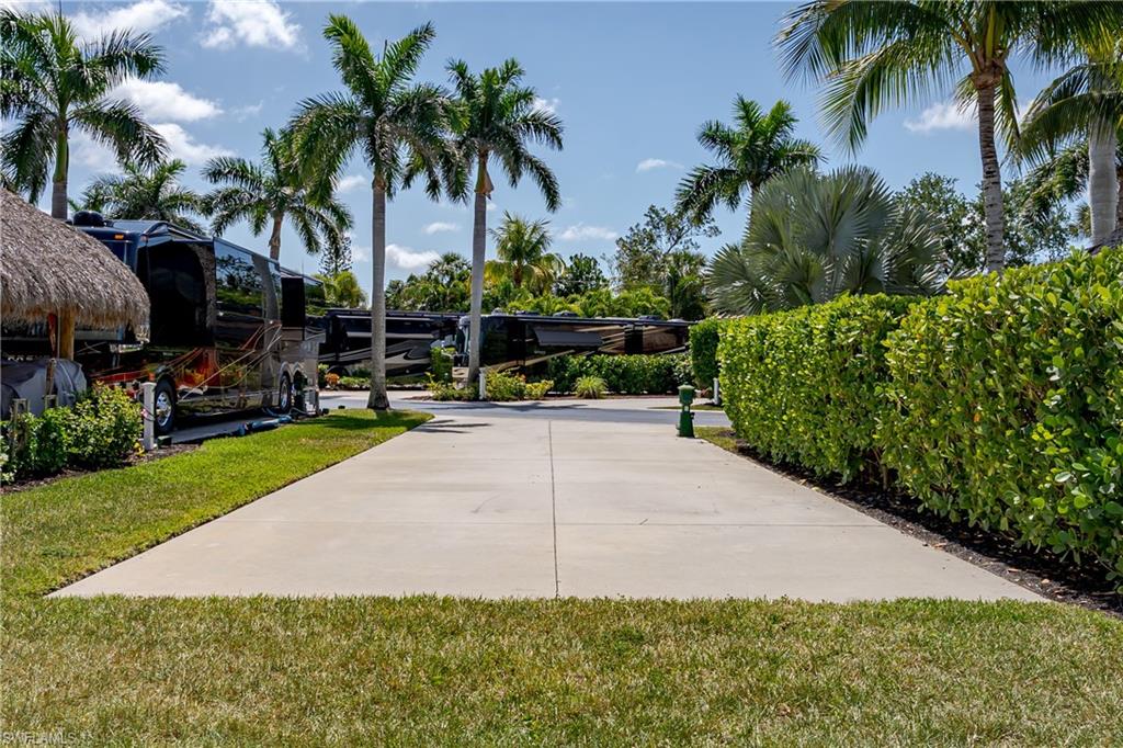 Lot 170 - You drive past the beautiful entry fountains to the gates of Naples Motorcoach Resort. As the gates open you marvel at the beautiful landscaping and fountain in front of the club house. As you turn down your Royal Palm lined street, you see your personal oasis. You pull in and you once again are in awe of the beautiful lakefront view almost perfectly centered on the majestic fountain. Past the fountain you see the beach that then leads to the pool and beautiful clubhouse. Your view is just spectacular. This year you decide to look at all of the beautiful properties that are paved and landscaped to draw from those ideas to design your own piece of paradise. You have a blank slate, do you want a tiki? a casita? a hardscape? all of the above? You are your own creator of your own version of paradise. But what did you do today? Well you took the community kayaks and launched them from the community boat ramp and went as far as the gulf and back. After all of that you decided a nice dip in the infinity pool and sauna is in order. Naples Motorcoach Resort is a Class A only resort and boasts a beautiful infinity pool, hot spa, exercise room, men's and ladies saunas as well as a kitchen that owners can use. There are also two satellite pools with a hot spa, their own rest rooms and a laundry room. We can't forget your furry best friend, the resort even has a dog park! Special note to investors, looking for a place to invest or reinvest as a 1031 exchange? Look no further, own this piece of paradise and put it into the management run rental program. The rental program administration advertises, schedules renters, collects payment including applicable taxes/fees and sends you your portion. These deeded lots are also mortgage eligible and available for a quick close.