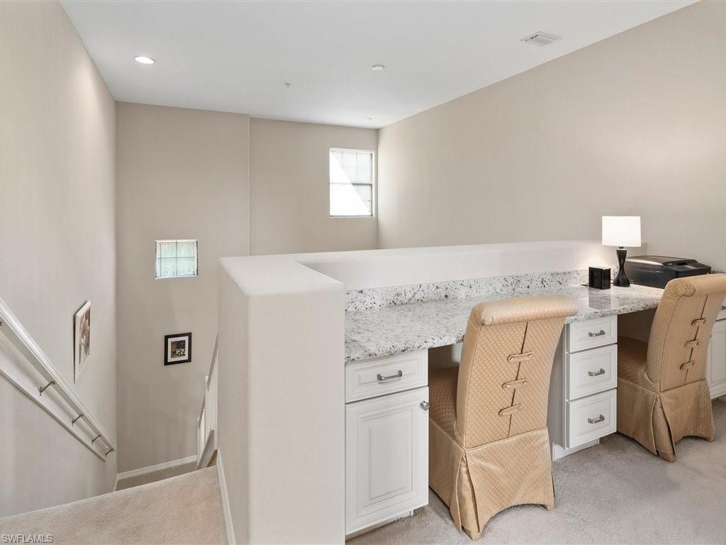 FORMER BUILDER’S MODEL! This highly sought-after Santa Isabella furnished two-story townhouse, built in 2015, offers a perfect blend of style, comfort, and convenience. Featuring 2 spacious bedrooms, 2 luxurious full bathrooms, plus a convenient 1st-floor powder room, this home is ideal for those seeking a low-maintenance, upscale lifestyle. The attached one-car garage provides ample storage and ease of access. Nestled on a tranquil quad, the property boasts a prime location with the front entry just steps from a serene fountain feature, creating a picturesque and welcoming ambiance. The quad also offers its own private free-form pool and BBQ area, just outside your back door, perfect for relaxing and entertaining guests. Step inside to discover an inviting open-concept design, highlighted by freshly painted soft neutral tones, large block tile laid on the diagonal, new carpeting and an abundance of natural light that creates a bright, airy atmosphere. The home showcases several premium builder upgrades, including elegant kitchen cabinetry, sleek granite countertops with a breakfast bar, high-end stainless steel appliances and sophisticated upgraded bathroom tiles and fixtures. Every detail has been carefully chosen to elevate your living experience. Enjoy the convenience of being just one block from Ole' Village, which offers fabulous amenities, including a tropical resort-style pool, 80-seat movie theater, fully-equipped fitness center, cozy pub, ice cream parlor, café, bocce court, basketball, tennis, sand volleyball, and more—all included as part of the condo association fees. Lely Resort is home to three championship golf courses and the world-renowned Players Club, offering optional memberships for those seeking a premium golfing experience. Located in an ideal Naples location, this property is only minutes from downtown shopping, dining, and the stunning beaches of Naples and Marco Island. Don't miss out on this incredible opportunity to own a piece of paradise—schedule your showing today!