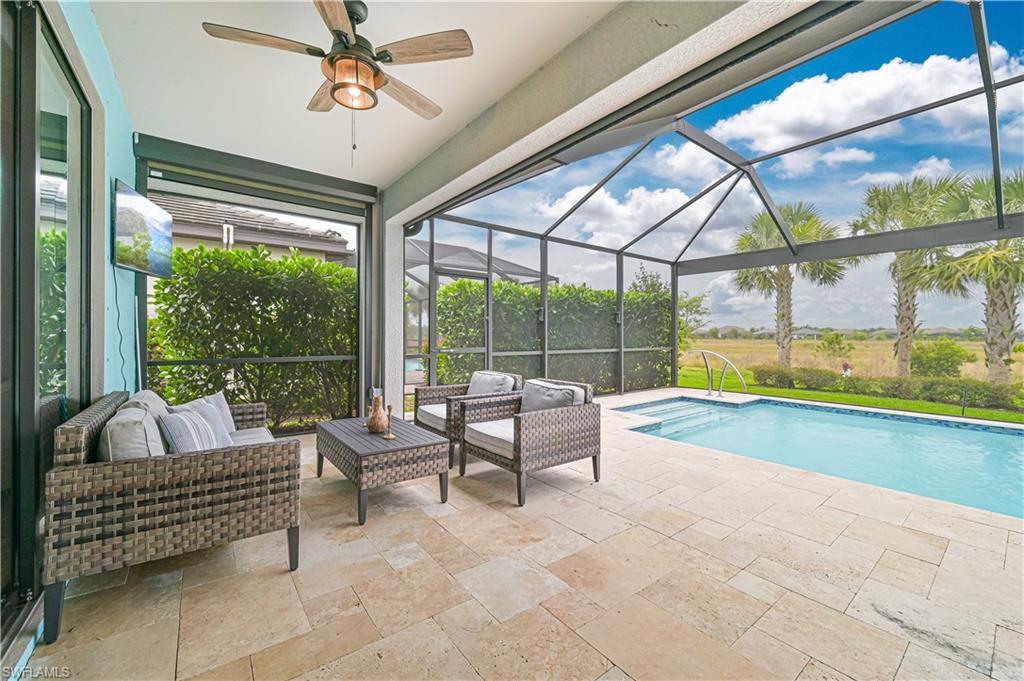 "MOTIVATED SELLER" "POOL HOME" Nestled in the prestigious Place at Corkscrew community in Estero, this stunning "Venice" model home is a true gem! Fully furnished and turnkey, it’s packed with upgrades that exude both elegance and practicality. Boasting automatic hurricane shutters on the lanai, accordion shutters on every window, diagonal tile flooring, and charming plantation shutters, no detail has been overlooked. A screened-in front entrance and professional custom landscaping ensure curb appeal, while travertine tile on the pool deck and a designer backsplash bring modern luxury to life. This home is move-in ready, priced competitively! Its unbeatable location places you just 20 minutes from the beach and 15 minutes from RSW Airport, Miromar Outlets, Hertz Arena, and a myriad of shops, dining, and entertainment options. The Place at Corkscrew offers an incredible array of amenities, including a community clubhouse, resort-style pool with waterfalls, spa/hot tub, a fully operating restaurant, dog park, exercise room, and courts for tennis, pickleball, and volleyball. Enjoy additional features like the cabana, business center, and more. This exceptional home provides an unparalleled blend of comfort, style, and convenience. Come and see it for yourself—you’re sure to fall in love!