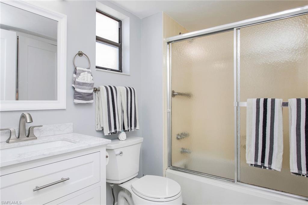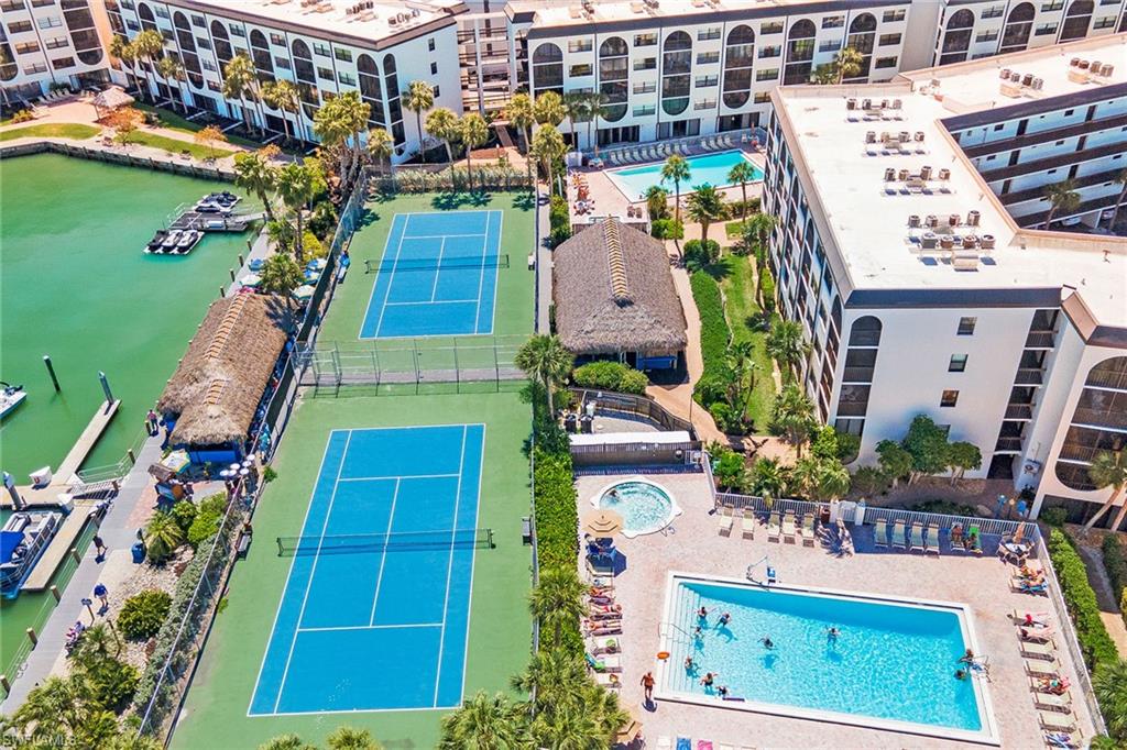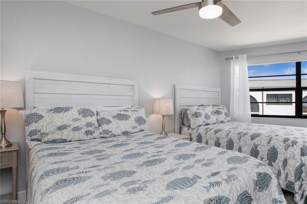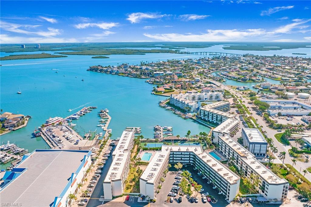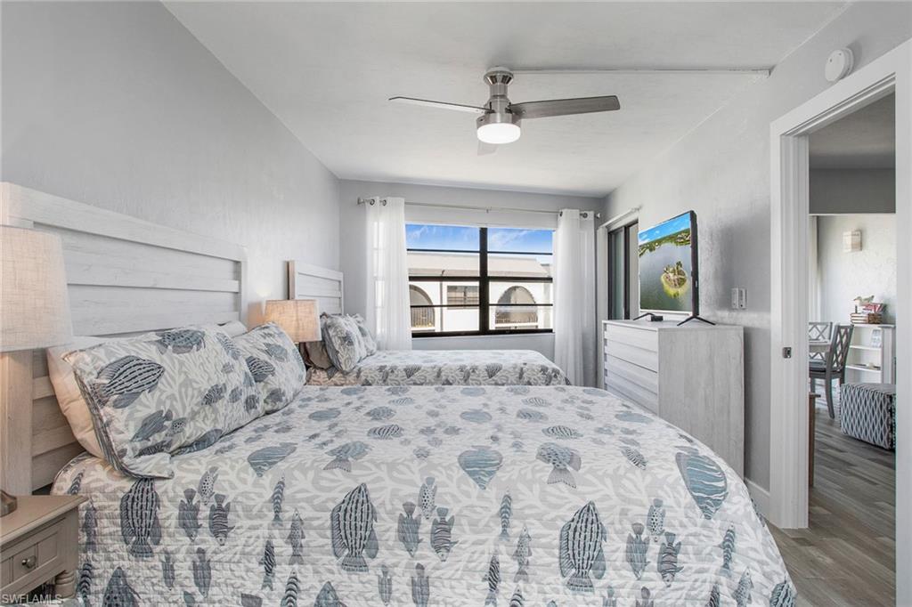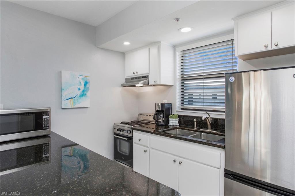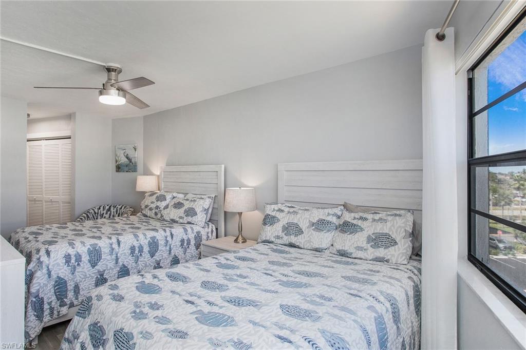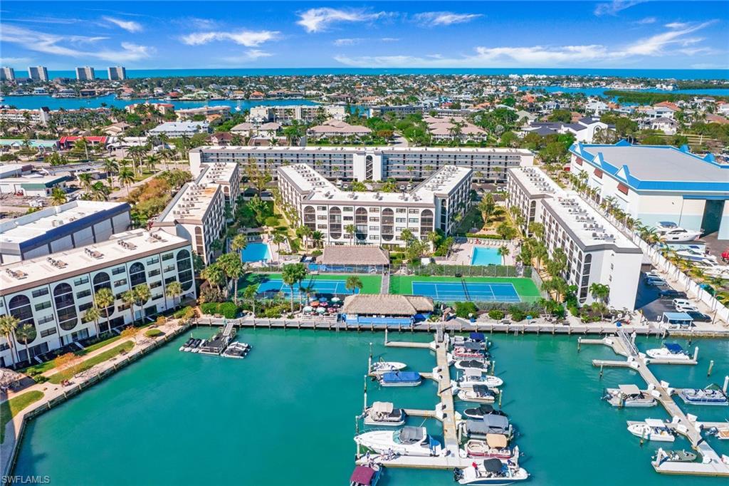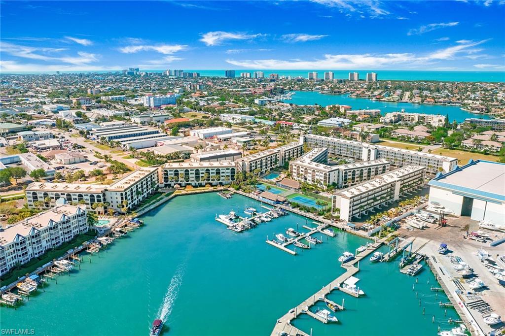 Motivated seller! Ready for a sunny coastal retreat to enjoy boating, fishing and the best Marco Island has to offer? Look no further. This charming, turnkey top-floor condominium at Angler's Cove in north Marco has it all. This one-bedroom, one-bath unit features new coastal wood plank LVM flooring throughout with no carpet, fresh paint, and a washer and dryer in unit. The kitchen has white cabinets, granite countertops and stainless-steel appliances. The water heater is 2018, the air conditioner is 2019. The screened living room has a serene view of Factory Bay and the north pool. Anglers Cove, adjacent to Rose Marina has direct gulf access and boat slips available for lease. The fishing pier, fish cleaning station and kayak storage will also appeal to water sports enthusiasts. But that's not all, there are resort-style amenities, two expansive pools with spas, two tennis courts, pickleball, shuffleboard and the beloved waterfront Dolphin Tiki restaurant and bar on-site. In addition, weekly rentals are welcome. This rare seven-day minimum rental policy provides excellent income potential for savvy investors. Angler's Cove's low condominium fees include all utilities such as electric, cable, internet, trash removal and water. This vibrant waterfront community is well-maintained, social and includes such conveniences as bike storage, a car wash station, a community room and more. Angler's Cove is moments from pristine beaches and in short distance of Marco Town Center which includes an array of shopping, dining and entertainment options.