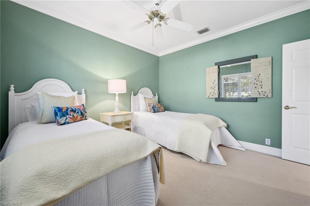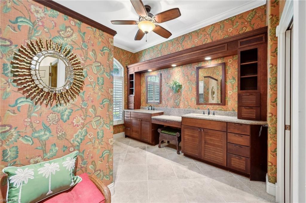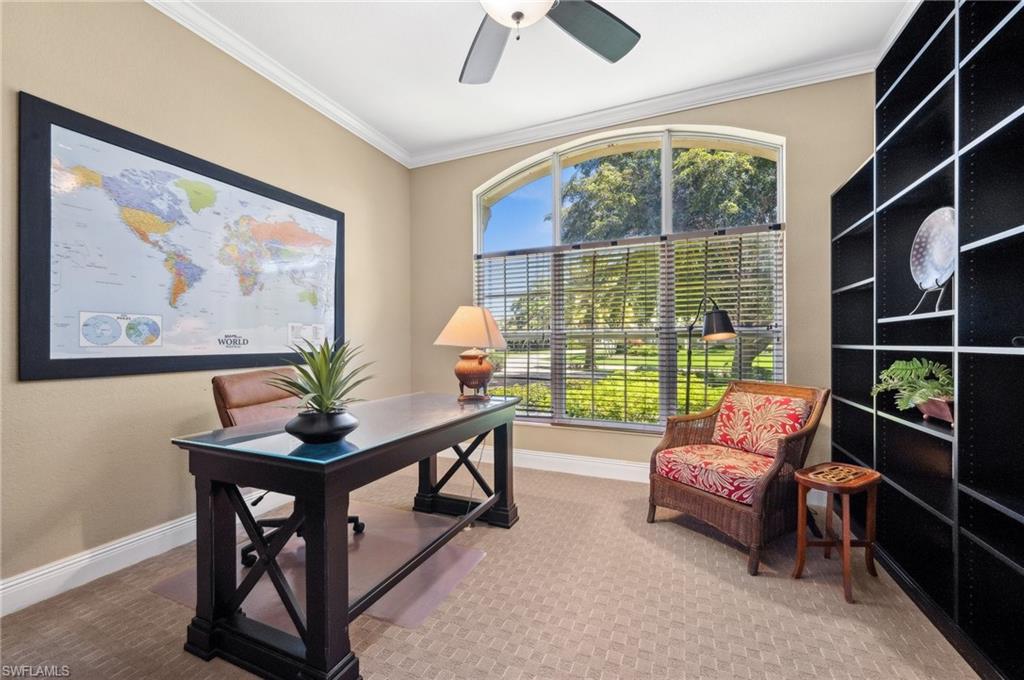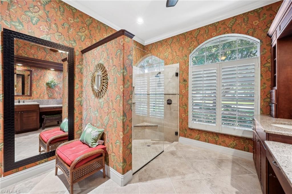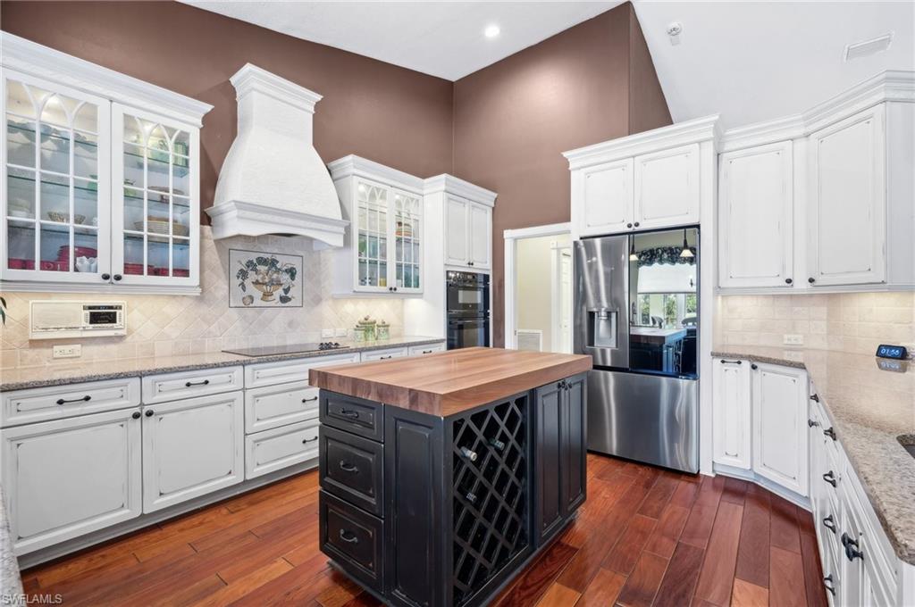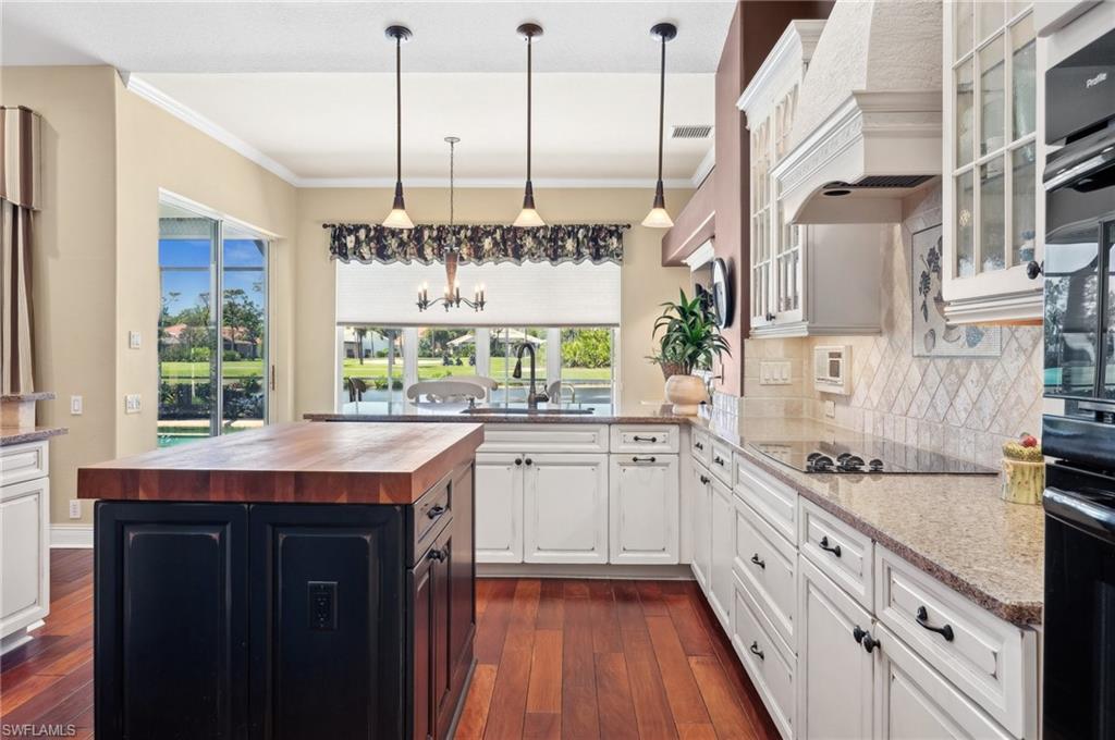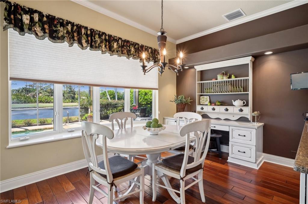 Virtual Tour Available | Welcome to 25090 Ridge Oak Drive, a custom-built Arthur Rutenberg masterpiece with unique poolside pavilion and designer finishes, featuring mesmerizing lake and golf views from oversize waterfront lot, located in The Ridge, one of Pelican Landing’s most intimate and esteemed estate home neighborhoods. Beyond decorative pavered circular drive and three-car garage, elegant glass-paneled front doors part to reveal a refreshingly open great room floor plan with cathedral ceilings and a wall of glass, through which one is immediately struck by the view: panoramic lake and golf views, with central decorative fountain and magnificent Florida wildlife. Distant golfers on Hurricane #2 provide a steady stream of entertainment, just far enough away so as not to sacrifice privacy. The lanai is especially noteworthy for its multiple seating areas including a covered lakefront pavilion, sheltered dining and outdoor kitchen, and extra-large pool deck with private pool and spa with Western sunset exposure—an entertainer’s dream. Luxurious shellstone paving tiles cover the entire outdoor living area, and pool is surfaced with desirable and upgraded Pebbletech finish. Inside, the floor plan revolves around a central great room open to lanai, kitchen, dining, and den/potential fourth bedroom. It features three generously sized suites with a split bedroom layout for additional privacy. Chef’s kitchen showcases all updated cabinetry throughout including decorative glass-faced uppers, dramatic butcher’s block central island, custom hood and tile work, 1 ½ wall oven, electric cooktop, and modern fridge with knock-on transparent door. Interior flooring is a combination of travertine, engineered hardwood, and plush carpeting. All three bathrooms have been tastefully updated. This move-in-ready home is currently being offered mostly furnished with only limited exclusions. ROOF (2017), HVAC (2020). Pelican Landing residents enjoy world-class amenities, including a 34-acre private island beach club, gulf access sailing, kayaking, and boat ramp, 12 Har-Tru tennis courts, pickleball, bocce, and a trainer-attended fitness center. Convenient location provides for a short ride to the South gate, community center, grocery store, pharmacy, and numerous casual and fine dining options without even venturing on to any major roads. Additionally, optional memberships are available at The Nest Golf Club, featuring 36 holes of championship golf and a newly renovated clubhouse. Waitlists due to high demand at The Nest may apply. This picturesque waterfront setting needs to be experienced in person to fully appreciate just how special it truly is. Schedule your private showing today.