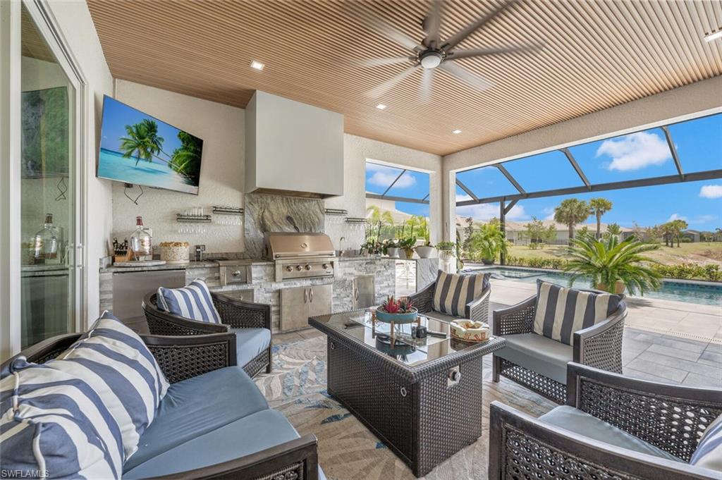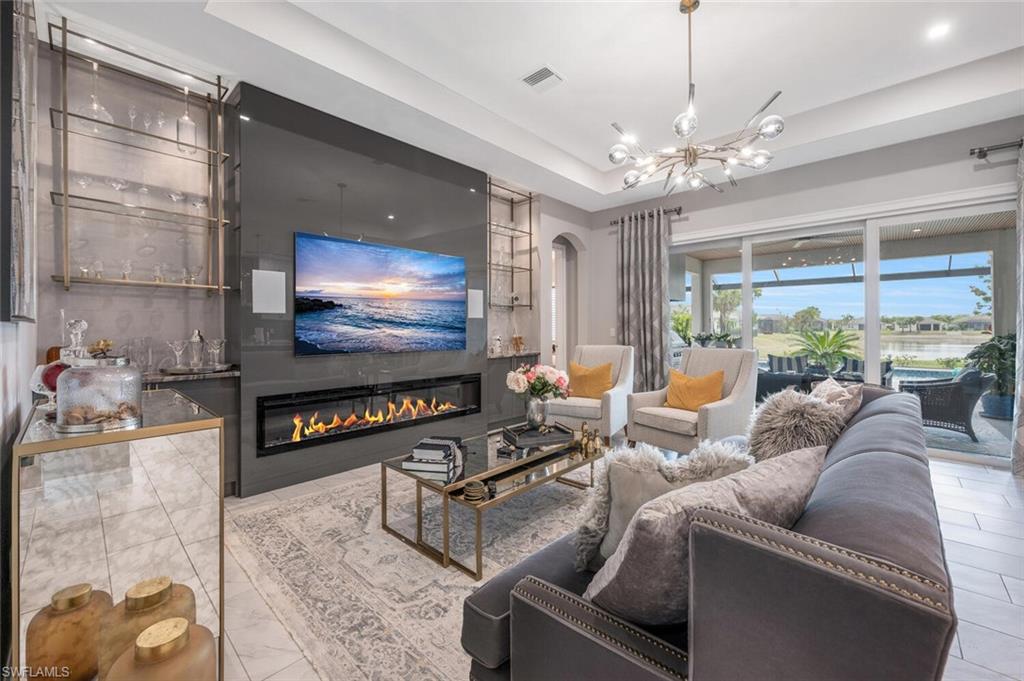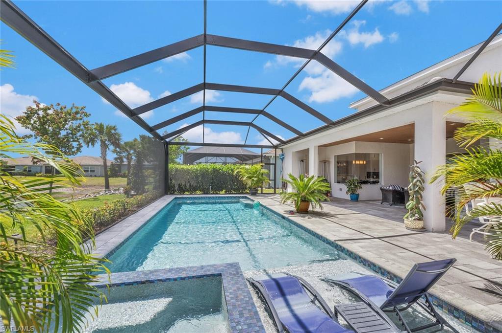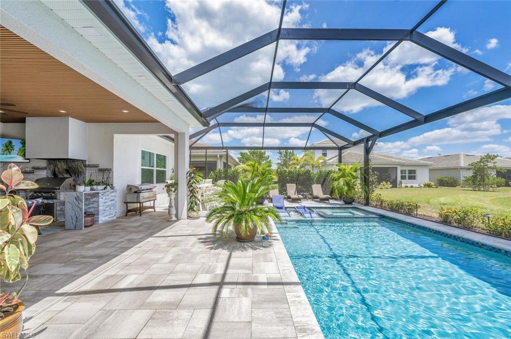 This freshly updated home is breathtaking! Every detail speaks to high-end luxury and thoughtful designs. This Two-story Easton Model Single Family Pool/Spa Home has: 4 Bedrooms plus loft, 4 full baths, 2 Half Baths and a 3-Car Garage with AC/Heating, Attic Stairs & Epoxy Flooring. Step into the elegant entry/foyer which leads to an expansive living room with tray ceilings and an Italian Custom fireplace and cabinets. Beautifully designed custom- made Cabinetry in the Kitchen, high end appliances, which includes a wine cooler, microwave drawer, entire water softener system and walk in pantry that will elevate the culinary experience. Many other charming features include: High quality Interior Paint, tile and laminate floors, Custom LED Brass-Finished Lighting, fixtures and custom blinds and closets in all of the bedrooms. The Owner’s Bath has Wallpaper Decor, Dual Sinks, Double Shower Heads, Bidet & Brass Fixtures. Laundry Room is equipped with Washer/Dryer, Cabinets, Backsplash, Laundry Tub & Dry-Cleaning Unit. The staircase with wood steps leads upstairs to the loft where you can gather around with your friends at the full wet Bar which has a wine and beverage center, custom Italian cabinets for extra storage and brass finish wall backsplash. It also has a full bathroom for easy access. Step outside to your private oasis, where a large covered lanai that has a PVC custom ceiling overlooks the screened in heated saltwater pool with a fountain and spa overlooking a Lake View for Ultimate Relaxation. Gorgeous Custom top-tier Sub-Zero outdoor summer Kitchen makes it an ideal venue for hosting family and guests. This home has Impact windows, newly installed landscaping lights in the front and back of the home and cameras in the entire house back and front. This home offers a perfect blend of elegance, comfort, and entertainment space. It feels like every feature was designed for both style and functionality, creating a true sanctuary. Seasons at Bonita is a gated community and for those who appreciate an active and social lifestyle, this community offers an array of amenities including: Clubhouse, Resort style pool with beach entry, lap lanes and ample sundeck, pool-side tiki hut, lounge chairs and an artificial white sand beach with hammocks for relaxing, Social room with a fully equipped kitchen, Nature trail, Fishing, Biking, Tennis, Bocce and Pickleball courts, Dog parks and Fitness center. Centrally located between Naples and Ft Myers, convenient to RSW airport.