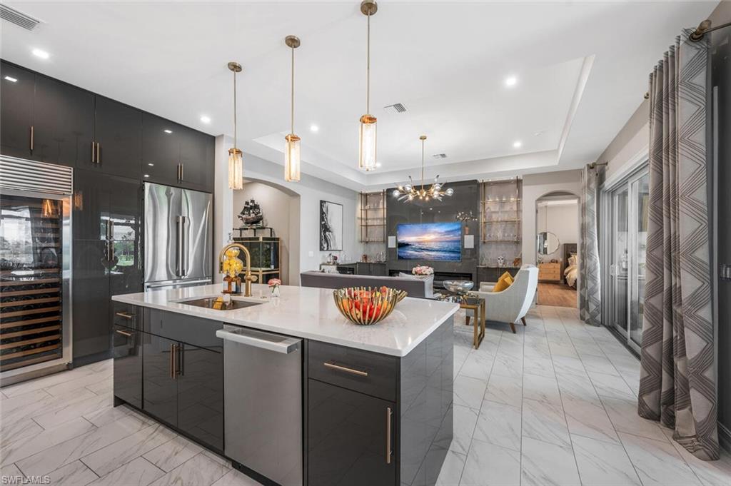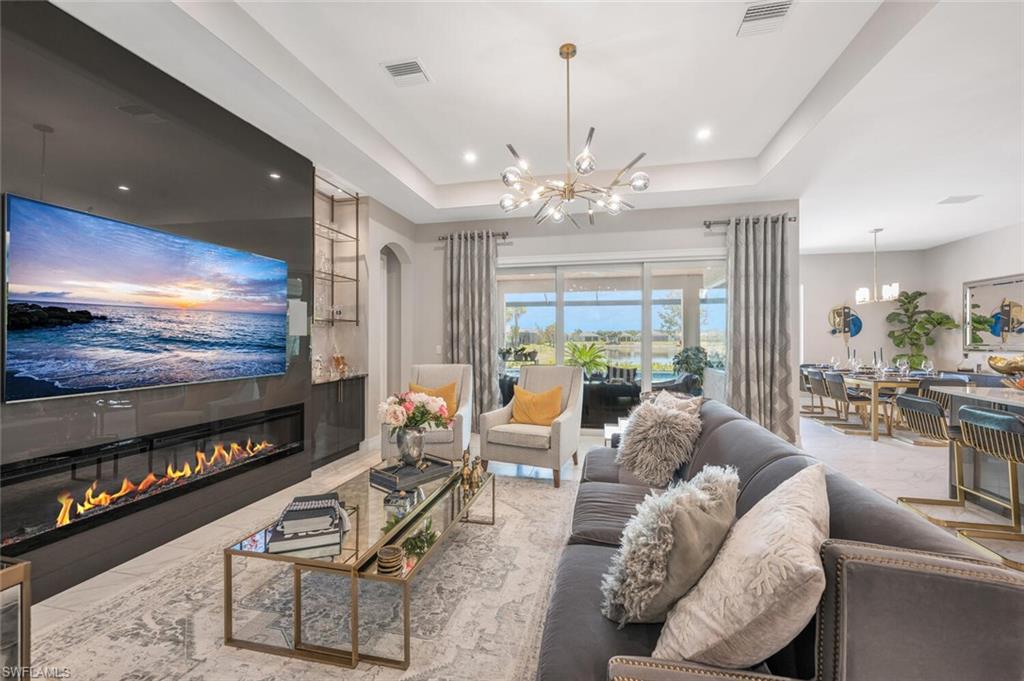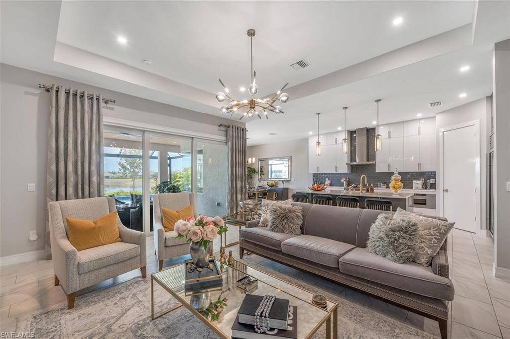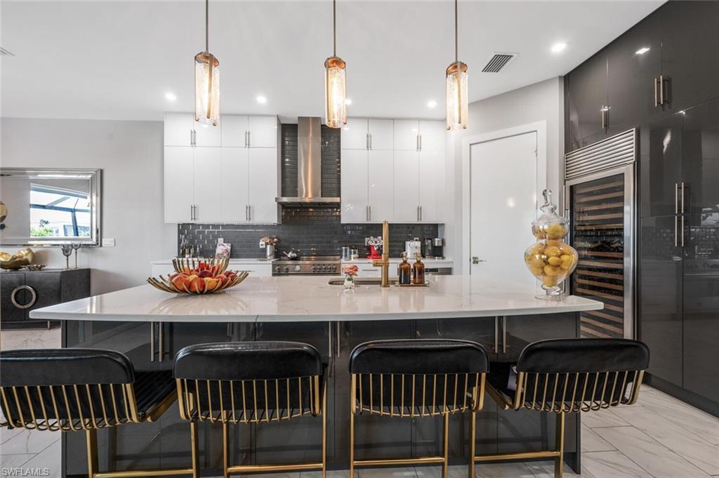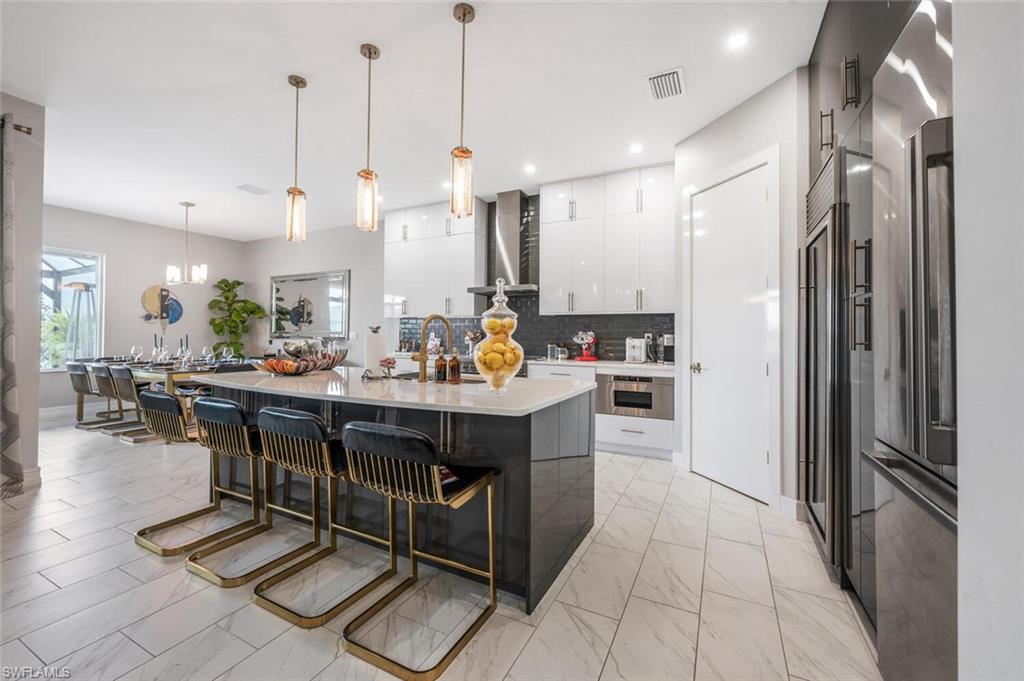 This freshly updated home is breathtaking! Every detail speaks to high-end luxury and thoughtful designs. This Two-story Easton Model Single Family Pool/Spa Home has: 4 Bedrooms plus loft, 4 full baths, 2 Half Baths and a 3-Car Garage with AC/Heating, Attic Stairs & Epoxy Flooring. Step into the elegant entry/foyer which leads to an expansive living room with tray ceilings and an Italian Custom fireplace and cabinets. Beautifully designed custom- made Cabinetry in the Kitchen, high end appliances, which includes a wine cooler, microwave drawer, entire water softener system and walk in pantry that will elevate the culinary experience. Many other charming features include: High quality Interior Paint, tile and laminate floors, Custom LED Brass-Finished Lighting, fixtures and custom blinds and closets in all of the bedrooms. The Owner’s Bath has Wallpaper Decor, Dual Sinks, Double Shower Heads, Bidet & Brass Fixtures. Laundry Room is equipped with Washer/Dryer, Cabinets, Backsplash, Laundry Tub & Dry-Cleaning Unit. The staircase with wood steps leads upstairs to the loft where you can gather around with your friends at the full wet Bar which has a wine and beverage center, custom Italian cabinets for extra storage and brass finish wall backsplash. It also has a full bathroom for easy access. Step outside to your private oasis, where a large covered lanai that has a PVC custom ceiling overlooks the screened in heated saltwater pool with a fountain and spa overlooking a Lake View for Ultimate Relaxation. Gorgeous Custom top-tier Sub-Zero outdoor summer Kitchen makes it an ideal venue for hosting family and guests. This home has Impact windows, newly installed landscaping lights in the front and back of the home and cameras in the entire house back and front. This home offers a perfect blend of elegance, comfort, and entertainment space. It feels like every feature was designed for both style and functionality, creating a true sanctuary. Seasons at Bonita is a gated community and for those who appreciate an active and social lifestyle, this community offers an array of amenities including: Clubhouse, Resort style pool with beach entry, lap lanes and ample sundeck, pool-side tiki hut, lounge chairs and an artificial white sand beach with hammocks for relaxing, Social room with a fully equipped kitchen, Nature trail, Fishing, Biking, Tennis, Bocce and Pickleball courts, Dog parks and Fitness center. Centrally located between Naples and Ft Myers, convenient to RSW airport.