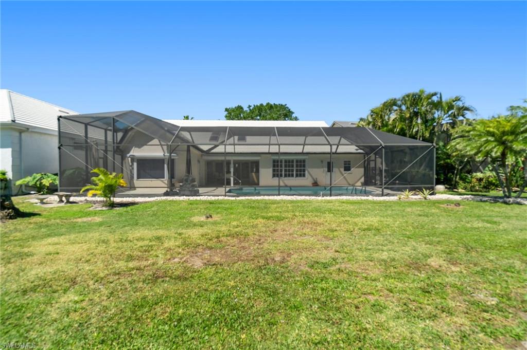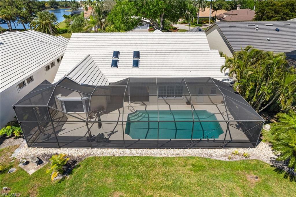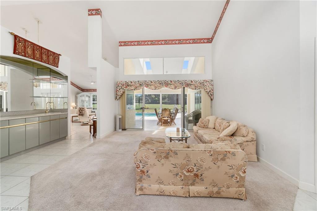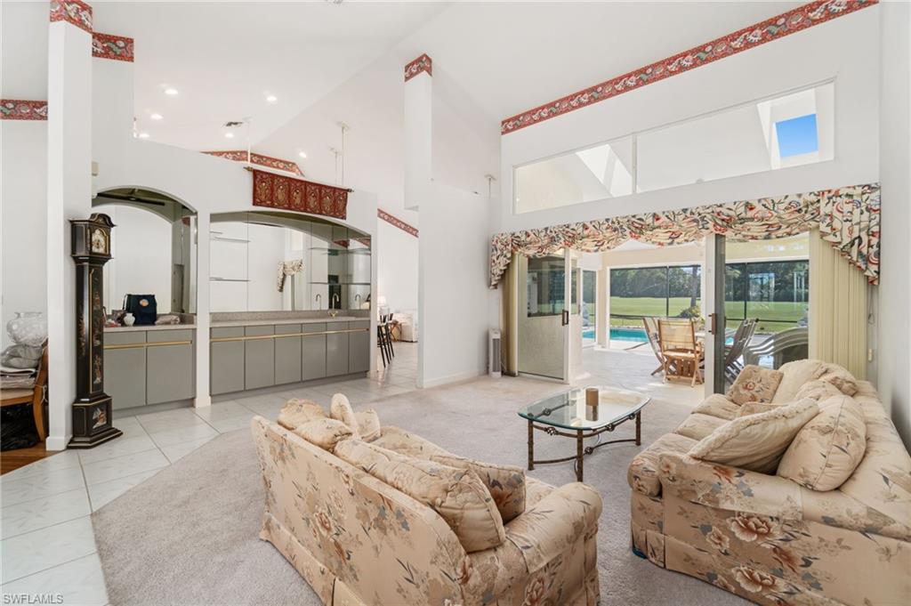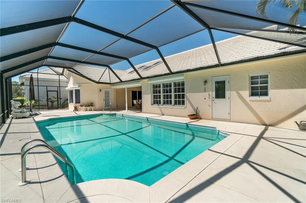 Nicely maintained home with sweeping golf course and lake views in the highly sought-after Audubon Golf & Country Club in North Naples. Spanning 3,125 square feet under air, this spacious home boasts 3 bedrooms + den, 3.5 bathrooms, 2-car garage + golf cart garage, soaring high ceilings, tile flooring, and a new roof (2017). Relax and unwind in your screened-in lanai complete with a large pool, ample space for lounging, and stunning golf course views. The generous primary suite offers private access to the lanai and a spacious ensuite bathroom with dual vanities, a large shower, and a separate soaking tub. This exceptional home is perfectly comfortable as it is OR is the perfect palette, with excellent bones, for cosmetic updates to your personal taste. “Audubon Golf & Country Club” offers unparalleled amenities, including 24-hour gated security, an 18-hole championship golf course, tennis, pickleball, a scenic Bayside boardwalk, and a newly renovated clubhouse with dining options. Residents also enjoy access to a brand-new, spectacular poolside club and café. Just 5 minutes from Mercato and Southwest Florida’s world-renowned beaches, this home provides the perfect blend of golf course living and ultimate convenience.