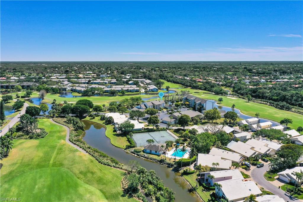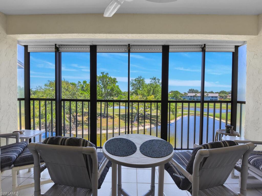 Amazing golf course & lake view! This third floor-end unit condo is being offered TURNKEY/Fully Furnished, making it really easy for you to start living the best of life SWFL has to offer. The home offers a comfortable layout w/ glass door at front entry, great room design, custom mirror wall, wet bar, formal dining area, kitchen w/ laundry closet/pantry & tray ceiling, spacious bedrooms both having walk-in closets, a vanity area in master bath, adjustable beds, hurricane impact grade windows throughout w/ custom window treatments & electric hurricane shutters on the lanai, long screened lanai w/ peaceful view, and a private detached 1-car garage. Meticulously maintained and updated w/ new roof in 2019, new garage door opener & hot water heater in 2024, new range & microwave in 2021, new washer/dryer in 2020, and new fridge in 2018. You will be only steps away from the community elevator, 1st garage to walk to, and a short walk to the community center. This community has lots of activities including optional golf membership, pool, two tennis courts, fitness center and a clubhouse. This gated community is highly sought out for having easy access to so much to do surrounding it, as well as for the country club setting it offers. Fantastic location in North Naples w/ easy access to many dining/entertainment options. Plus, Delnor Wiggins State Park and Barefoot Beach are just a few miles away.