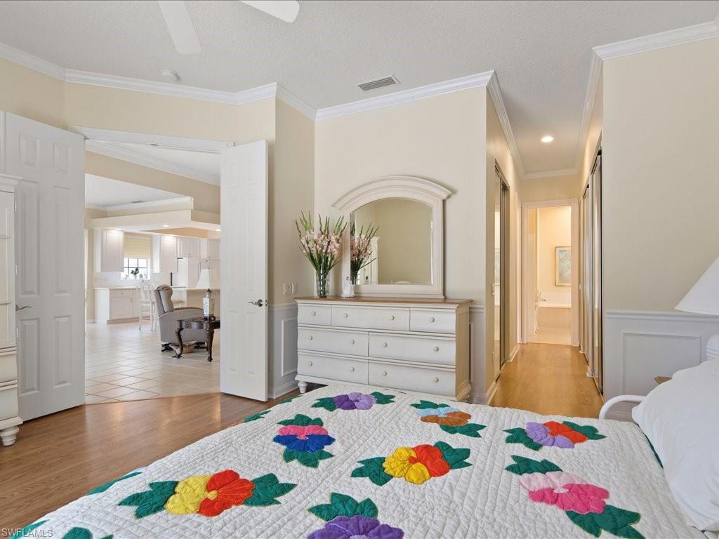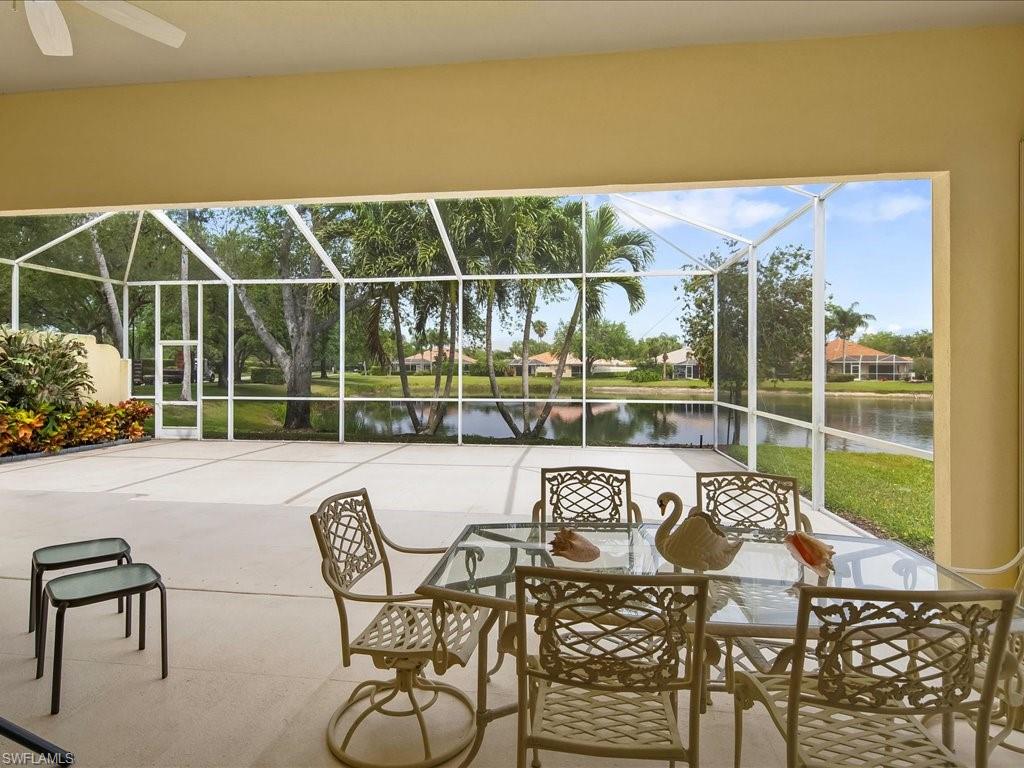 This quality built poured concrete DiVosta home is complete with an open floor plan offering an extended lanai with stunning views of the lake that will take your breath away. This home also offers an electric and manual hurricane shutters including newer appliances. The roof and gutters were replaced in 2018 with a new A/C unit installed in 2020. Island Walk is a beautiful gated community located in North Naples offering a Town Center with resort style amenities! You can enjoy many of these amenities such as, 7 tennis courts, 4 pickle ball courts, bocce courts, lap and resort style pool, nail & hair salon, including a post office and gas station for your convenience plus a fabulous restaurant Casa Cotzelli. Come to Beautiful Naples and enjoy Paradise!