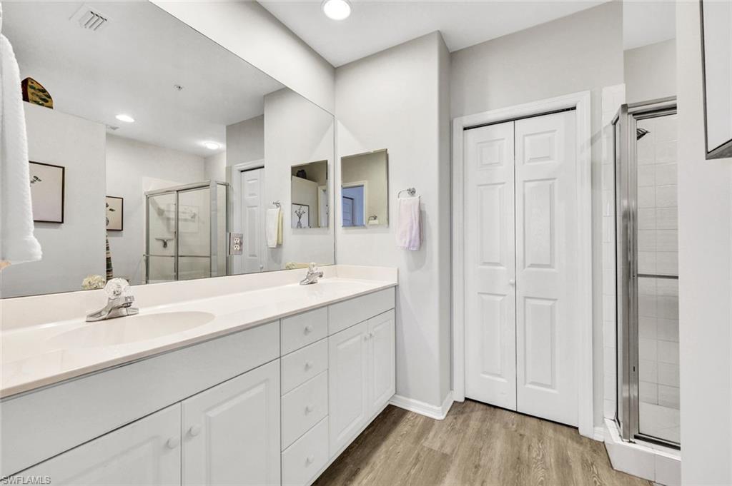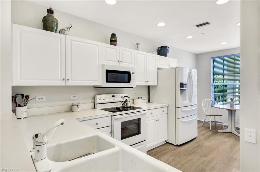 Enjoy long views of the 11th hole and two lakes from this third floor Hampton model. Just steps to one of the 3 satellite pools. Make this very well-maintained condo your own. It has higher ceilings and vinyl plank flooring in the kitchen, living areas and bathrooms. You will appreciate the many community amenities offered including bundled golf, with no waiting list to play, 3 satellite pools, a state-of-the-art fitness center with optional classes, massage services and physical therapy, and Har-Tru tennis courts where you can also play pickleball. Enjoy al fresco dining at the Terrace Café as well as casual and fine dining, or a drink with friends at the clubhouse. The main pool area/activities complex have been rebuilt, with a new pool, spa, restrooms, and bocce courts. Vanderbilt Country Club is very social with many organized activities and golf groups.
