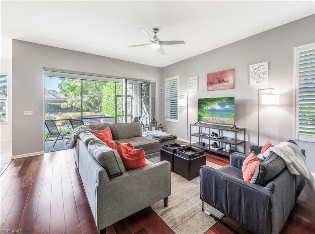 Your Opportunity to Have It All — Including a $20,000 Credit Toward a New Roof! Welcome to this stunning southern-exposure villa that perfectly blends tropical charm, privacy, and modern updates. Situated on an expansive end lot with a private driveway, this home features a spectacular outdoor patio oasis designed for relaxation and entertaining. Step outside to your covered lanai, complete with a brand-new enclosure (screens and cage bars) and Armor Screens for storm protection. Enjoy tranquil lakeside views, lush landscaping, and plenty of space to unwind with evening cocktails while taking in the gentle breezes and peaceful water views. Inside, you’ll find fresh, stylish updates throughout — including new stainless steel appliances, modern lighting and fans, and a fully renovated guest bathroom. The home also features a new Trane A/C, wood and tile flooring, plantation shutters, and new Levolor blinds, creating an elegant and comfortable living space. Enjoy whole-home storm protection with both panels and Armor Screens for added peace of mind. Located in the highly sought-after Autumn Woods community, residents enjoy resort-style amenities such as a sparkling pool and spa, tennis and pickleball courts, a fitness center, playground, and 26 acres of scenic preserves w/walking trails. Just minutes from Naples’ world-famous sugar sand beaches, Waterside Shops, and Mercato’s upscale dining & entertainment, this villa offers the ultimate in Florida living, where comfort, nature, and convenience come together beautifully. Don’t miss this opportunity — motivated seller offering $20,000 credit toward a new roof!