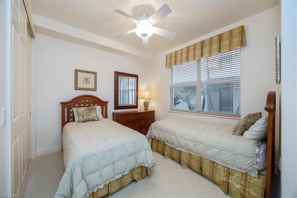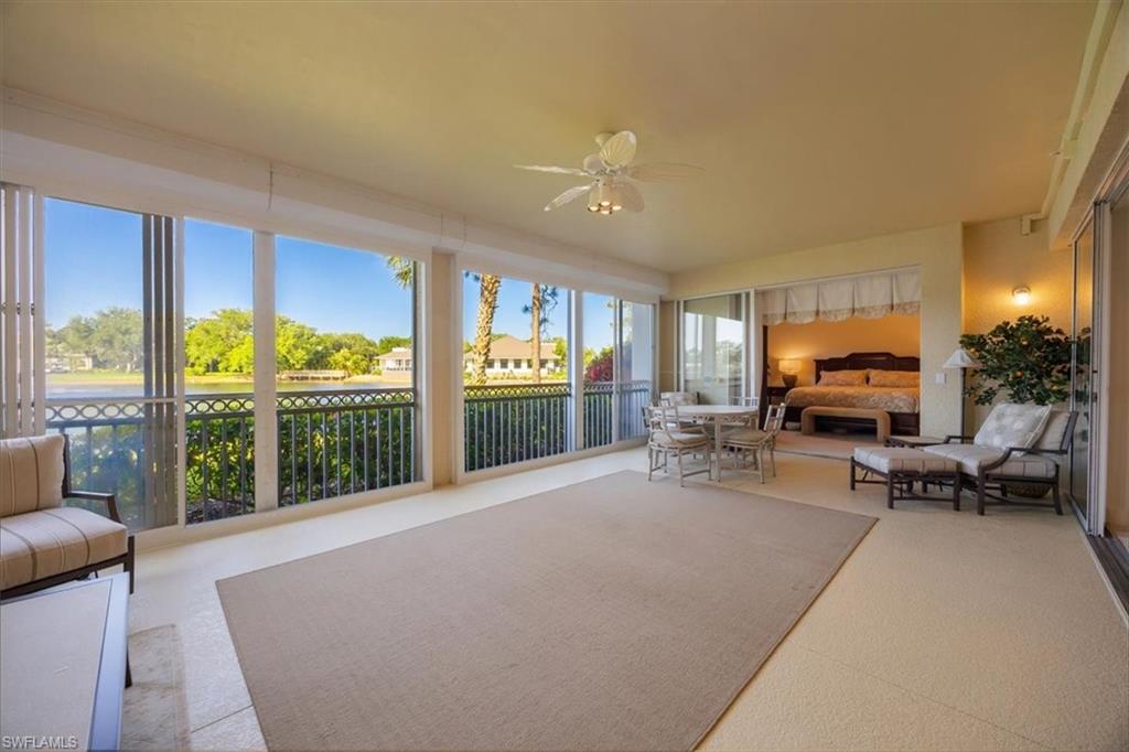 THIS FURNISHED 3BD /2BTH WATERFORD PLACE CONDO IN THE EXCLUSIVE EAGLE CREEK GOLF AND COUNTRY CLUB IS AVAILABLE NOW WITH A 1 CAR GARAGE AND STORAGE UNIT. This condo has a serene lake view with a bright open floor plan AND a great view of the Crystal Lake tranquil water fountain and the Crystal Lake Cafe. WITH OVER 2400sqft of living including the Grand 16’ X 28’ Lanai with HURRICANE SHUTTER PROTECTION, it is the perfect spot to relax with your early morning coffee or your favorite evening beverage. Furnished and decorated in soft neutral colors, this spacious first floor condo is available now to enjoy the Eagle Creek Country Club lifestyle. Great location! Just a short walk to the Main Clubhouse, Driving range and the state of the art FITNESS CENTER, Pool and Spa, OUTDOOR Sports Bar along with the tennis, PICKLEBALL, Bocce. If you enjoy the availability of walking a beautiful 18 hole championship golf course then Eagle Creek is where you want to be! Eagle Creek is a warm & friendly Golf and Tennis PICKLEBALL community with only 458 residences set on 300 acres of mature landscaping, close to shopping, beaches and fine restaurants. Social/Sports Membership is required with the purchase of this unique residence. PLEASE ASK ABOUT THE GOLF IN WAITING PROGRAM AND UPGRADE YOUR MEMBERSHIP TO PLAY GOLF ALL YEAR LONG Social Sports Members have Unlimited Golf access MAY 1 to NOV 30 and access to Golf Practice facilities all year Long