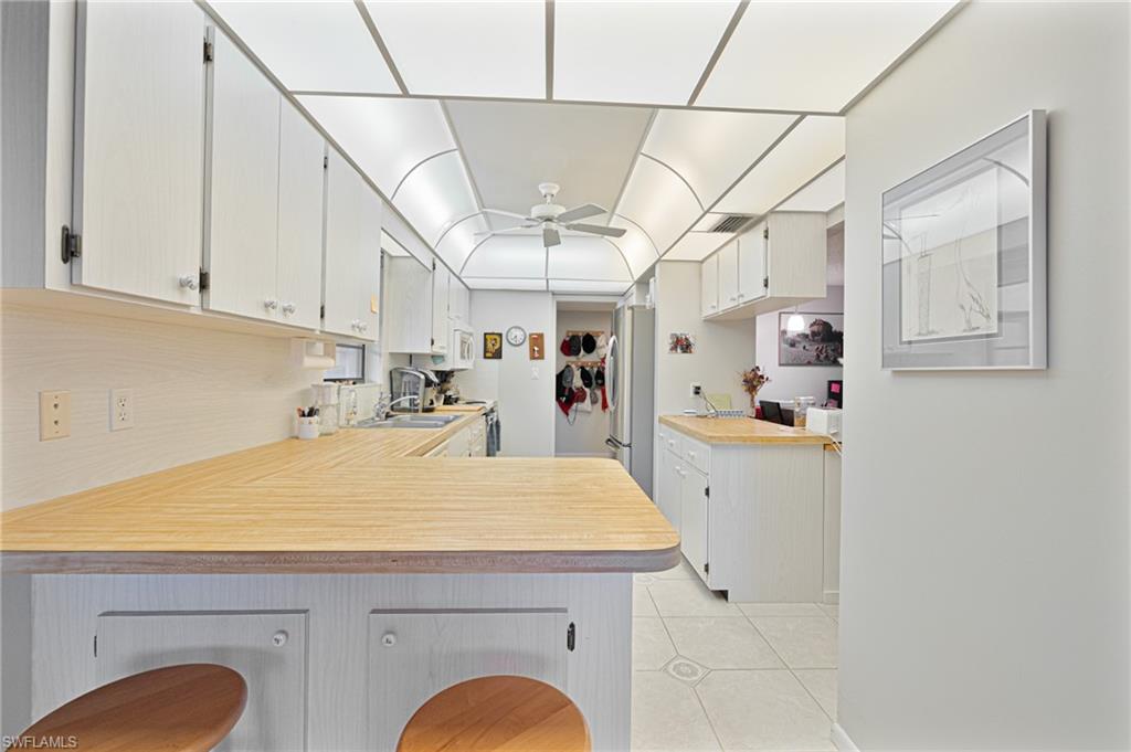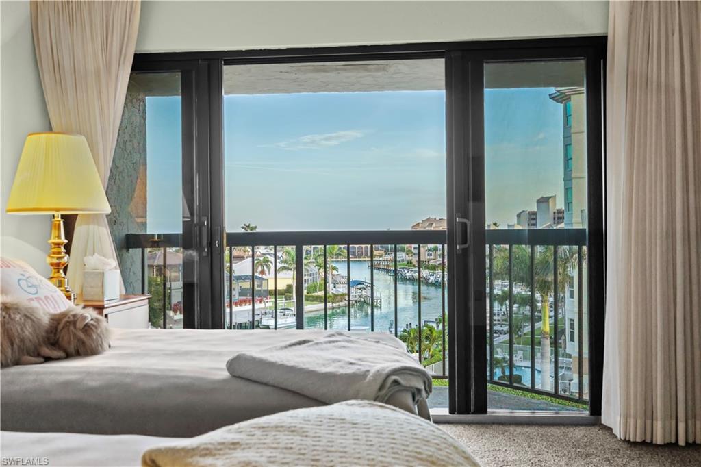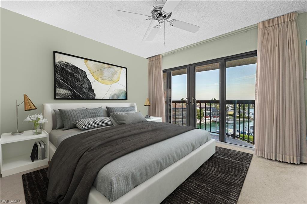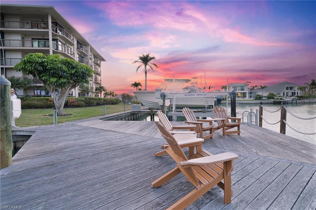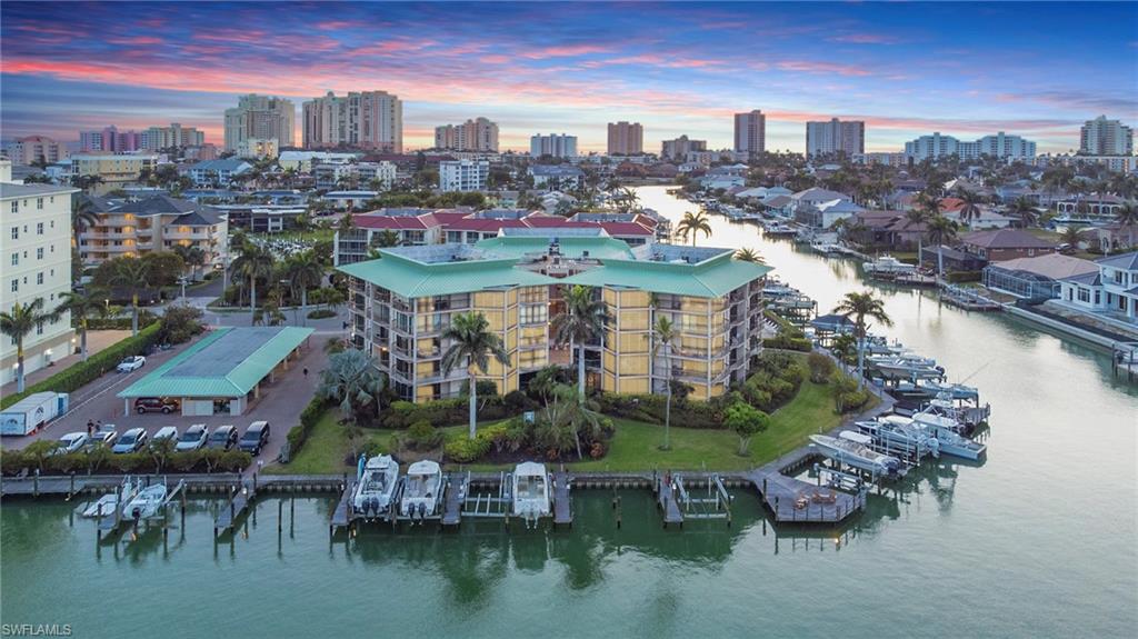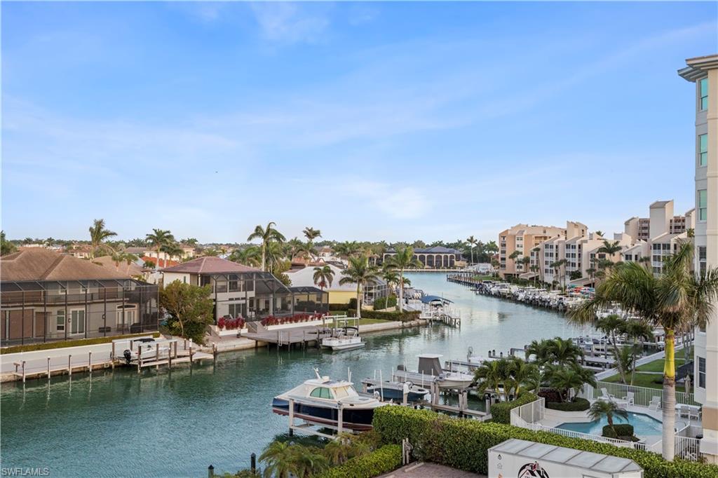 Live the ultimate waterfront lifestyle on Marco Island’s highly sought-after South End! This spacious top-floor condo offers the perfect combination of boating convenience and coastal living. Boaters will love the assigned finger dock and slip, with a boat slip immediately available and quick Gulf access through a no-wake channel. Plus, you’re just a short walk to the beach, making this the ideal spot for enjoying everything Marco Island has to offer. Located on the 5th floor, this unit offers 1,630 sq. ft. of living space featuring hurricane sliders throughout, an enclosed lanai with shutters, and limited-access balconies with beautiful street and water views. The bedrooms include blackout curtains and sheers for added privacy. Recent updates include a new AC system installed in December 2023 and a brand-new hot water tank installed in 2025, ensuring modern comfort and efficiency. The community offers a wide range of resort-style amenities, including an assigned covered parking space, a large swimming pool, exercise room and library, a social room with full appliances, a community ice maker and gas grill, kayak racks with a floating dock, a community workshop, assigned storage bins, and included cable and internet. While the unit retains its original cabinets, dishwasher, and stove, it offers a fantastic opportunity for customization to create the perfect personal retreat. Just minutes from Caxambas Park and Marco Island’s pristine beaches, this condo truly is a boater’s paradise with all the comforts of resort living. Some images in this listing are virtually staged and may not represent the actual property. Don’t miss out on this rare opportunity—schedule your private showing today!