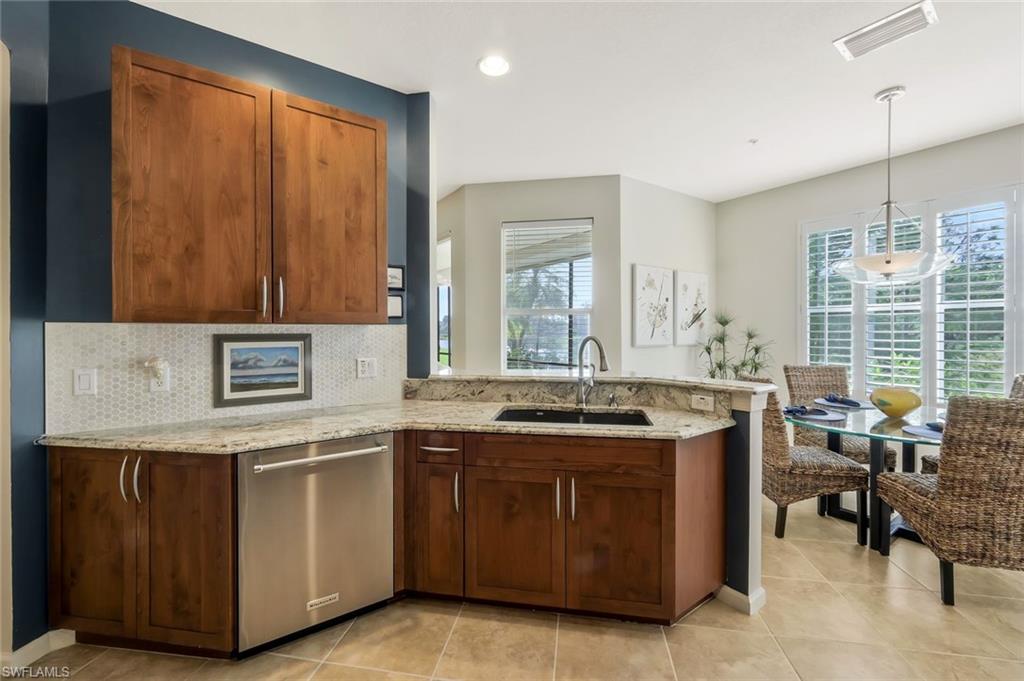 Welcome to this beautifully appointed end-unit home completely and stylishly furnished. From the time you pull up to this cul-de-sac property you feel the privacy and spaciousness of the entry and surroundings. As you enter the home you notice the Updated Decor and thoughtful details and inviting main living area with the warm and rich in style. The kitchen is perfection with gorgeous Wood Shaker Cabinetry and a light colored granite that sets off the kitchen with elegance. The appliances are newer Upgraded high-end Maytag and Kitchen-Aid, and the updated backsplash, fixtures and designer handles finish it off beautifully. There is a breakfast nook with Plantation Shutters and green view of outdoors and wildlife. The Rest of the home sports either stylish blinds or Plantation Shutters. The color scheme throughout the home displays current light color with touches of warmth. Hawthorne is NOT in a Gulf surge zone. The community is A “special Gem” in the heart of Bonita Springs and is by far one of the BEST LOCATIONS IN the area. There are two Entrances on each side of the community making commuting anywhere a breeze. You are minutes from any of your favorite locations - DOWNTOWN BONITA SPRINGS is filled with New Attractions such as the Roof top bar and food trucks, The Sugar Shack for Live Music and food, Riverside Park where you can enjoy special events such as 4th of July Fireworks, Church in the Park, Concerts and Art shows. Visit The SHANGRILA for events, brunch and local tours, Enjoy THE IMPERIAL RIVER for Kayaking, WONDER GARDENS, Coffee & Wine Bar on Old 41, Restaurants, bars & More. COMING SOON - THE SUGAR SHACK FOR FOOD AND MUSIC. BEACHES are 6.5 Miles, COCONUT POINT MALL IS 5MI, RSW AIRPORT ONLY 16mi., 30 minutes from 5th Ave in Naples, ONLY 3 Mi to the closest PUBLIX. There are 2 POOLS AND SPAS, and you are steps from the closest POOL. Enjoy TENNIS AND PICKLE BALL, 2 FITNESS AND COMMUNITY ROOMS, SOCIALLY ACTIVE W/bicycle group, book club, Card Groups, games, Clubhouse parties and events, offsite events, Cocktails and Conversations and more. HAWTHORNE SUFFERED MINIMAL STORM DAMAGE FOR IAN, HELENE OR MILTON.