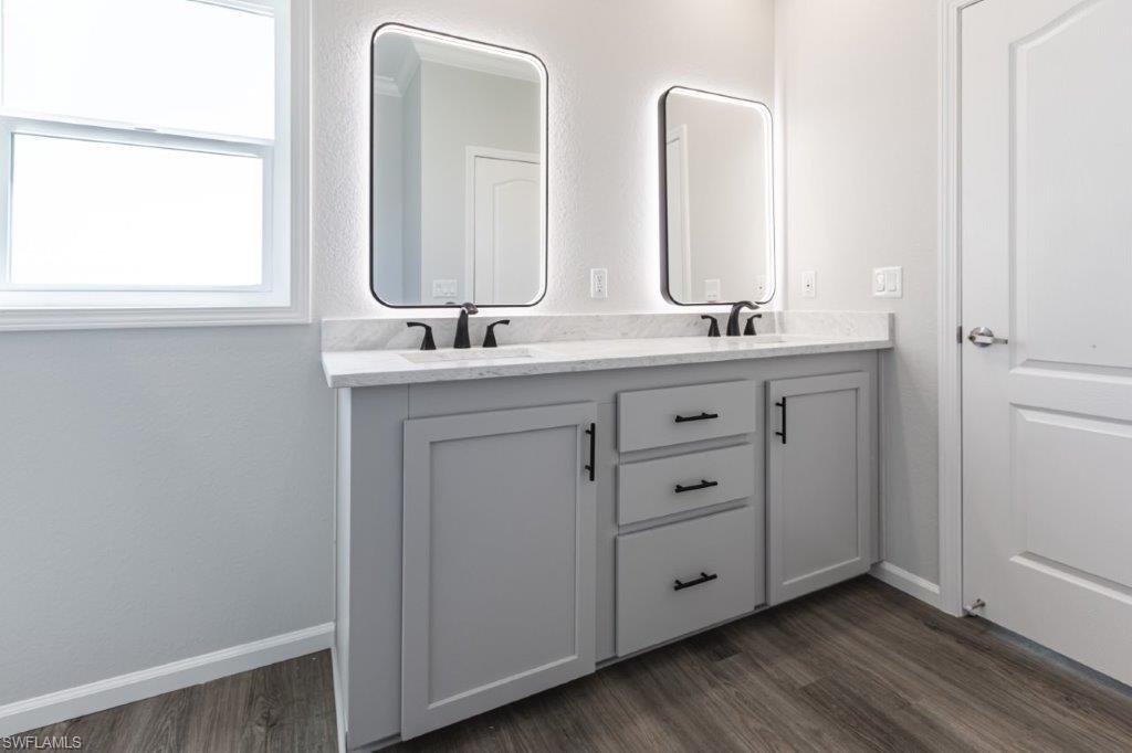 A stunning new construction home in the sought-after Bayside Estates community. Built in 2024, this beautifully designed 2-bedroom, 2-bathroom residence offers 1,300 square feet of modern coastal living in a prime Fort Myers Beach location. Step inside to an open and inviting floor plan, filled with natural light and contemporary finishes. The spacious kitchen features sleek cabinetry, quartz countertops, and ample counter space, seamlessly flowing into the dining and living areas—perfect for entertaining or relaxing. Luxury vinyl plank (LVP) flooring runs throughout the home, providing both durability and style. The well-appointed bedrooms provide comfort and privacy, while the thoughtfully designed bathrooms offer modern elegance. Impact windows and doors ensure peace of mind, while the metal roof adds both durability and a sleek, coastal aesthetic. Bayside Estates is a vibrant 55+ waterfront community, offering resort-style amenities, including a clubhouse, swimming pool, tennis courts, and direct Gulf access for boating enthusiasts. Just minutes from the beach, shopping, and dining, this home provides the ideal blend of luxury and convenience.