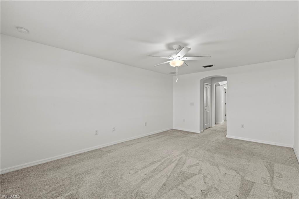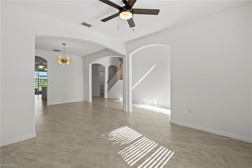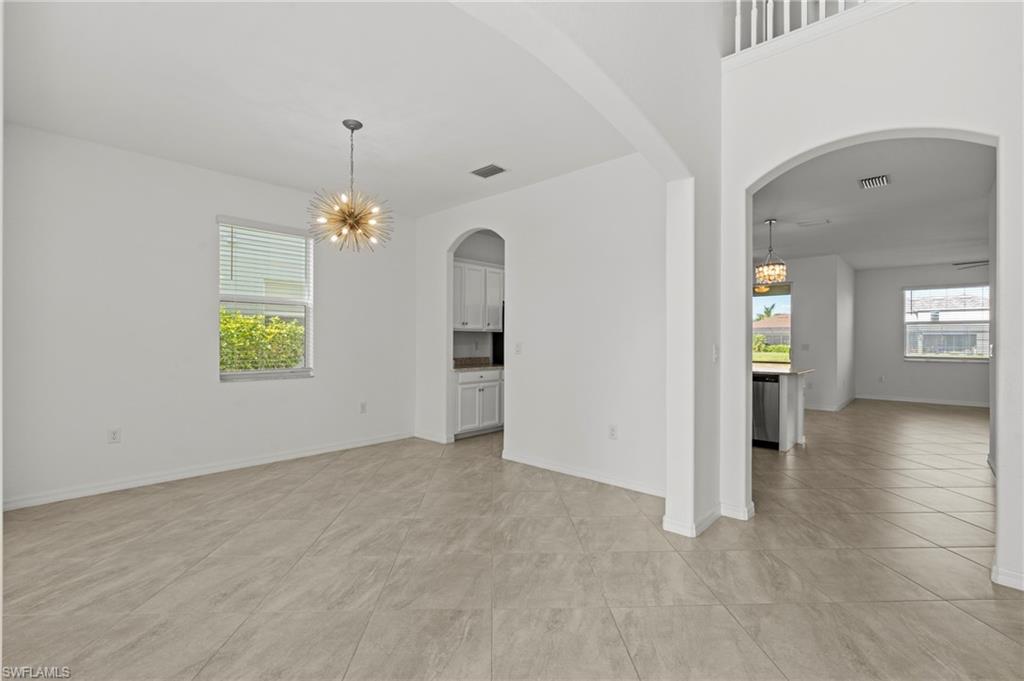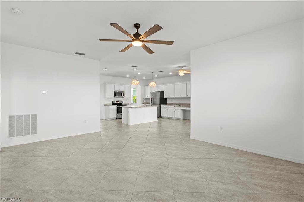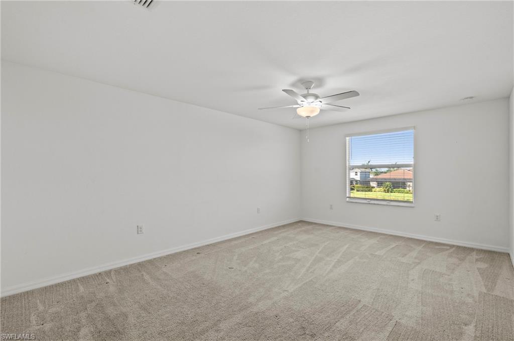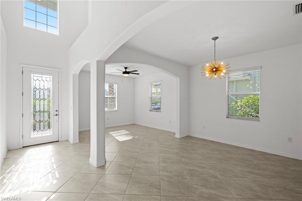 Just reduced $40,000, this nearly brand-new Monte Carlo model in Orange Blossom Ranch offers one of the largest and most affordable homes in Naples with an expansive 3,231 square feet of living space. This spacious 5 bedroom plus den, 3 bathroom, 3-car garage residence is completely turnkey and move-in ready, making it an exceptional opportunity for buyers seeking a Naples waterfront property at one of the lowest cost-per-square-foot values in the area. The home features soaring 20-foot ceilings at the entry, a bright and open floor plan, and beautiful rear western exposure with long lake views and spectacular sunset skies over the water. Perfect for entertaining or everyday living, this Naples lakefront home combines elegance and functionality. Orange Blossom Ranch is a premier gated community offering resort-style amenities including two pools, spas, a fitness center, tennis, pickleball, basketball, volleyball, fishing pier, and playgrounds. With water views, luxury finishes, and unmatched value, this waterfront property in Naples delivers the Active Florida lifestyle at an incredible price!