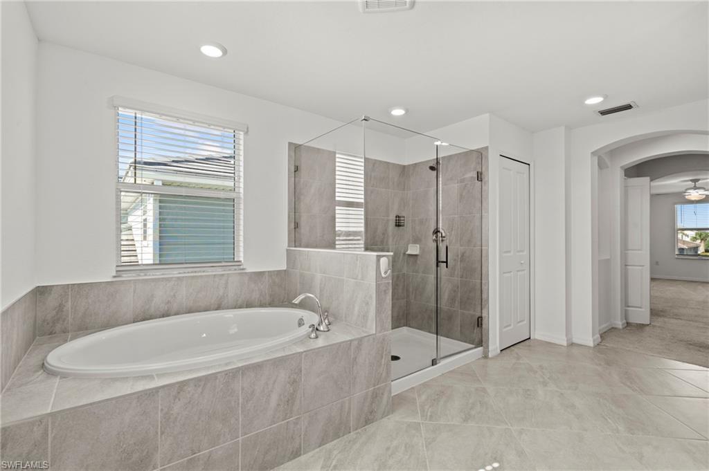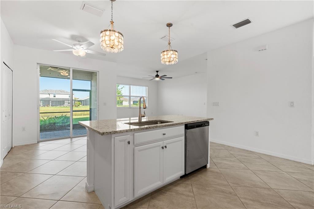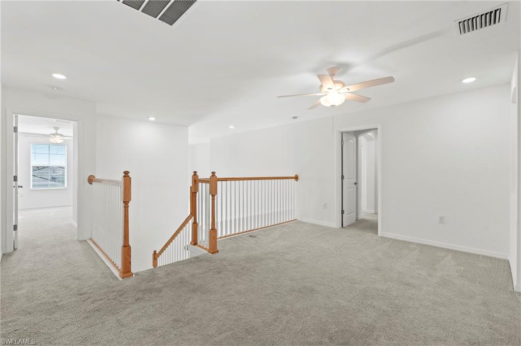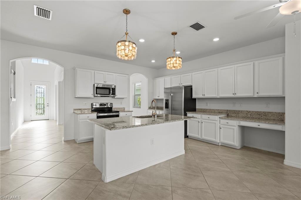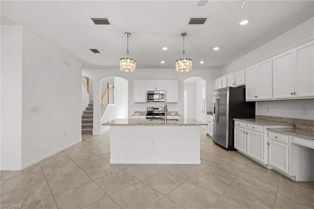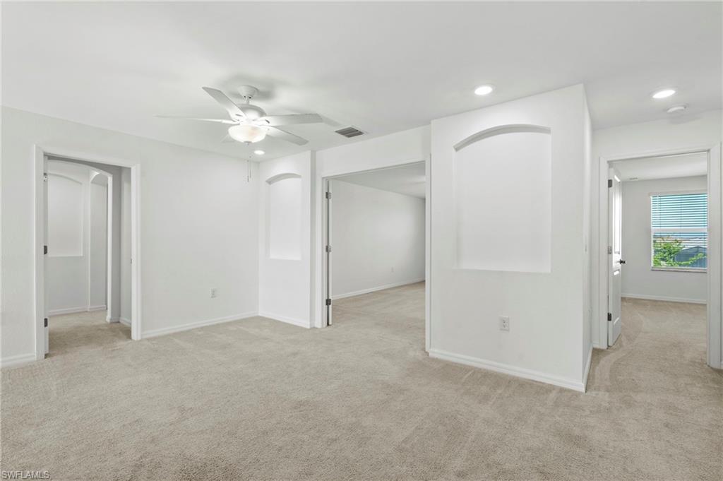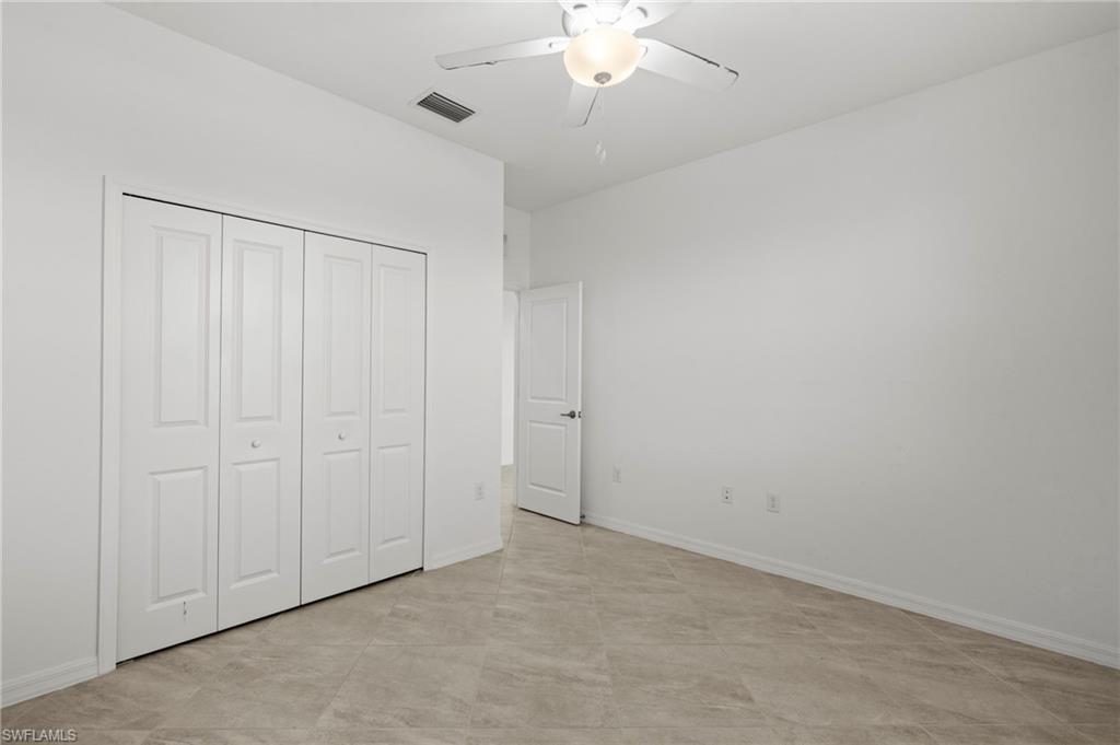 Just reduced $40,000, this nearly brand-new Monte Carlo model in Orange Blossom Ranch offers one of the largest and most affordable homes in Naples with an expansive 3,231 square feet of living space. This spacious 5 bedroom plus den, 3 bathroom, 3-car garage residence is completely turnkey and move-in ready, making it an exceptional opportunity for buyers seeking a Naples waterfront property at one of the lowest cost-per-square-foot values in the area. The home features soaring 20-foot ceilings at the entry, a bright and open floor plan, and beautiful rear western exposure with long lake views and spectacular sunset skies over the water. Perfect for entertaining or everyday living, this Naples lakefront home combines elegance and functionality. Orange Blossom Ranch is a premier gated community offering resort-style amenities including two pools, spas, a fitness center, tennis, pickleball, basketball, volleyball, fishing pier, and playgrounds. With water views, luxury finishes, and unmatched value, this waterfront property in Naples delivers the Active Florida lifestyle at an incredible price!