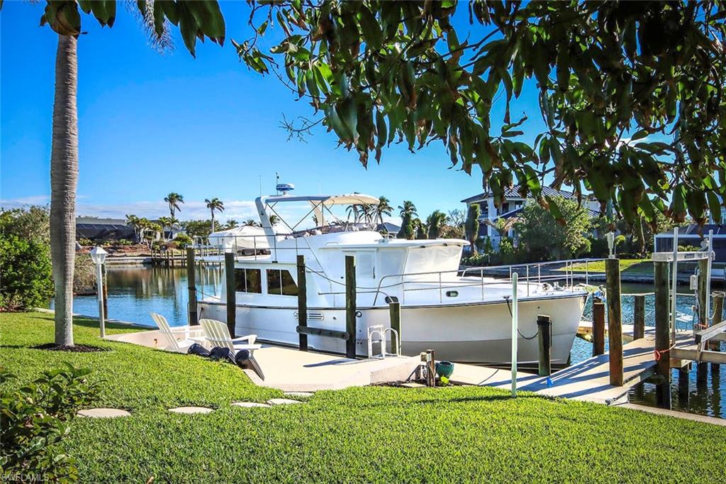 Nestled on a coveted deep-water canal basin on Sanibel Island, 877 Limpet Dr. is a boater’s paradise with luxury throughout. This elevated 3,286 sq. ft. home, remodeled in 2019 by Kennedy Const., blends modern elegance with functionality. This home is on a concrete seawall and boasts a 45ft slip designed for a 30K lb. lift, an adjacent 10K lb. lift for a fishing boat, and a 3-car-sized boat trailer garage alongside a 3-car-plus garage, both with A/C storage. Enjoy direct, no-bridge Gulf access in just 5 min. and with the services of the Sanibel Marina only 500 yds away, adventures begin at your doorstep. Inside, a great room opens to a chef’s kitchen with custom cabinetry and waterside dining area, perfect for entertaining. Other key features include European white oak floors, impact windows, powered storm shutters, a spacious rec area, pool, patio, and deeded beach parking and access a mile away. Additionally, this home has a 24KW Generac generator with two propane takes totaling 1250 gal. The 45 foot boat slip was designed for a 30K lift and has a pedestal with (2) 30amp and (2) 20amp outlets. The existing 10K lb. lift adjacent to slip has (2) 15amp outlets. Lower level has 3 mini-split units for A/C. Located on Sanibel's East end, this home is just 550 yards from Sanibel's Causeway Blvd and 1.5 miles from the Sanibel Lighthouse. Explore 25 miles of bike paths and J.N. "Ding" Darling Refuge. This waterfront gem offers unmatched design and boating amenities!