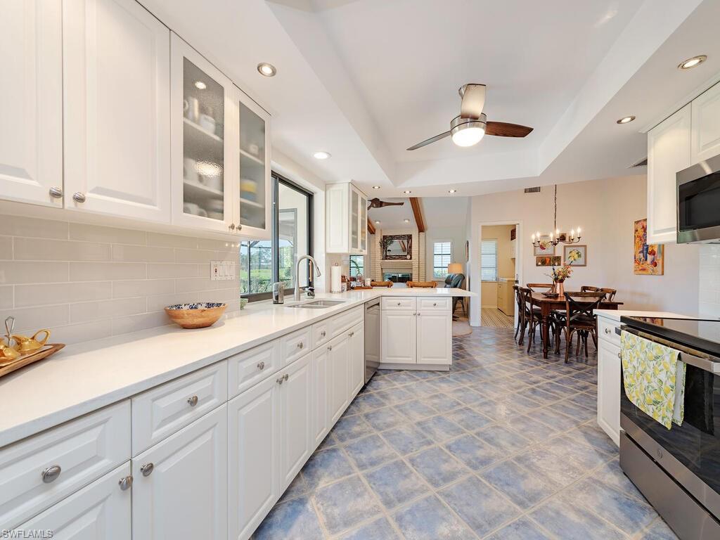 SELLER MOTIVATED Reasonable offers considered. Don't miss the opportunity to own the best value in Lely Country Club! This beautifully updated single-family home offers a perfect blend of luxury and comfort, featuring a gorgeous remodeled kitchen with white marbled quartz countertops and a stylish full backsplash. New in 2023, the kitchen appliances—microwave, stove, refrigerator, and dishwasher—ensure modern convenience. The pass-through window to the pool area makes entertaining easy, and the kitchen boasts both an eat-in area and a breakfast bar. The spacious family room is enhanced by a real wood-burning fireplace, soaring high ceilings, and plantation shutters, creating a cozy, inviting atmosphere. The master suite offers a private retreat, with sliding glass doors that open directly to the pool area. There are two guest bedrooms, one of which also features sliding glass doors leading to the pool. The pool bath has been updated with a new vanity and a comfort-height toilet, while the master bathroom has been thoughtfully remodeled with dual sinks, quartz countertops, a frameless shower, and a large soaking tub for ultimate relaxation. New Hot Water heater 4/21/25. Step outside to the expansive covered lanai, where you’ll find a stunning pool and spa—perfect for soaking up the sun or relaxing in the shade. Enjoy picturesque views of the golf course right from your backyard, making this an ideal spot for outdoor living. With a low HOA fee of just $225 per year, this home offers incredible value for anyone seeking a tranquil lifestyle in one of the most desirable communities in Naples. Schedule your private tour today!