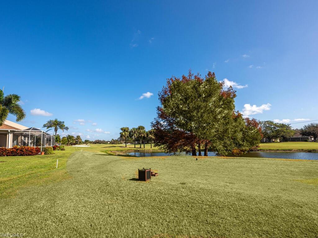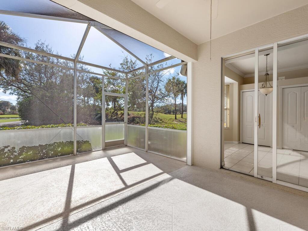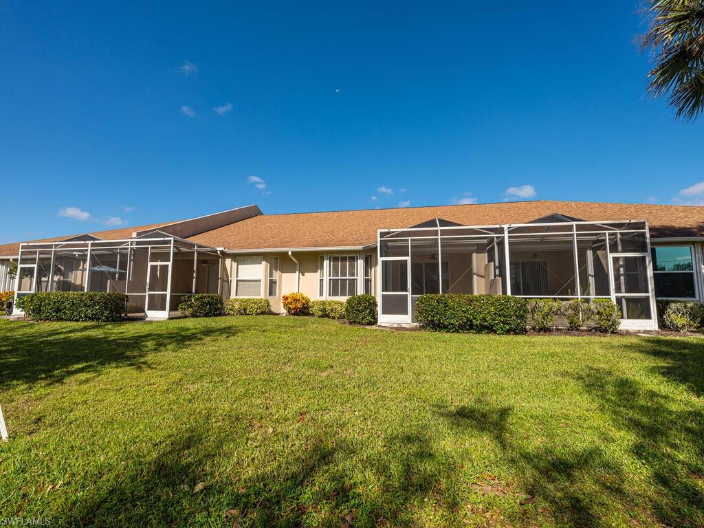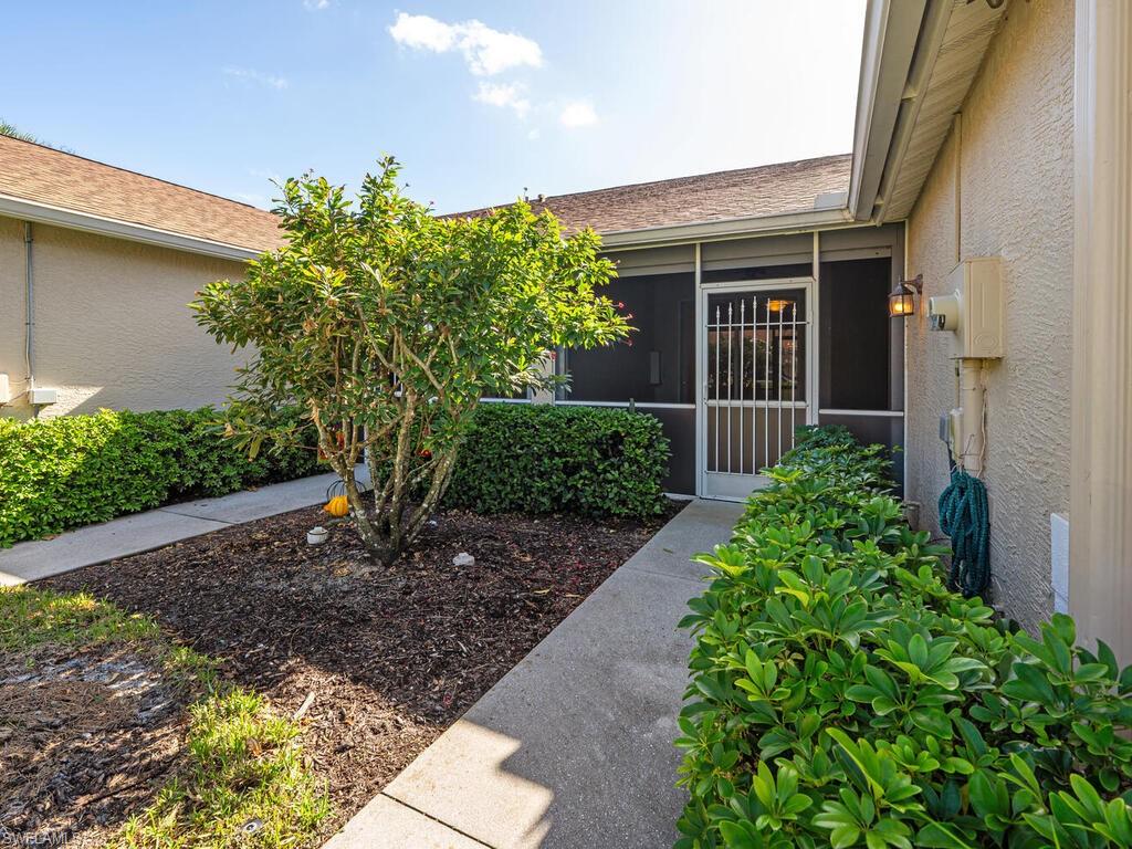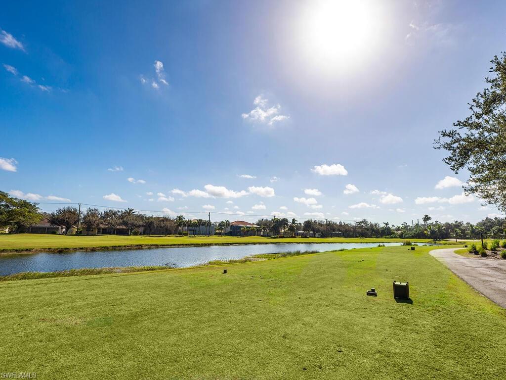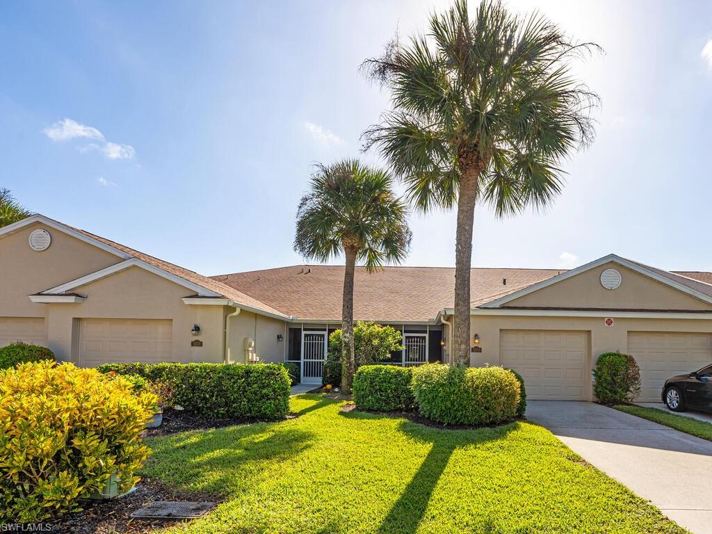 Beautiful Lake and Golf Course views!! This two-bedroom, two-bathroom attached villa with a one car garage offers ample living space. The lush landscaping surrounding the property creates an inviting and serene atmosphere. Upon entering, the spacious layout and abundant natural light create a warm and welcoming ambiance. The interior has just been freshly painted and new flooring has been installed. The open-concept design seamlessly transitions between the living areas, allowing for a comfortable and functional flow. The kitchen boasts abundant countertop space and newer appliances, providing ample room for meal preparation. The bright and airy feel extends throughout the home, tile and vinyl flooring adds a touch of elegance. The primary and secondary bedrooms offer generous square footage, ensuring comfort and privacy. Stepping outside, the property features two spacious outdoor areas with a patio, offering enough space for dining or relaxation. The landscaping includes lush greenery overlooking the 4th tee box of the golf course, creating a pleasant environment for outdoor enjoyment. Residents can also take advantage of the community's amenities, including a public golf course, tennis courts, a community pool, and a fitness room. Additional features include manual and electric/fabric shutters, crown molding, granite counter tops and a large storage closet. The scenic views of the lake and golf course add to the overall appeal of this inviting and well-appointed property. Arrowhead Golf Course is a public course nestled within the Heritage Greens community and offers a variety of optional memberships along with day play options. Enjoy the community amenities and social gatherings or just sit back and enjoy the beautiful Naples sunsets. Close to schools, shopping and dining. You won't be disappointed with all this community has to offer.